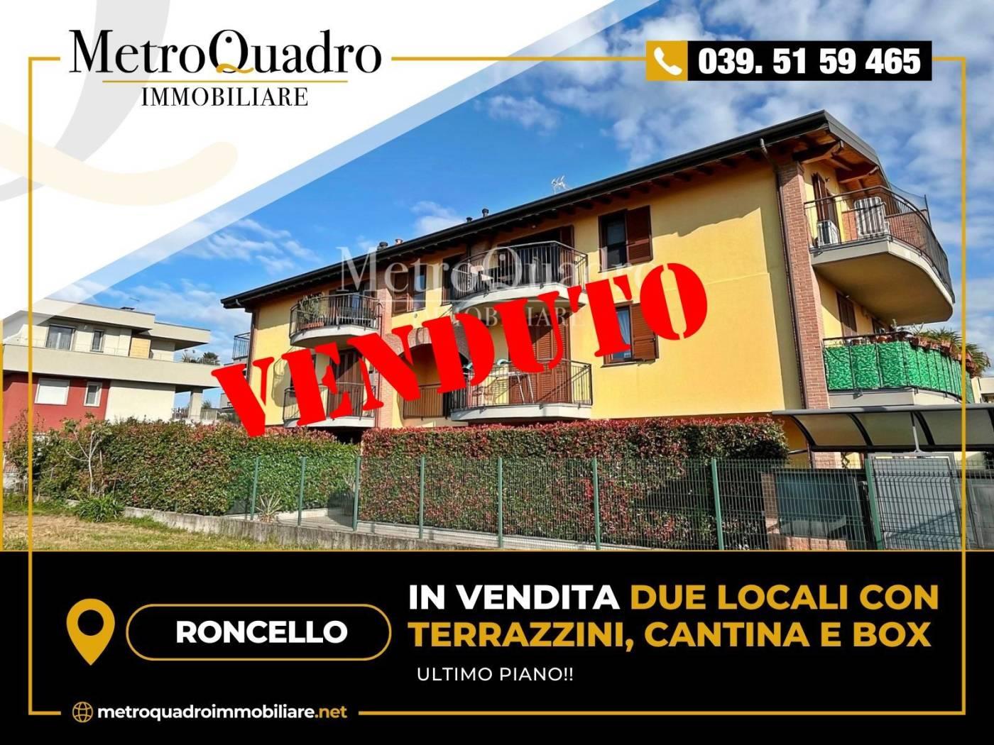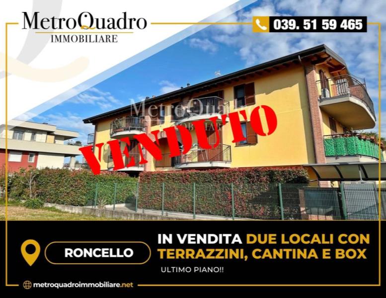 RONCELLO - In tranquilla via a fondo chiuso, all'interno di una piccola e recente palazzina, vendesi DUE LOCALI con terrazzini, cantina e box.
