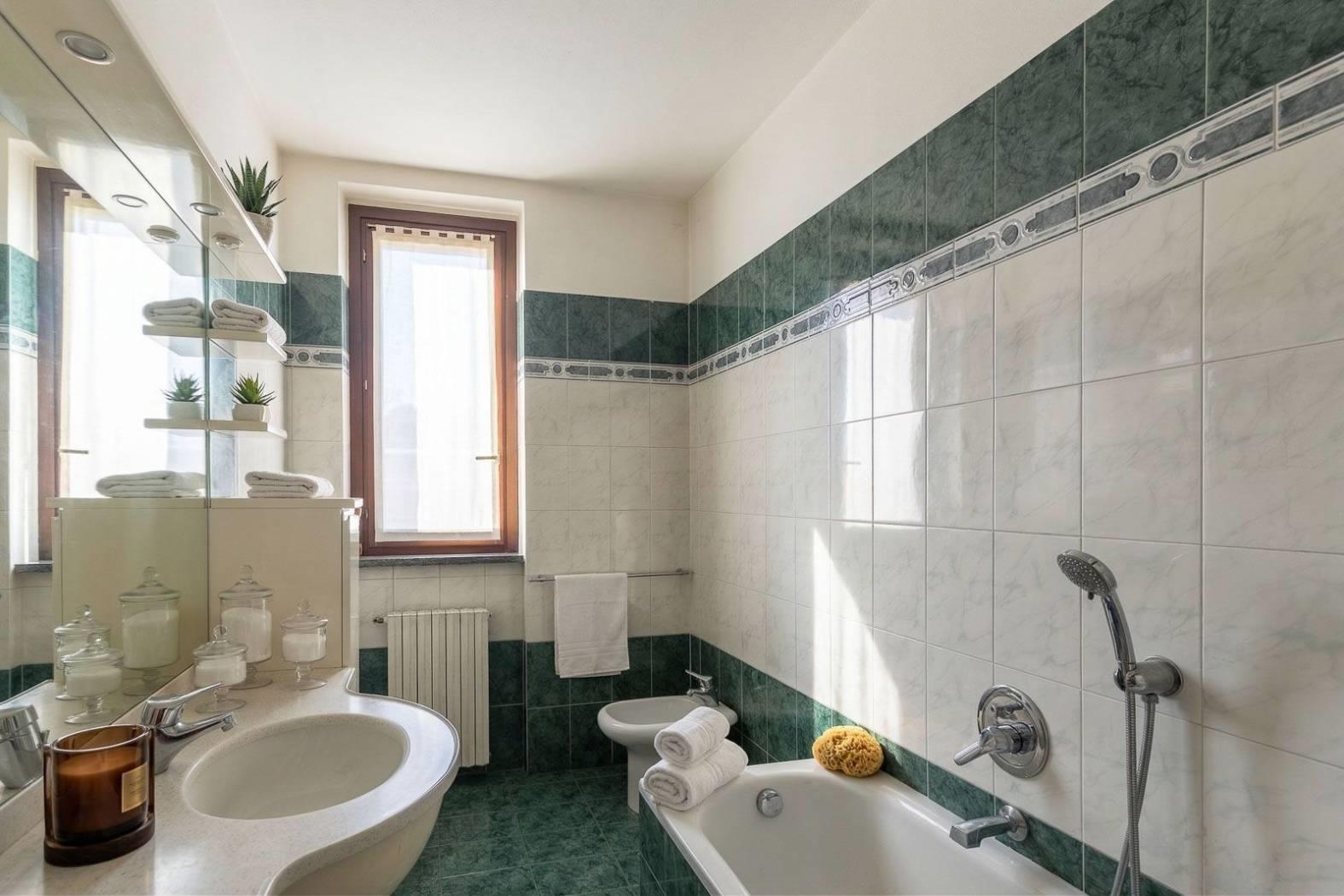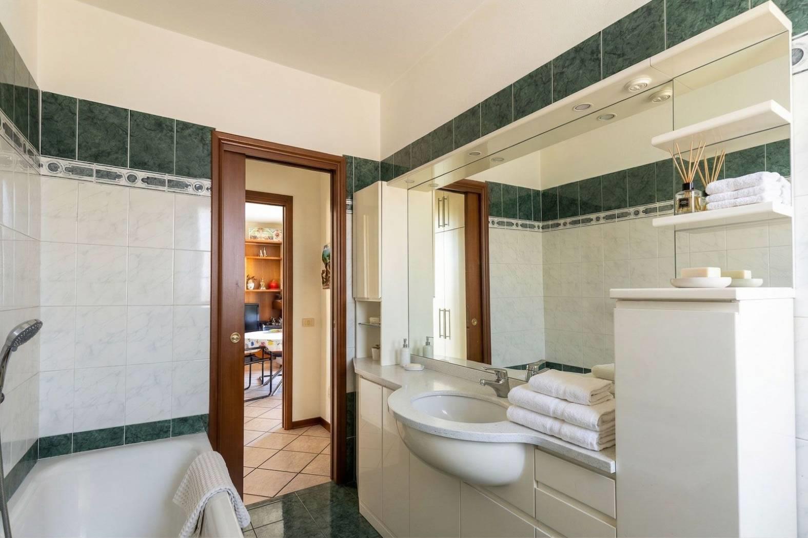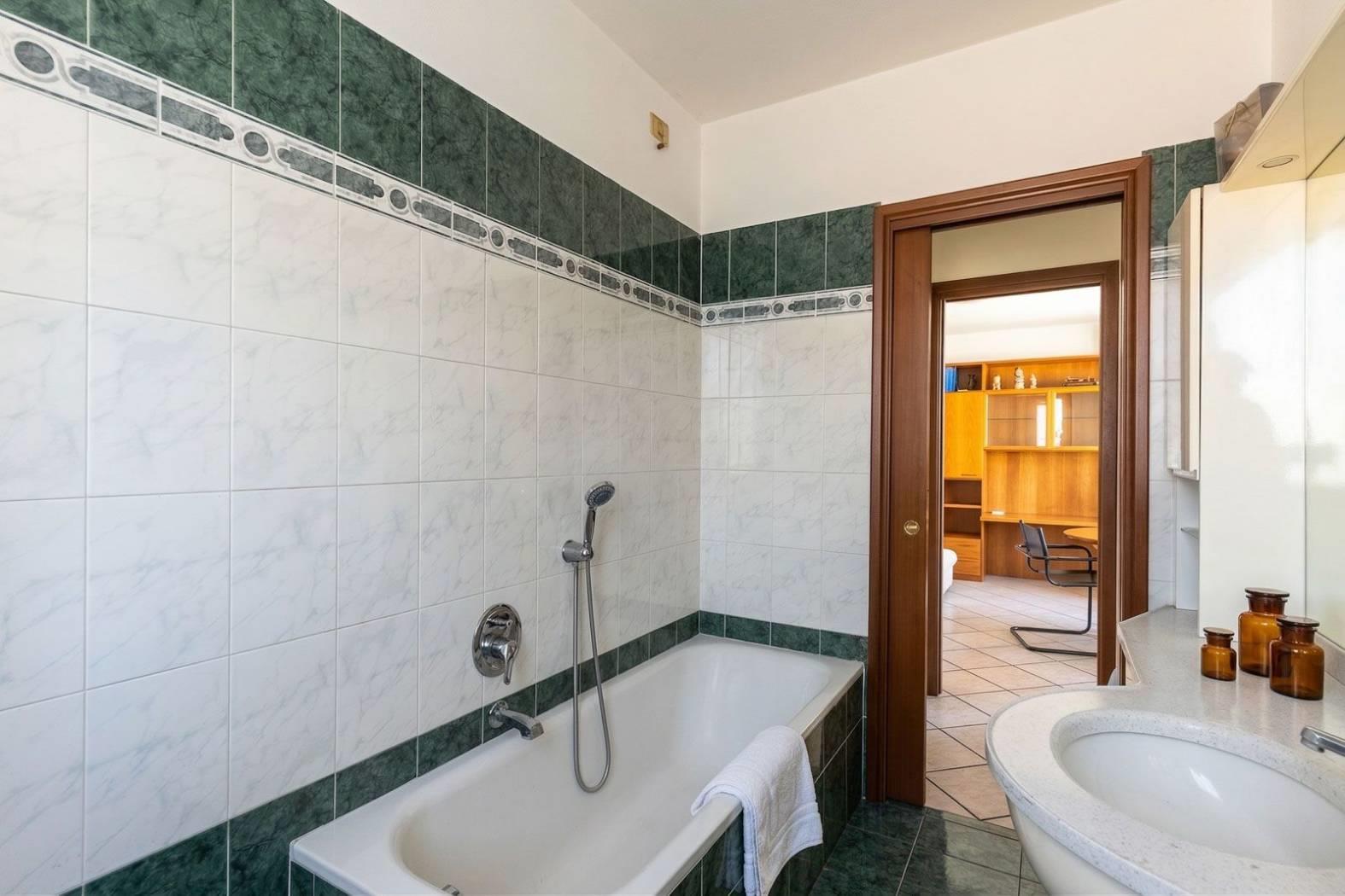 Sempre su questo livello troviamo un antibagno e un bagno finestrato con vasca e due porte scorrevoli.