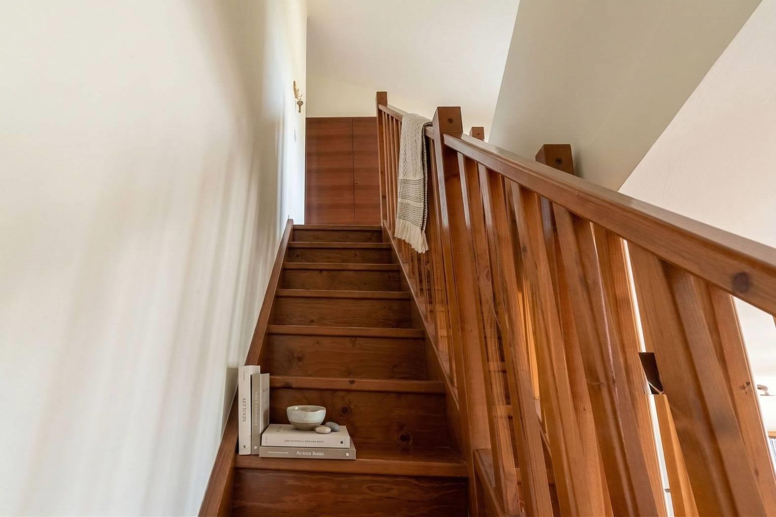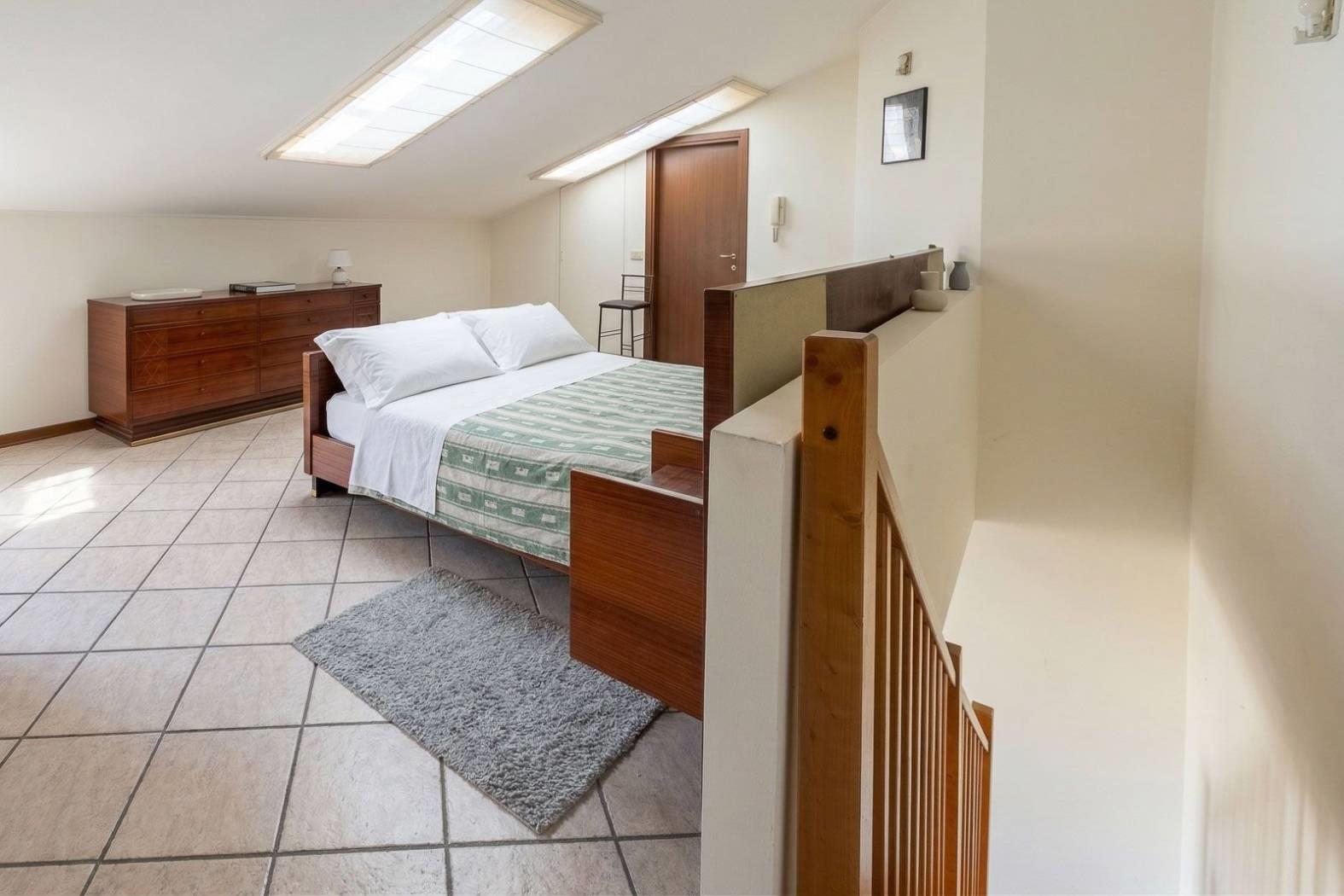 Una scala lineare in legno conduce al piano superiore mansardato, uno spazio di circa 40 mq, perfettamente sfruttabile, dove si sviluppa la zona notte con ulteriore bagno con doccia e accesso ad un secondo terrazzino, ideale per momenti di relax all’aperto.