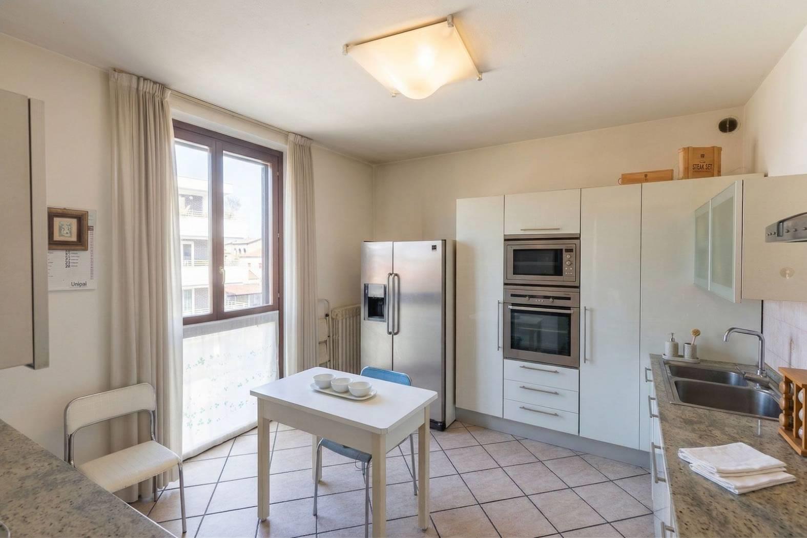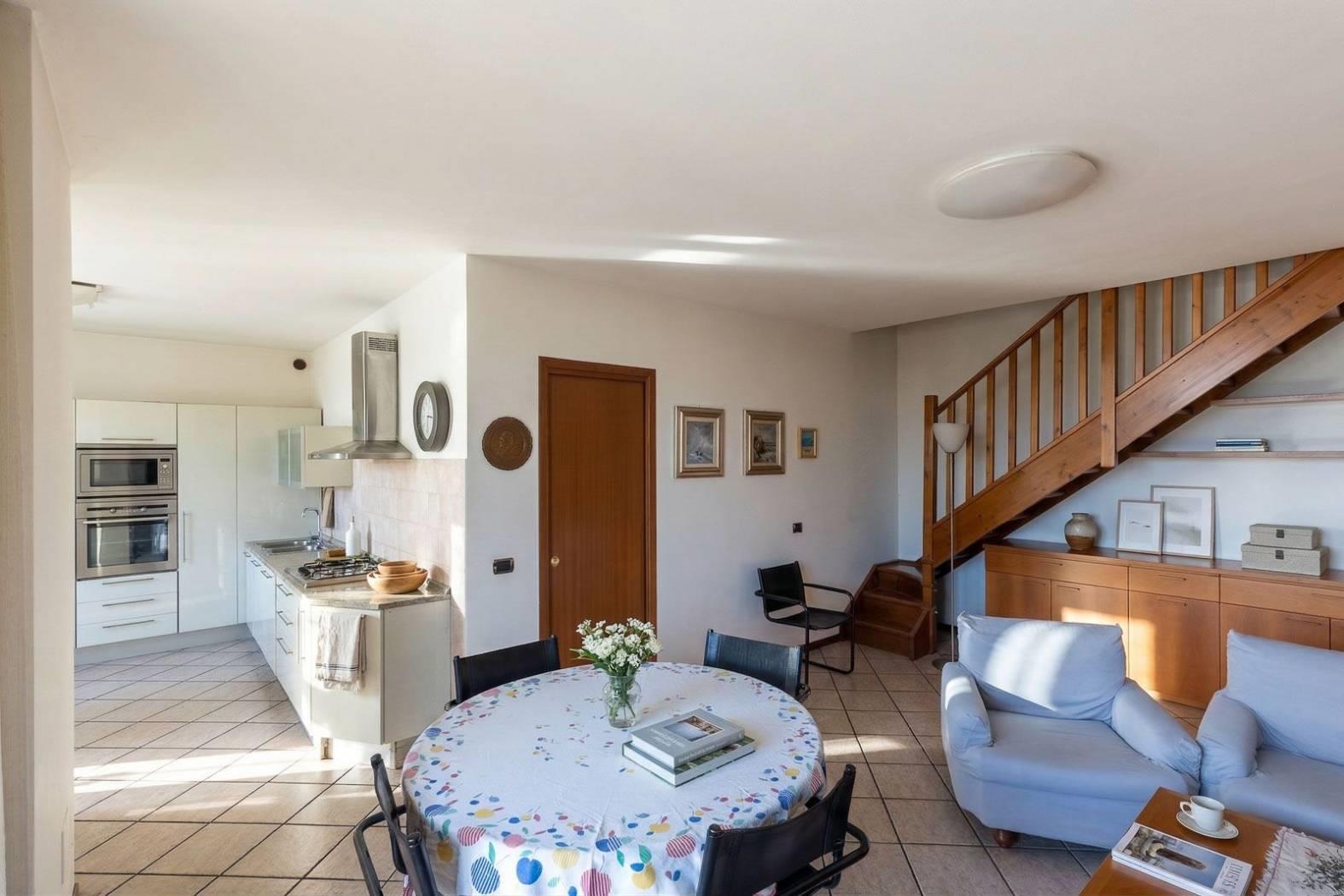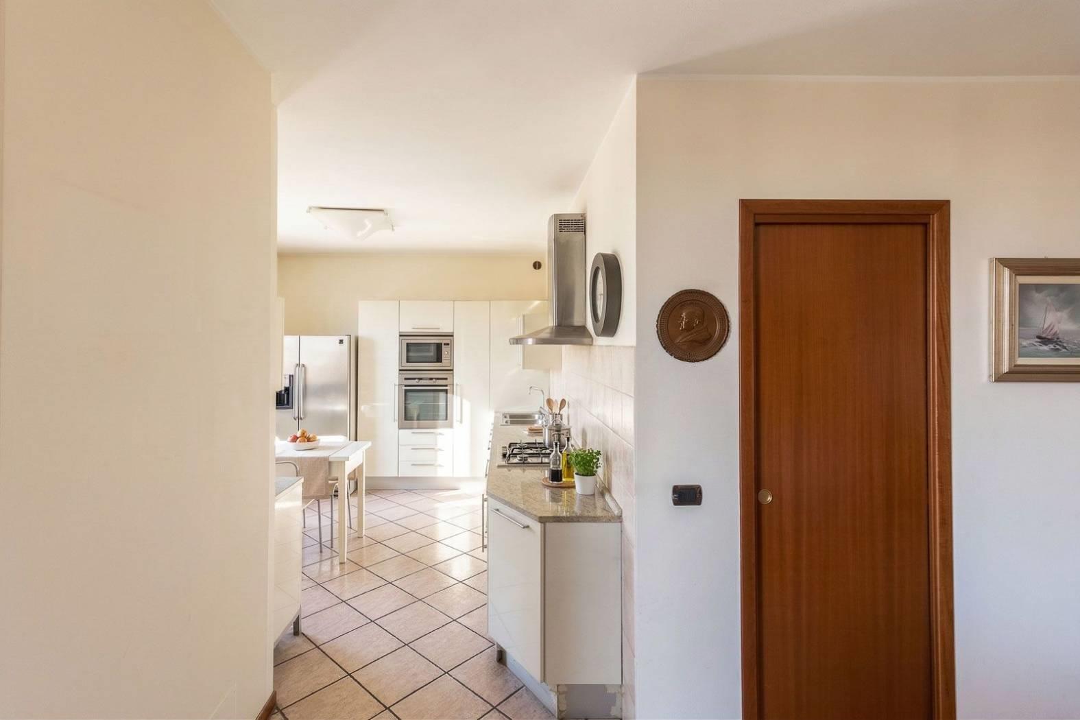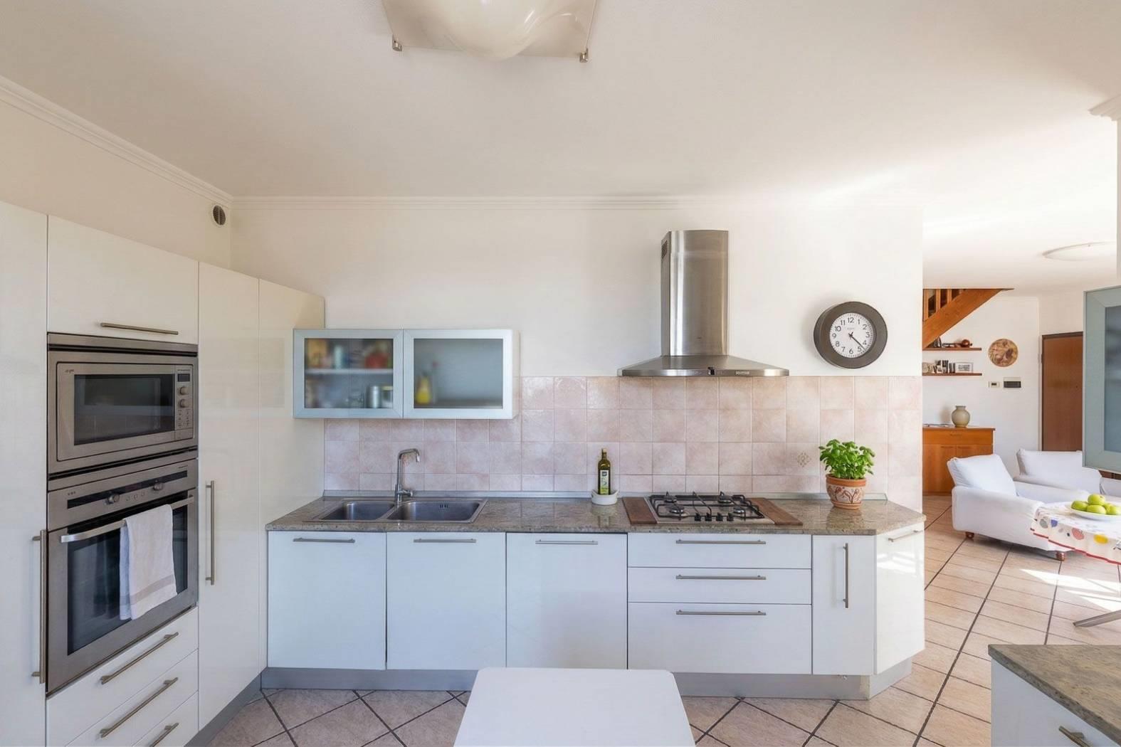 La cucina a vista, ampia e funzionale, è dotata di finestra propria e si integra armoniosamente con la zona living, creando uno spazio conviviale ideale per la vita quotidiana .