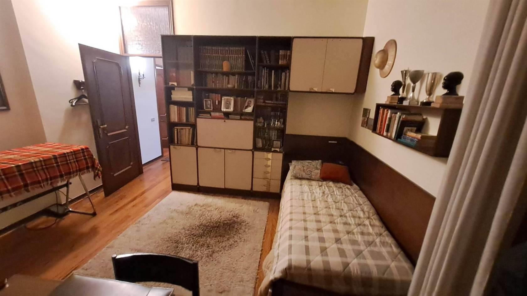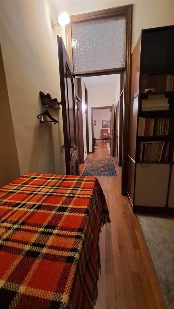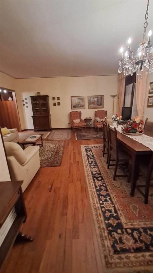 L’ingresso, impreziosito da una raffinata boiserie in legno, conduce al doppio soggiorno, ampio e accogliente, dal quale si accede a un terrazzo vivibile di circa 25 mq. Completano la proprietà una cucina abitabile, tre spaziose camere da letto, tutte dotate di balcone, e due bagni finestrati, che necessitano di un ammodernamento.