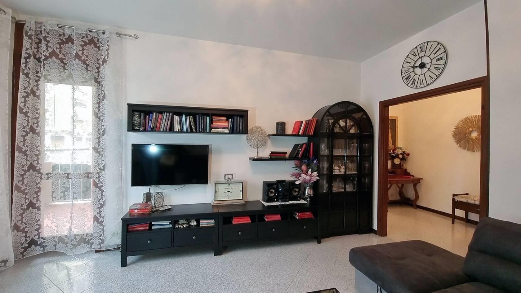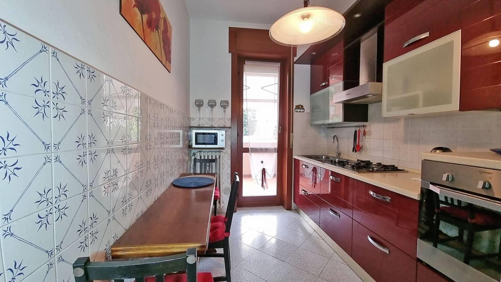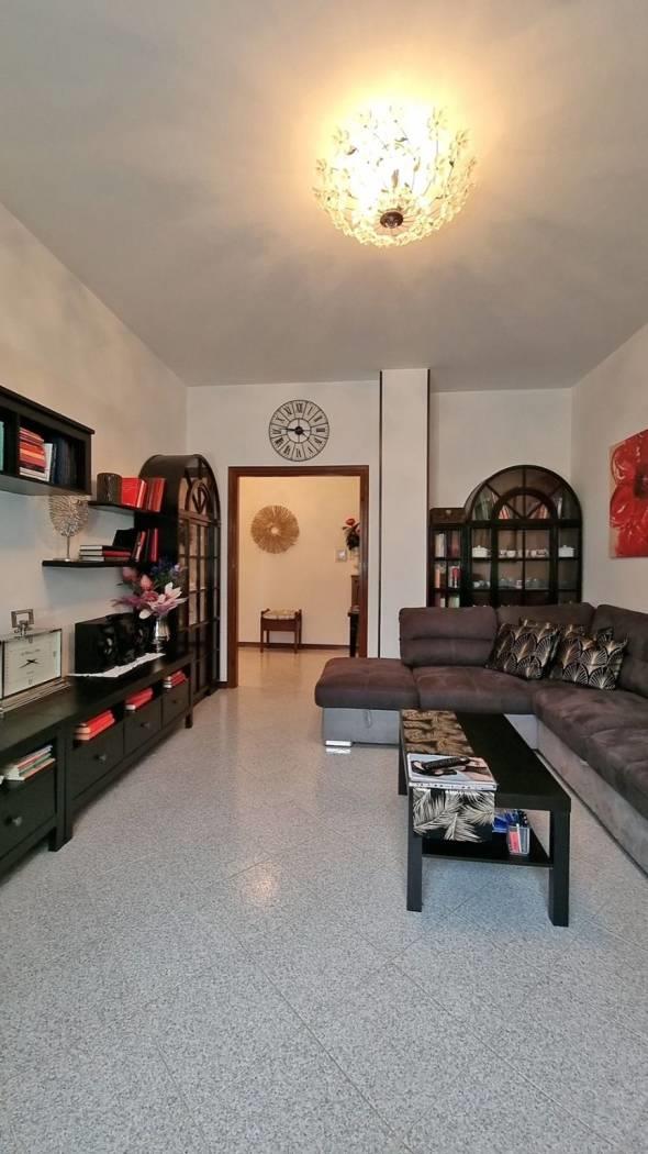 RIF. 2972DZ - All’interno di un elegante complesso residenziale, circondato da un curato giardino condominiale, che si presenta in ottime condizioni generali, grazie anche al rifacimento completo della facciata eseguito nel 2018, Appartamento di QUATTRO LOCALI di generosa metratura, situato al primo piano valorizzato da una tripla esposizione, che conferisce ariosità e luce. L’ingresso si apre su un ampio e comodo Disimpegno che conduce alla zona giorno, composta da un accogliente Soggiorno con doppia esposizione e da una Cucina Abitabile di generose dimensioni; entrambi gli ambienti affacciano su un Balcone quadrato di circa 6,6 mq, servito da tenda da sole, perfetto per godere di momenti di relax all’aperto. La zona notte è ben separata e organizzata, con un comodo disimpegno, con Tre Camere da Letto spaziose e un Bagno finestrato completo di vasca. È presente inoltre un pratico ripostiglio, ideale per le esigenze di contenimento quotidiane. A completamento della proprietà, una Cantina al piano interrato di 3,8 mq. Box auto singolo ampio, sempre al piano interrato, della superficie di circa 14 mq, dotato di contatore elettrico autonomo, ad € 25.000. Finiture: L’Appartamento si presenta in buono stato di manutenzione; porta d’ingresso blindata, infissi esterni realizzati in legno con vetrocamera e avvolgibili in PVC, porte interne in legno, pavimentazione realizzata in ceramica 30x30 posata in diagonale nella zona giorno e nei servizi, in parquet di rovere nelle camere da letto, riscaldamento è centralizzato, con radiatori in ghisa con installazione di termovalvole per la regolazione e la contabilizzazione del consumo.