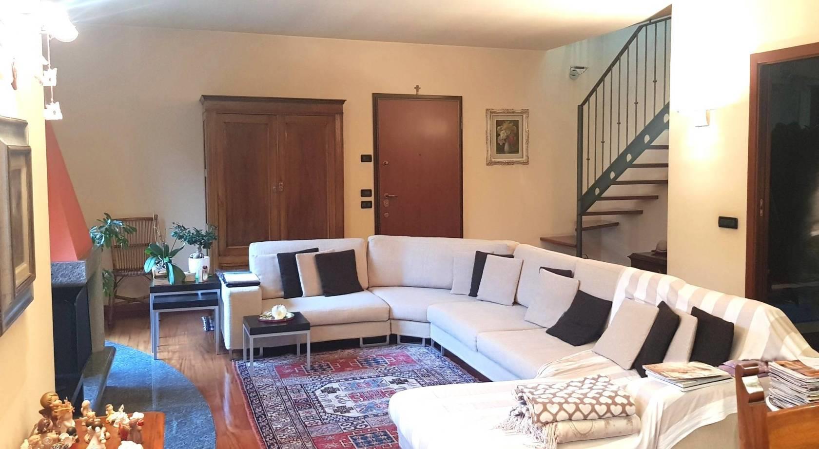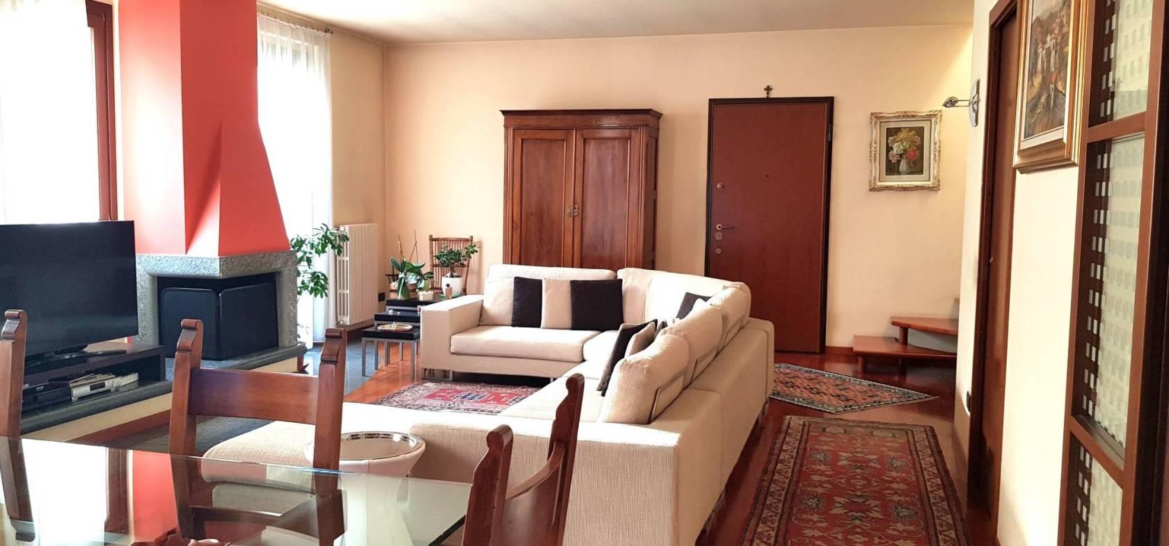 Mariano Comense in zona centrale, comodo con i principali servizi quali stazione ferroviaria, scuole, supermercati e le principali vie di collegamento , inserito in un contesto signorile , proponiamo in vendita un ampio appartamento termo autonomo, di circa 175 mq. , disposto su due livelli abitativi e così suddiviso : al piano primo troviamo un ampio soggiorno con camino e balcone , una comoda cucina abitabile anch’essa con balcone , un disimpegno zona notte con armadiatura su misura , un bagno con doccia e un ulteriore locale attualmente utilizzato come lavanderia /guardaroba , ma all’occorrenza può prestarsi anche ad altri utilizzi. Al piano secondo , al quale si accede da una elegante scala a vista in legno , troviamo, un disimpegno , due ampie camere matrimoniali , di cui una con annessa cabina armadio , un bagno con vasca idromassaggio , un’ulteriore locale multiuso e un ampio terrazzo al quale si accede direttamente, salita la scala interna ,senza dover passare dalla zona notte. L’appartamento è tenuto come nuovo , con serramenti in legno vetrocamera taglio termico ed acustico , parquet in essenza Doussié , anch'esso come nuovo . La proprietà è disponibile a lasciare parte degli arredi su misura. Classe energetica C . Prezzo euro 350.000,00 con obbligo di acquisto box doppio in larghezza e ampia cantina per complessivi 35.000,00