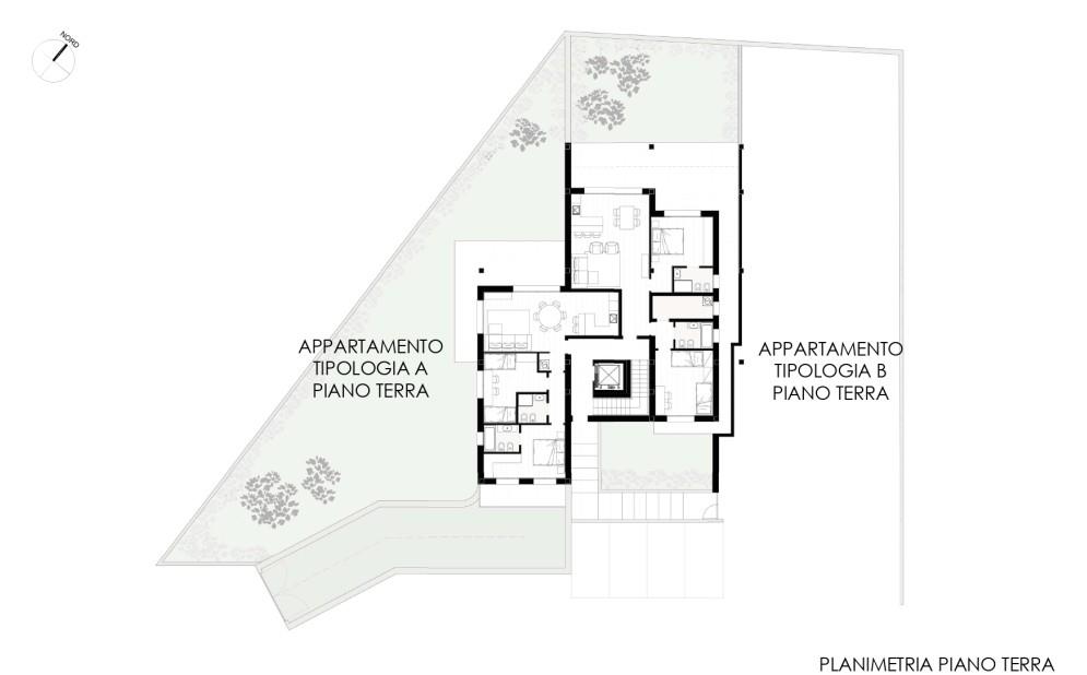 Il progetto dal design moderno contemporaneo ad alta efficienza energetica, al piano terra liberi sui tre lati due appartamenti trilocali con giardino con doppi servizi, grandi loggiati coperti di mq. 60, completa la proprietà un giardino di 300 mq. interamente godibile adiacente l'abitazione facilmente raggiungibile grazie alle luminosissime grandi porte finestre scorrevoli in alluminio di cui è dotata l'abitazione, un box doppio e una cantina nel piano seminterrato dotato di ascensore sino ai piani.