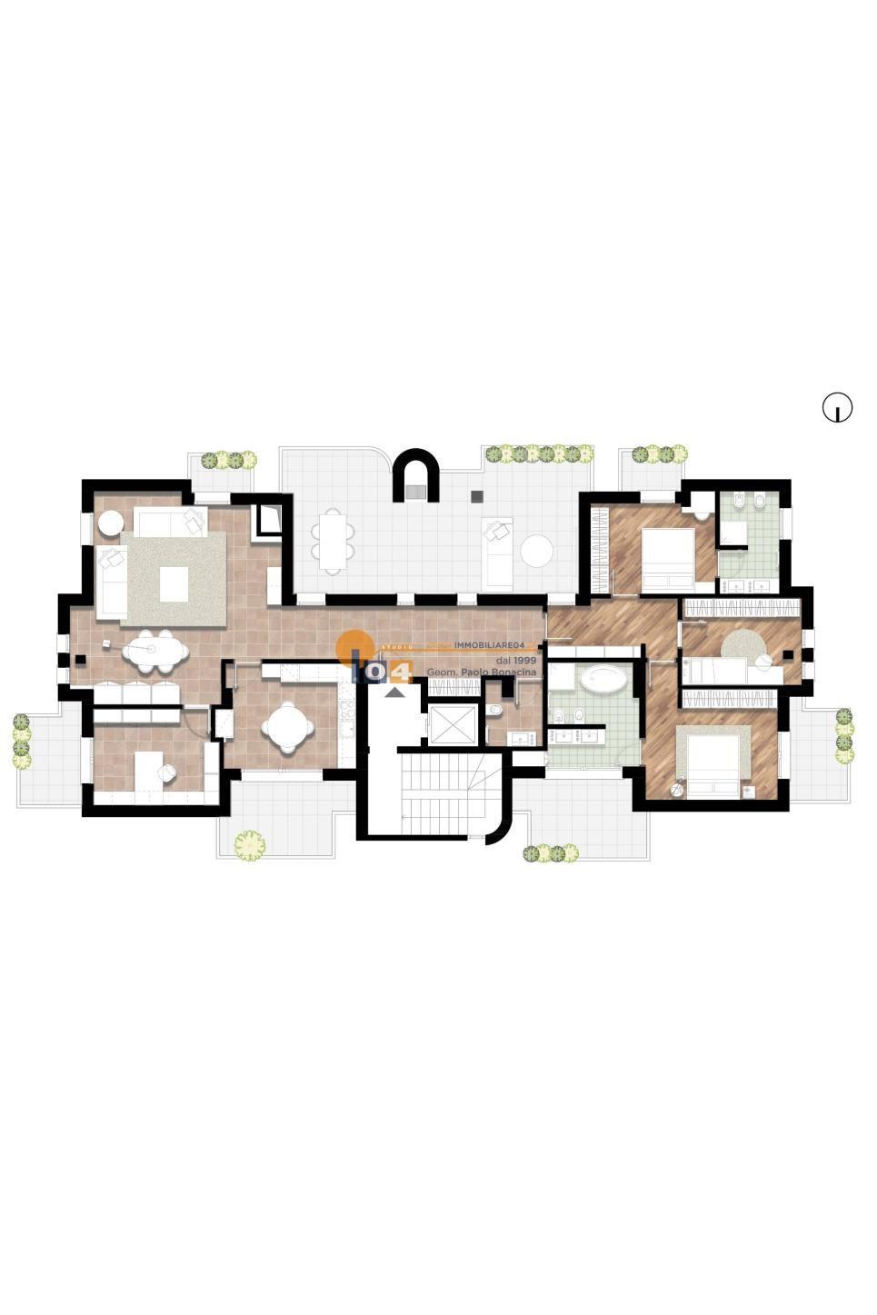 Con diversa disposizione degli spazi interni è possibile di ricavare un quadrilocale.
