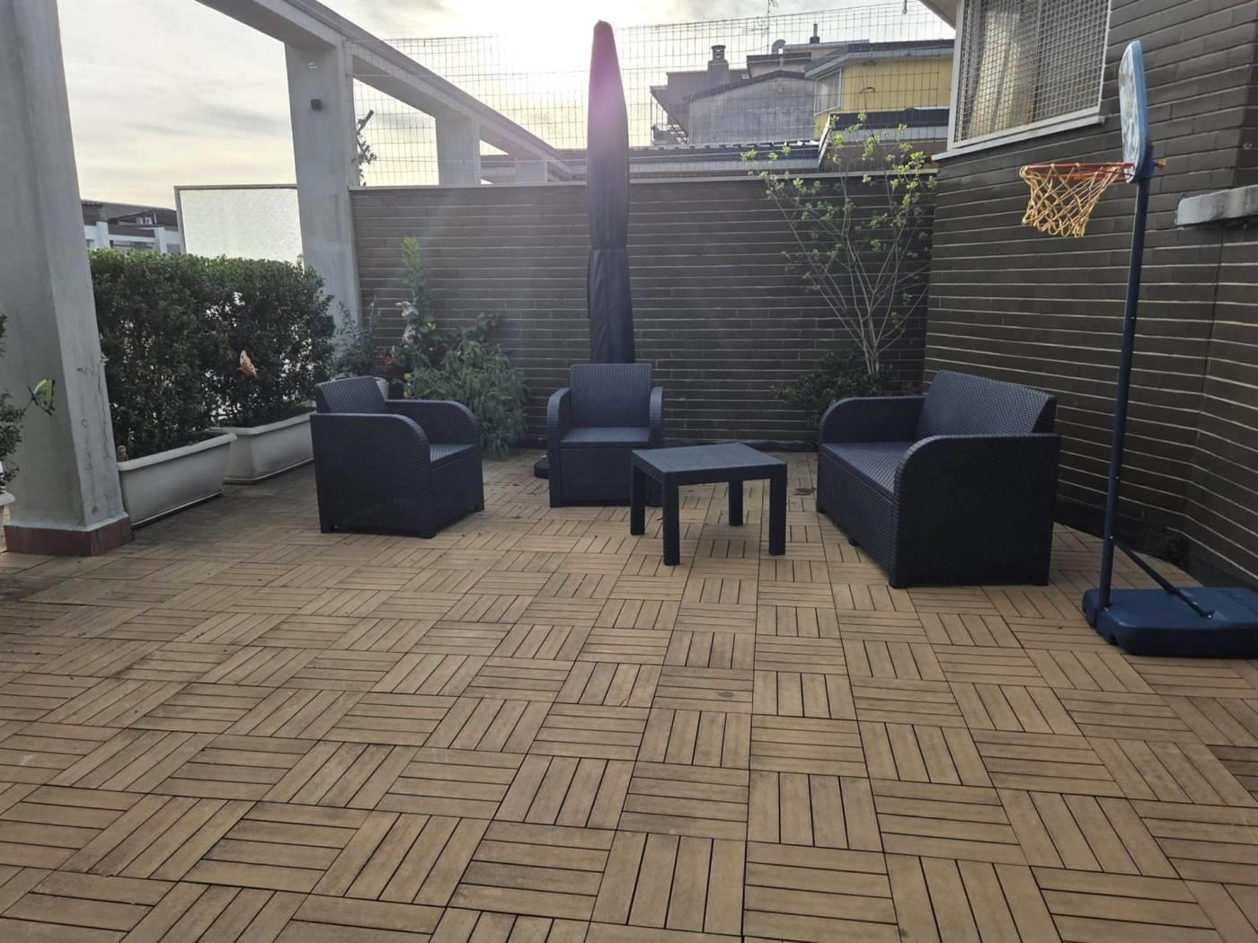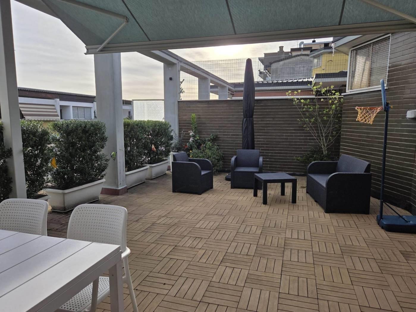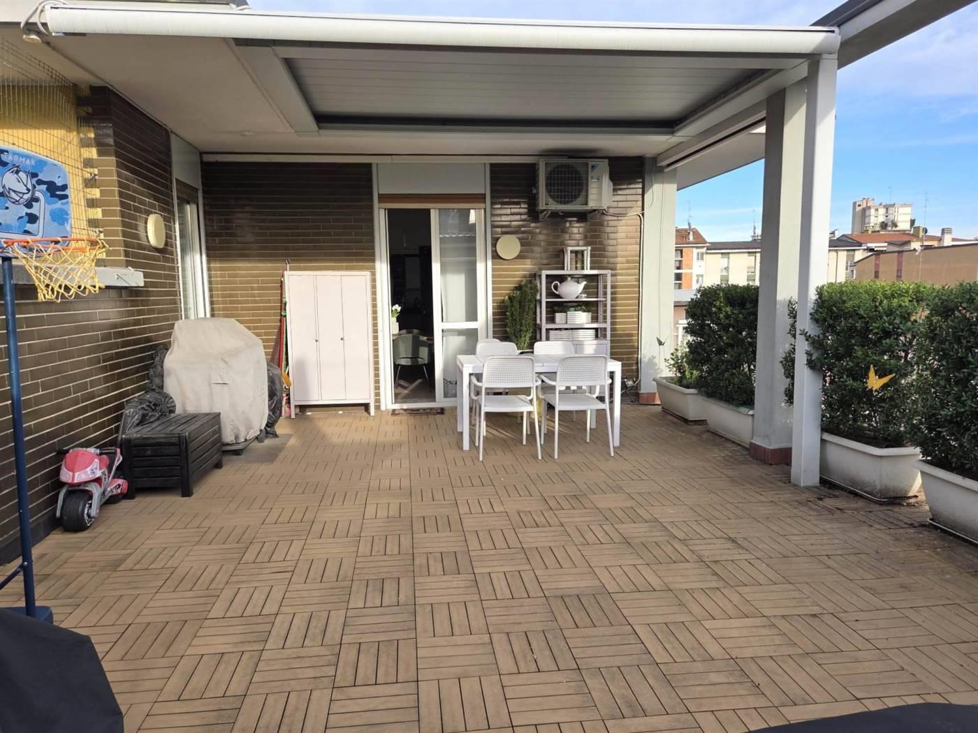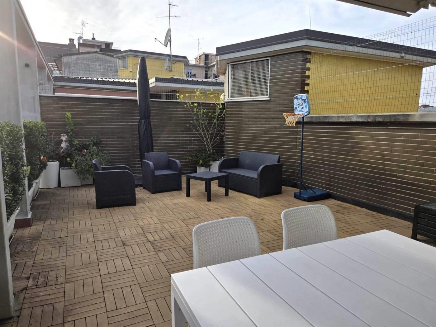 L'appartamento, recentemente ristrutturato con finiture di pregio, vanta una tripla esposizione che garantisce luminosità in ogni momento della giornata. Il vero punto di forza della proprietà è l'ampio terrazzo, un'oasi di relax ideale per cene all'aperto e momenti conviviali, che rappresenta un'estensione naturale della zona giorno.