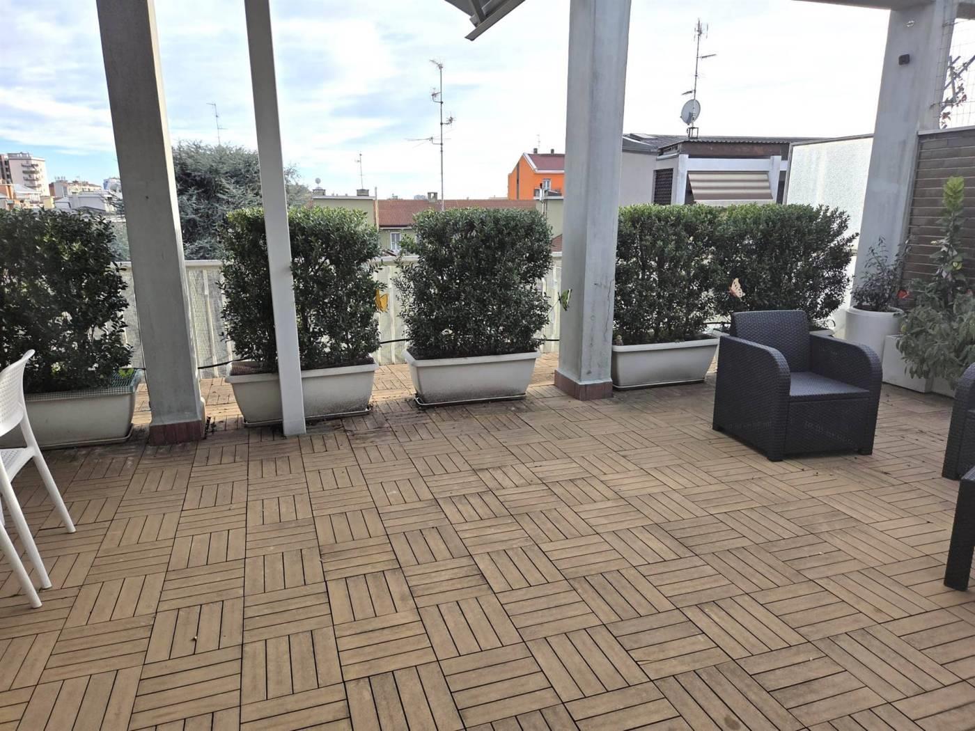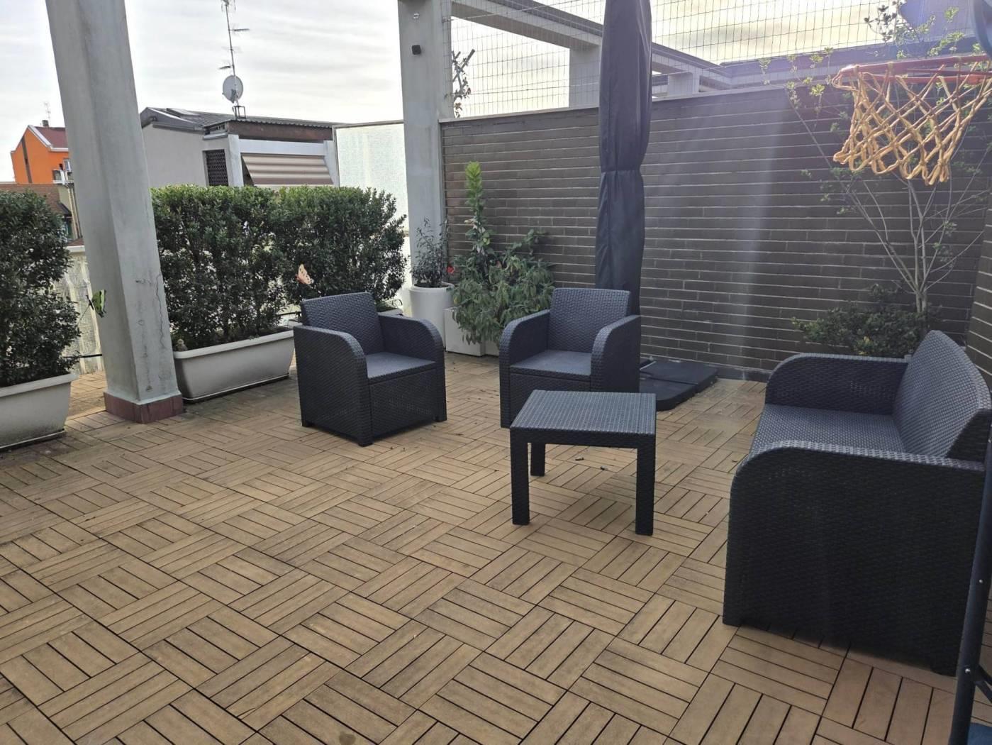 Questo splendido attico si trova in un elegante stabile medio-signorile, a pochissimi passi dalla fermata della metropolitana M1 Rondò, in una zona servitissima da negozi, scuole e mezzi pubblici.