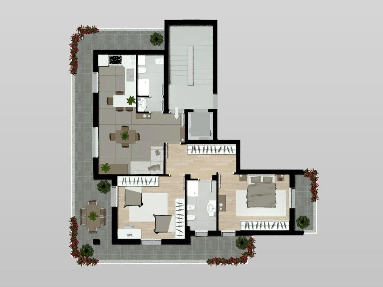 - Soluzione ideale per chi desidera un’abitazione moderna e funzionale, senza rinunciare a eleganza, comfort e a un prezioso spazio verde nel cuore della città.