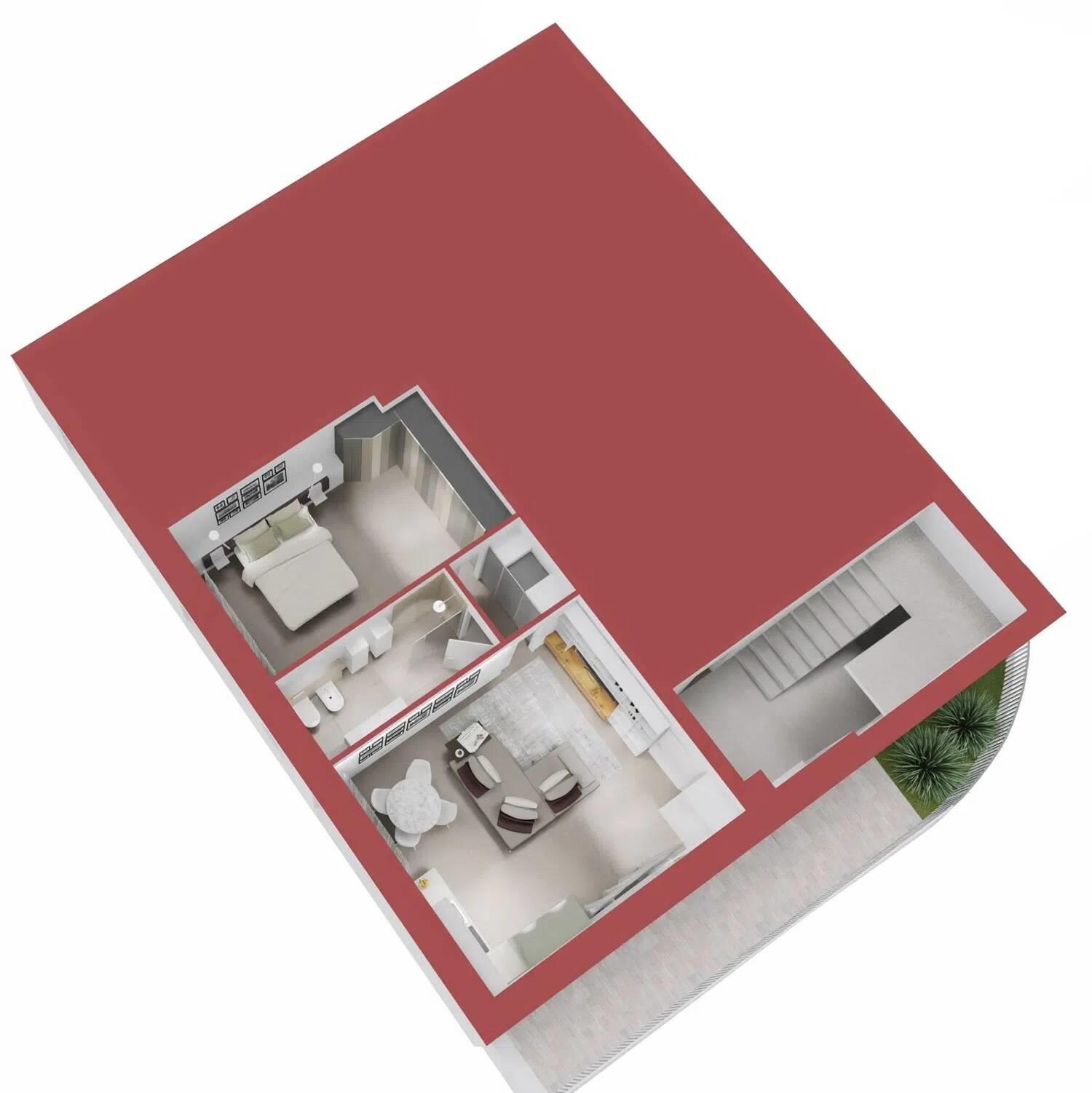 La camera da letto molto capiente, ben 18 mq, offre lo spazio per una zona smart working oltre ai classici spazi per guardaroba ed arredi.