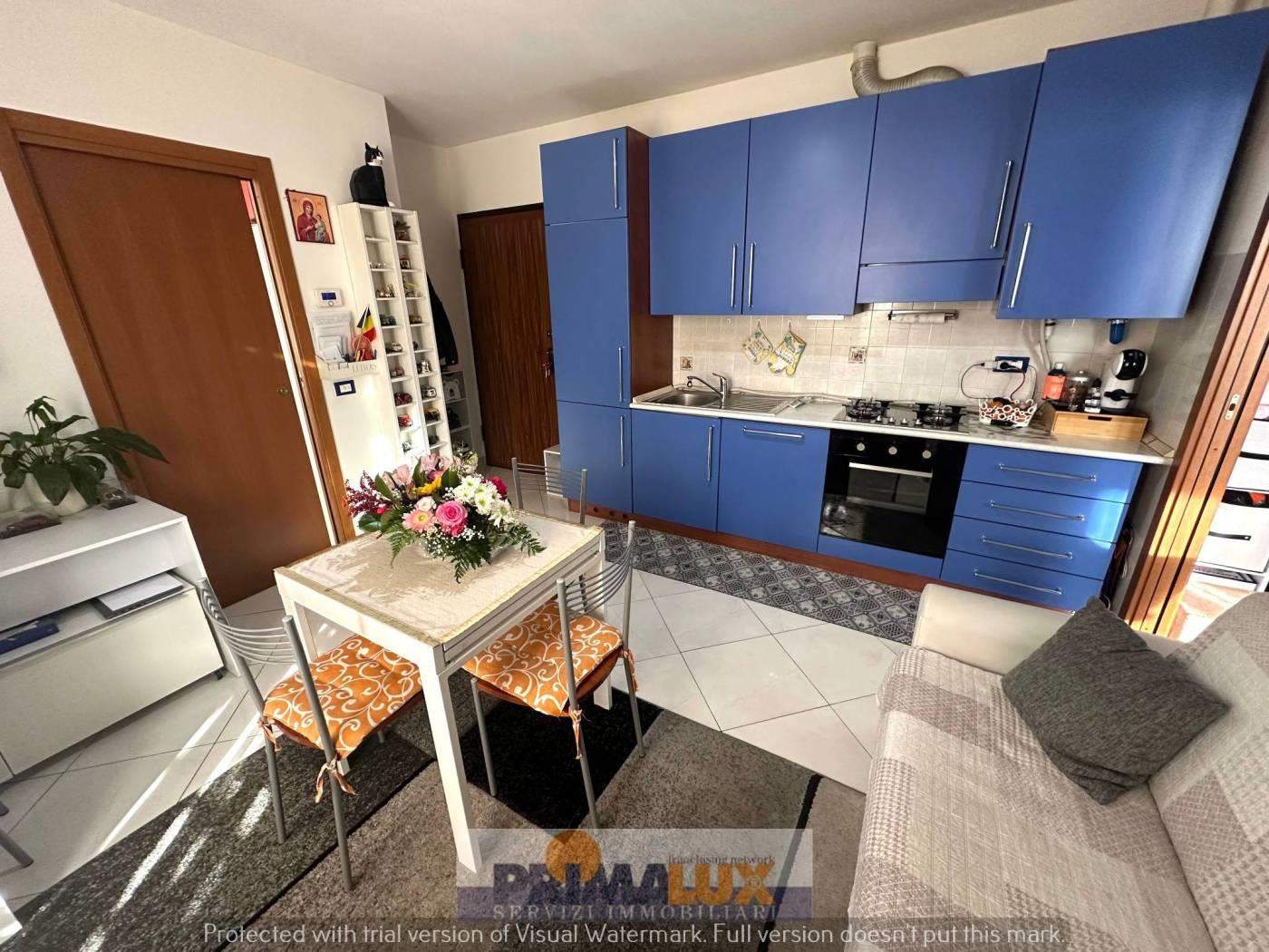 L' immobile è composto da soggiorno con cucina a vista, camera matrimoniale e bagno con doccia.