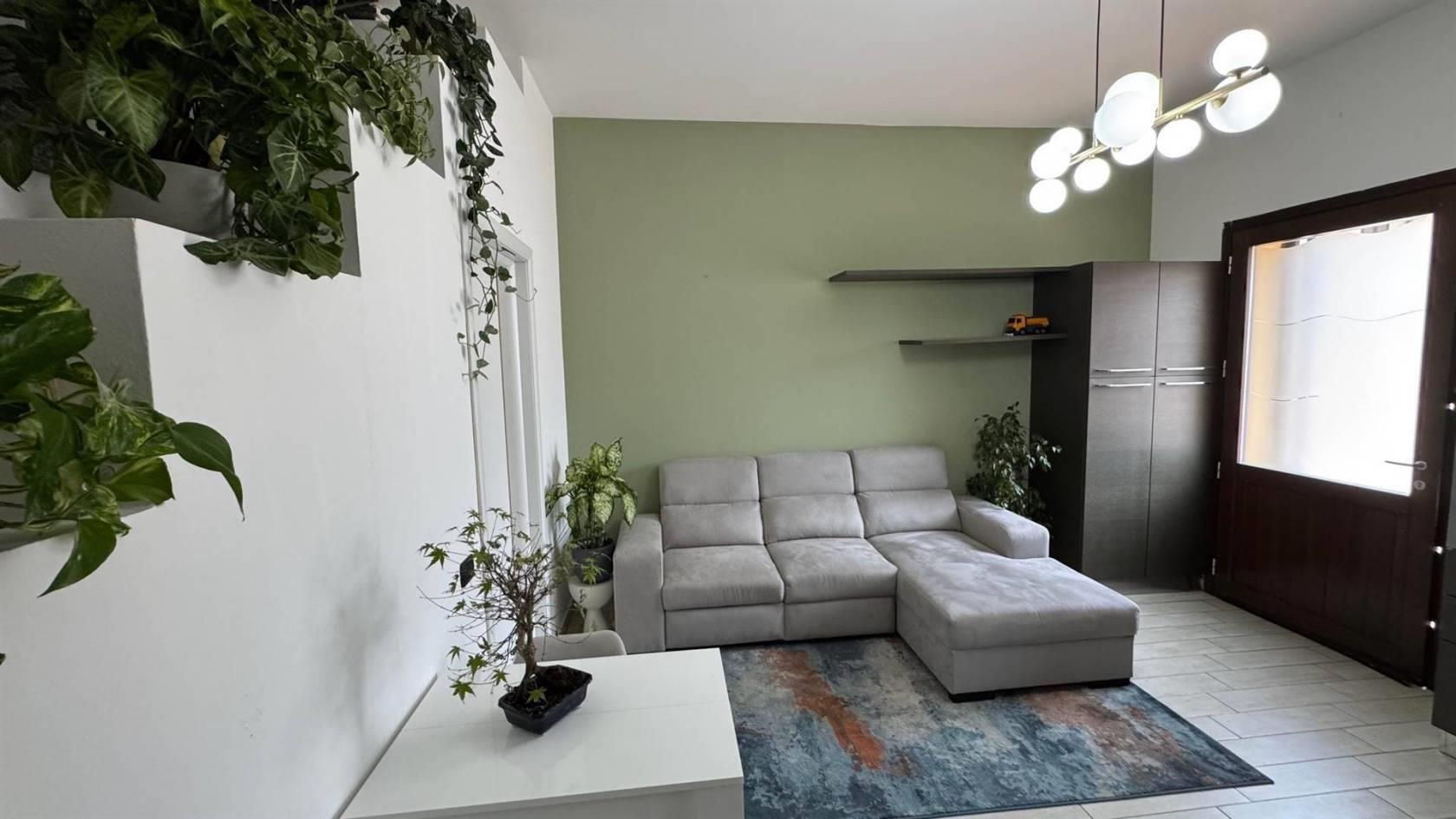 Piano terra con soggiorno, cucina a vista e bagno di servizio;