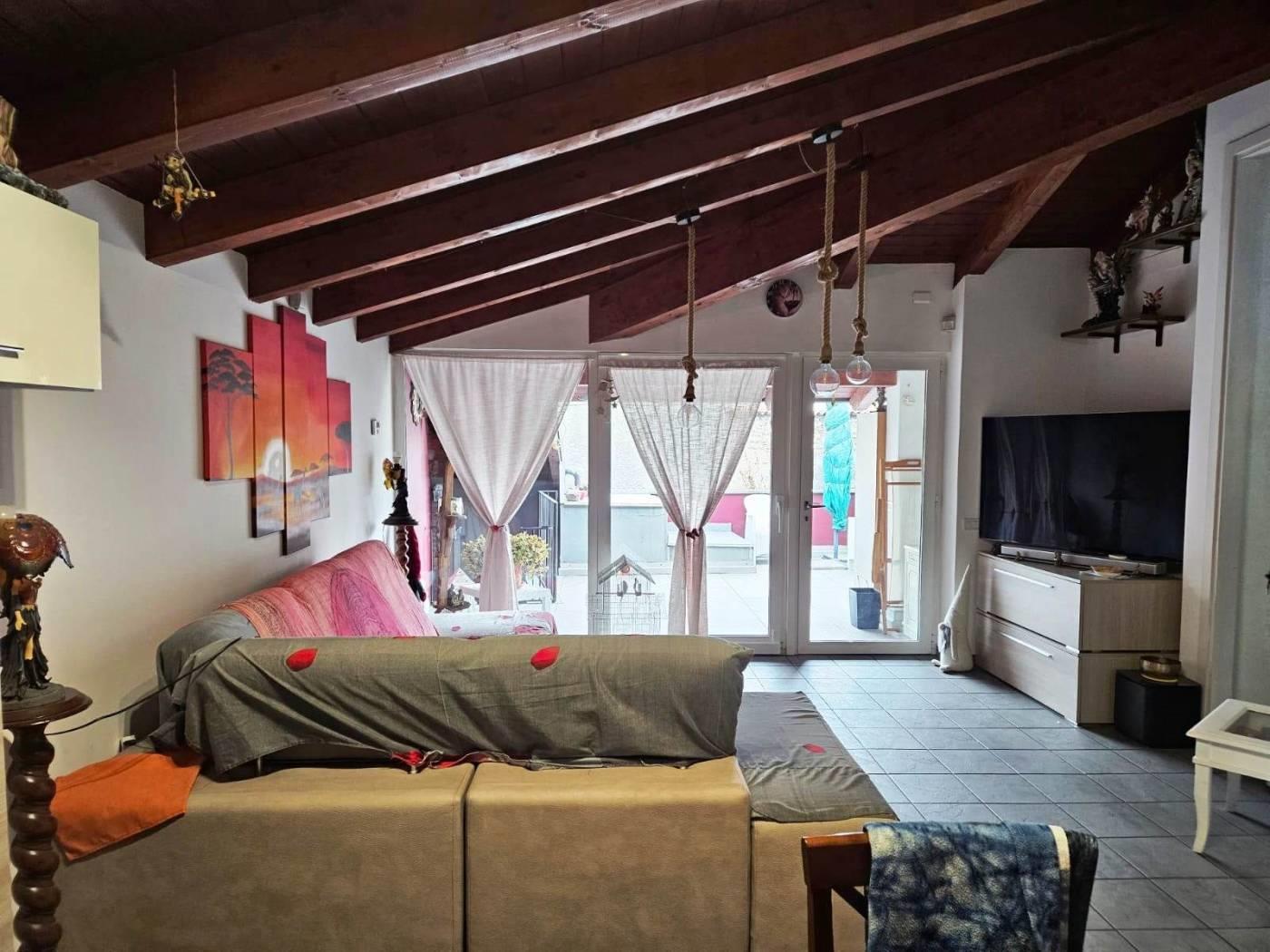 Carate Brianza, in zona centrale e all’interno di piccolo e riservato contesto cortilizio di poche unità, proponiamo in vendita appartamento con travi a vista di tre locali e servizio, posto al piano primo ed ultimo, con ingresso indipendente, composto da: soggiorno con angolo cottura che affaccia su grazioso e riservato terrazzo, due camere da letto e bagno. A completare ampio box riscaldato con basculante elettrica al piano terra. I serramenti sono in alluminio con vetro doppio e tapparelle; la pavimentazione è in monocottura in tutta la casa. Il riscaldamento è autonomo a pavimento, sono presenti antifurto, videocitofono e predisposizione dell’aria condizionata.