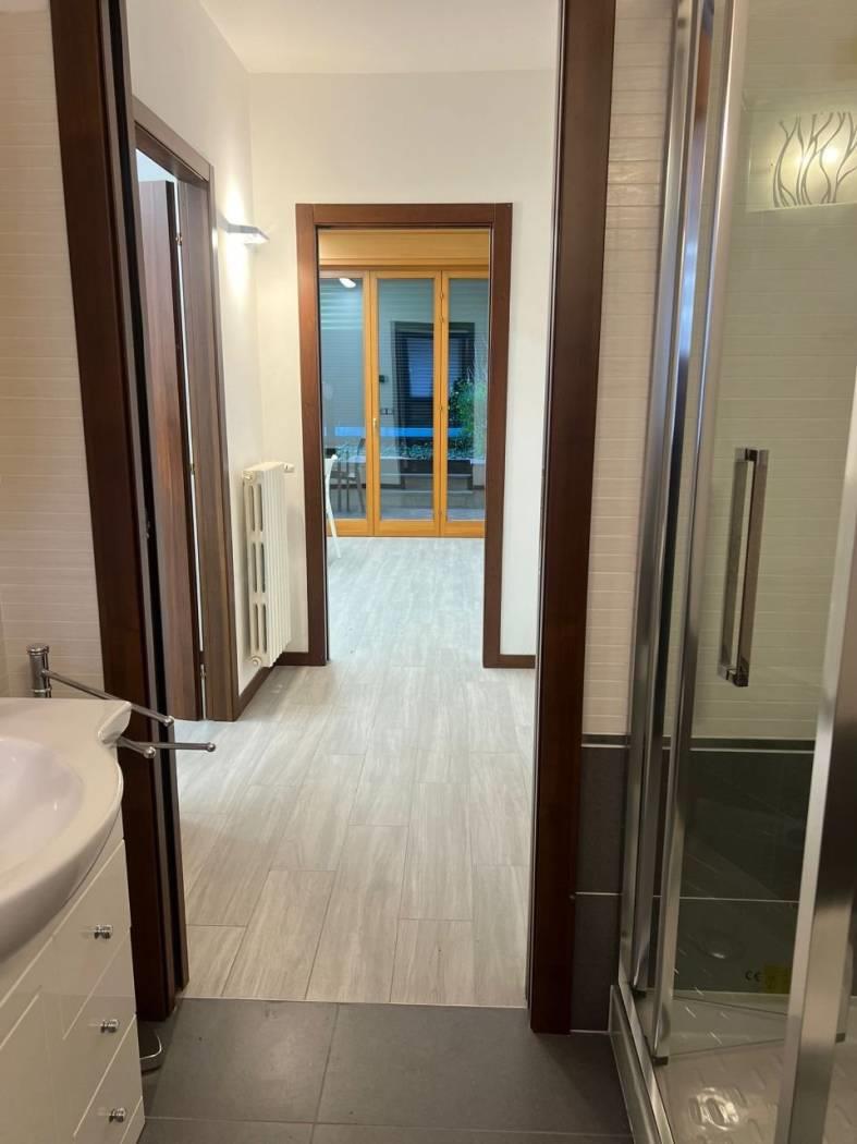 Monza Via Ferrari comodo per il centro città e le stazioni, proponiamo in stabile anni '90, grazioso appartamento posto al piano terra, composto da: ingresso, soggiorno con cucina a vista arredata con mobili ed elettrodomestici nuovi, camera da letto, bagno finestrato, terrazzino loggiato con piccolo giardinetto adiacente, cantina e posto auto all'interno del giardino condominiale. Riscaldamento e raffrescamento centralizzato. Subito disponibile.
