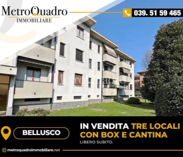 BELLUSCO - In posizione comoda con il centro paese proponiamo appartamento in stabile signorile anni '60 posto al secondo piano servito da ascensore composto da 3 locali di 86 mq. Internamente abbiamo un pratico ingresso, il luminoso soggiorno che affaccia sul balcone esposto ad ovest comunicante anche con la cucina abitabile; il disimpegno della zona notte conduce alle due camere da letto, il bagno finestrato con vasca e un comodo ripostiglio guardaroba. Completa la proprietà la cantina al piano seminterrato. Palazzina in ottime condizioni con copertura del tetto appena rifatta.