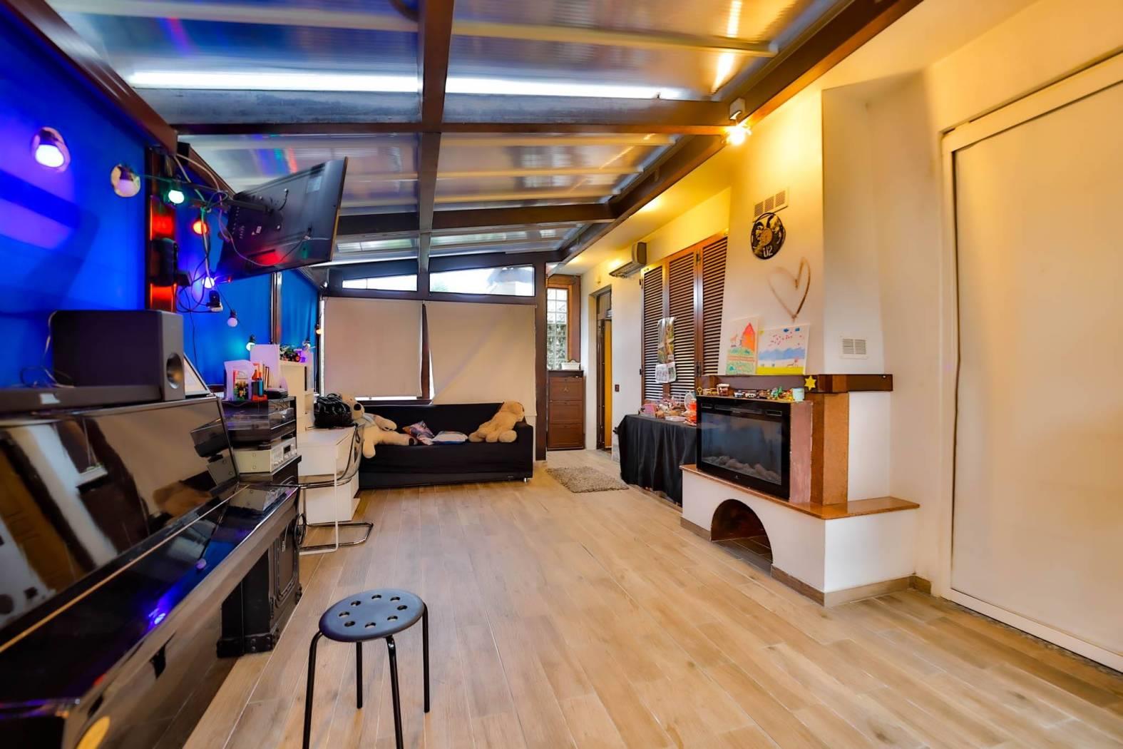 Adiacente alla zona giorno si sviluppa l’ampio portico coperto di 56 mq, completamente chiuso a veranda: uno spazio straordinariamente versatile, ideale come living aggiuntivo, zona relax o ambiente conviviale da vivere in ogni stagione. Completa il piano una porzione di giardino privato di 40 mq, perfetto per godere di momenti all’aperto in totale riservatezza.