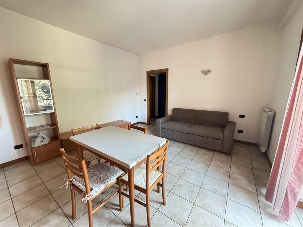 L'appartamento è completamente arredato, molto luminoso ed è composto da ingresso con porta blindata, un locale unico openspace con cucina a vista e balconata e servizio finestrato con doccia. Completano la proprietà una cantina 704 e un posto auto coperto.