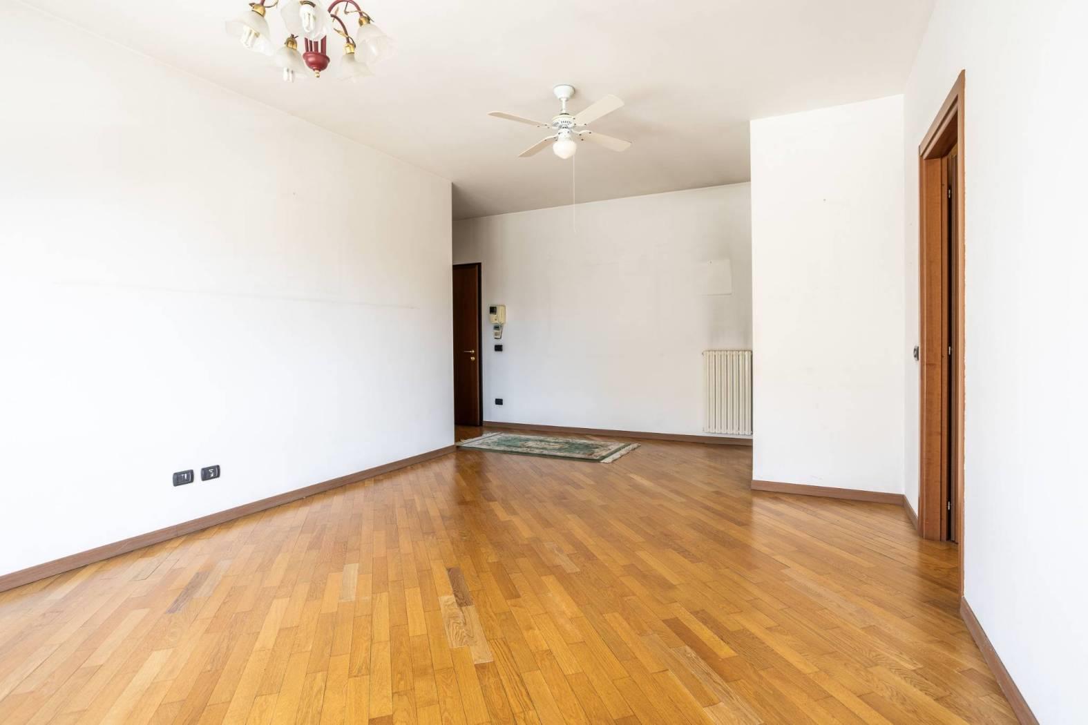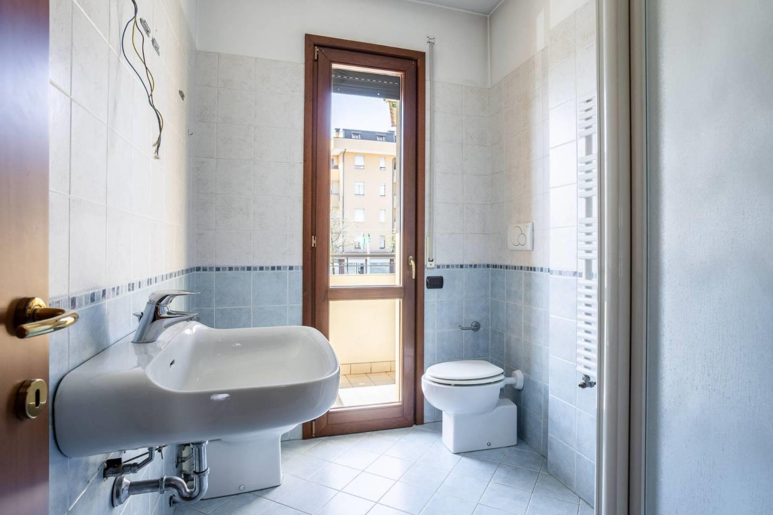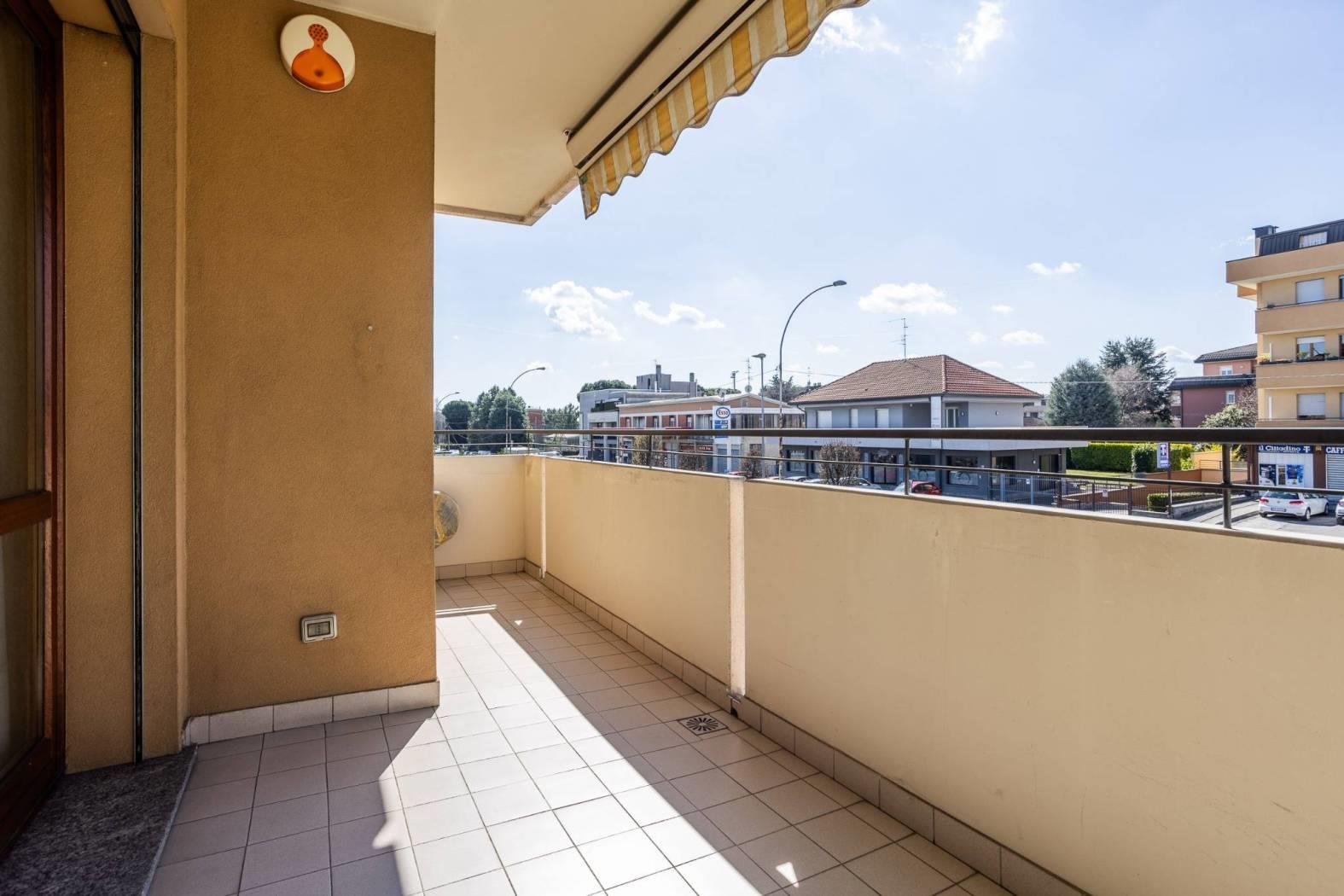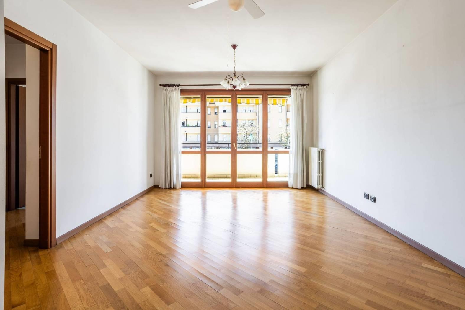 In gradevole contesto residenziale comodo ai servizi, appartamento posto al primo piano dotato di doppio affaccio. Ingresso, soggiorno con ampia porta finestra con uscita sul terrazzo di 10 mq., cucina abitabile con comodo balcone di servizio, disimpegno notte con camera matrimoniale, seconda camera, un bagno finestrato dotato di doccia e un secondo bagno con mezza vasca. L'appartamento si presenta in buono stato di manutenzione e libero subito: parquet sia nella zona giorno che nella zona notte, ceramica in cucina e nei bagni; tapparella motorizzata nel soggiorno. Cantina. Termoautonomo. Ampio box singolo ad € 22.000.