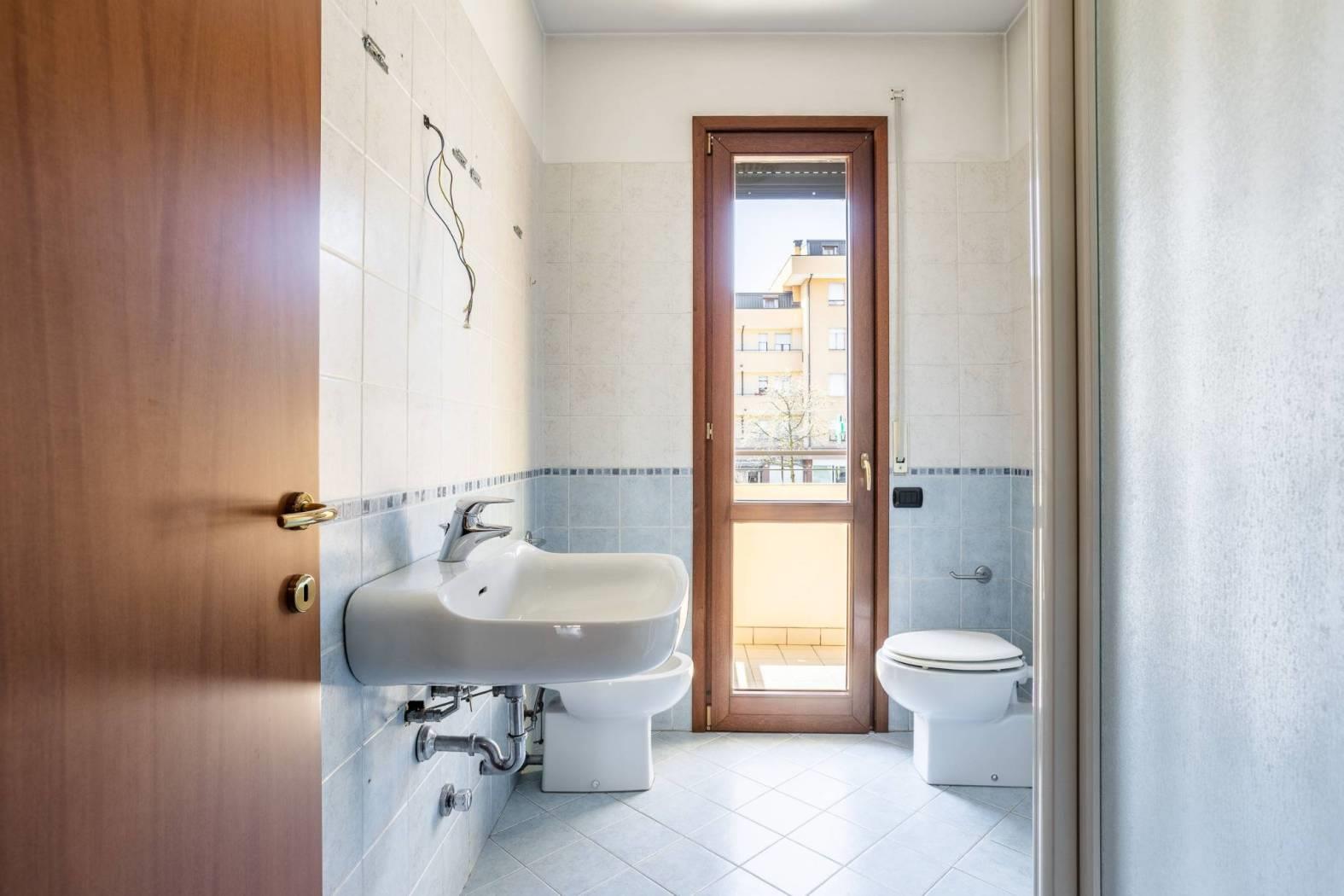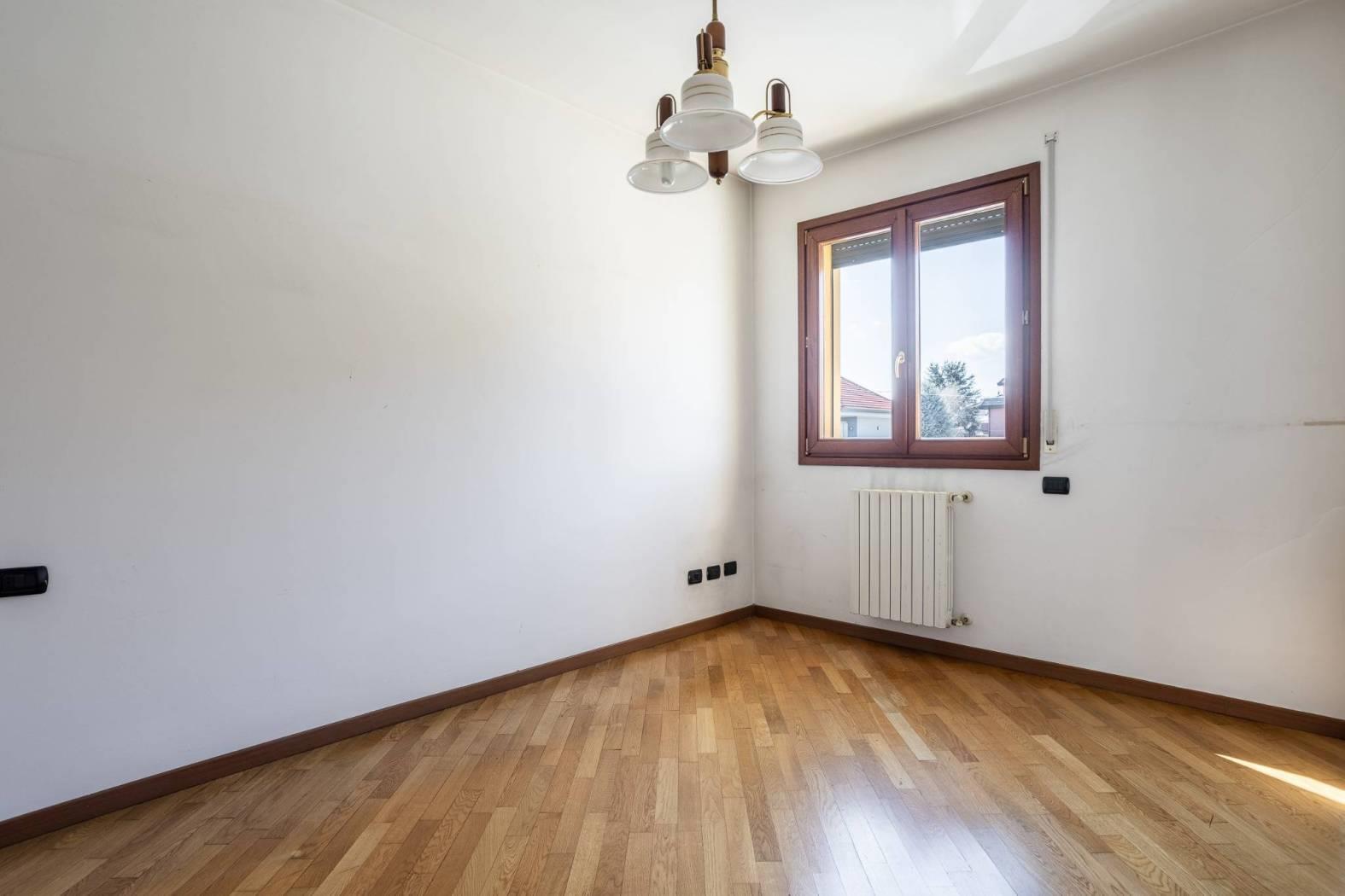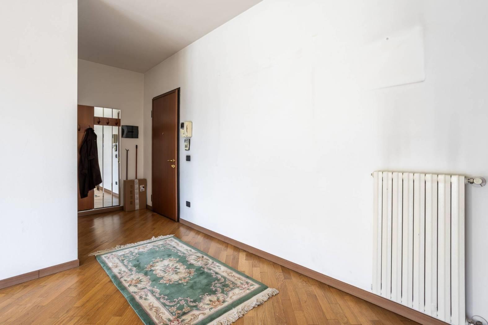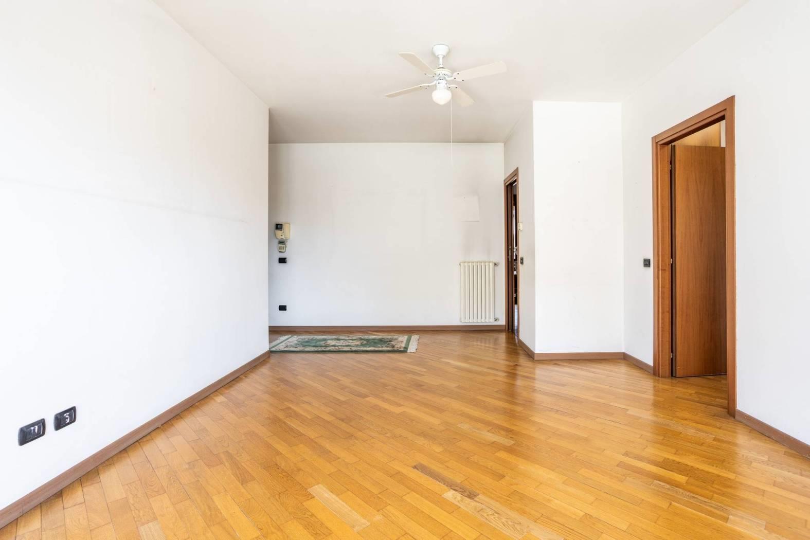 In gradevole contesto residenziale comodo ai servizi, appartamento posto al primo piano dotato di doppio affaccio. Ingresso, soggiorno con ampia porta finestra con uscita sul terrazzo di 10 mq., cucina abitabile con comodo balcone di servizio, disimpegno notte con camera matrimoniale, seconda camera, un bagno finestrato dotato di doccia e un secondo bagno con mezza vasca. L'appartamento si presenta in buono stato di manutenzione e libero subito: parquet sia nella zona giorno che nella zona notte, ceramica in cucina e nei bagni; tapparella motorizzata nel soggiorno. Cantina. Termoautonomo. Ampio box singolo ad € 22.000.