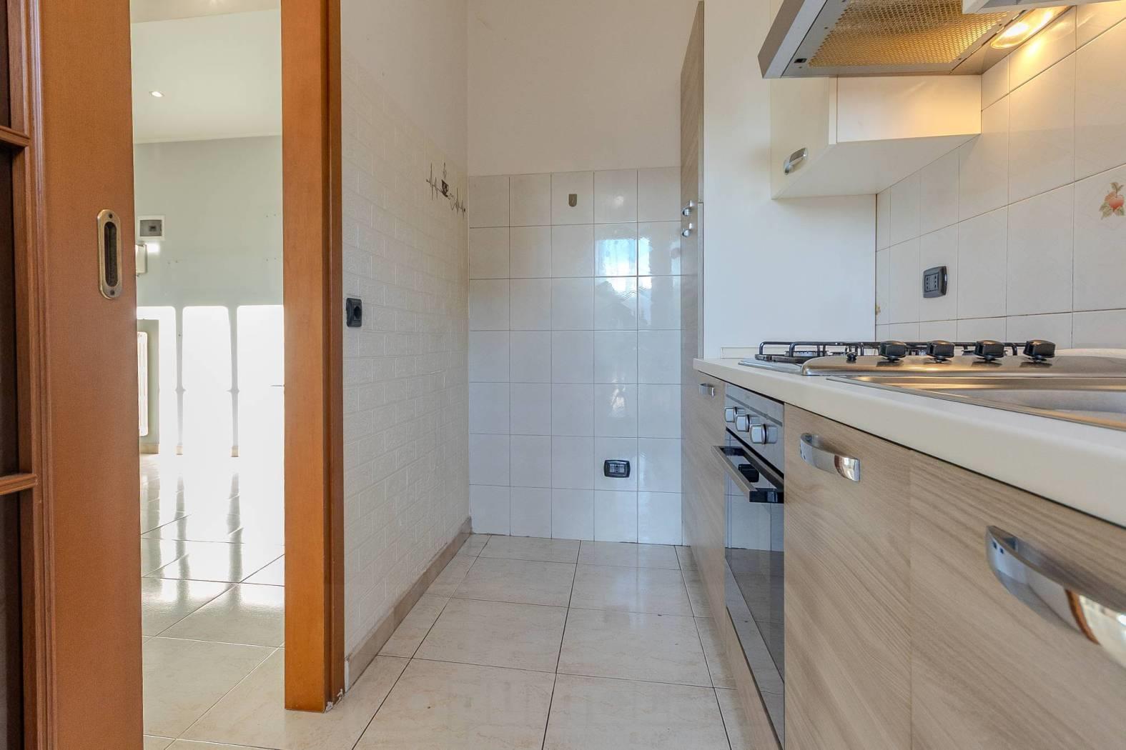 Dall'ingresso, parzialmente separato da una spalletta , si accede al soggiorno e da qui al cucinotto. Tramite un corridoio si accede al bagno finestrato ed alle camera. Balcone accessibile dalla cucina.