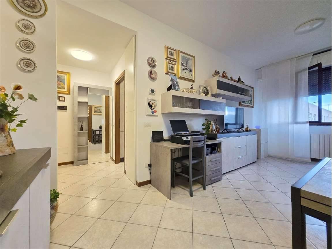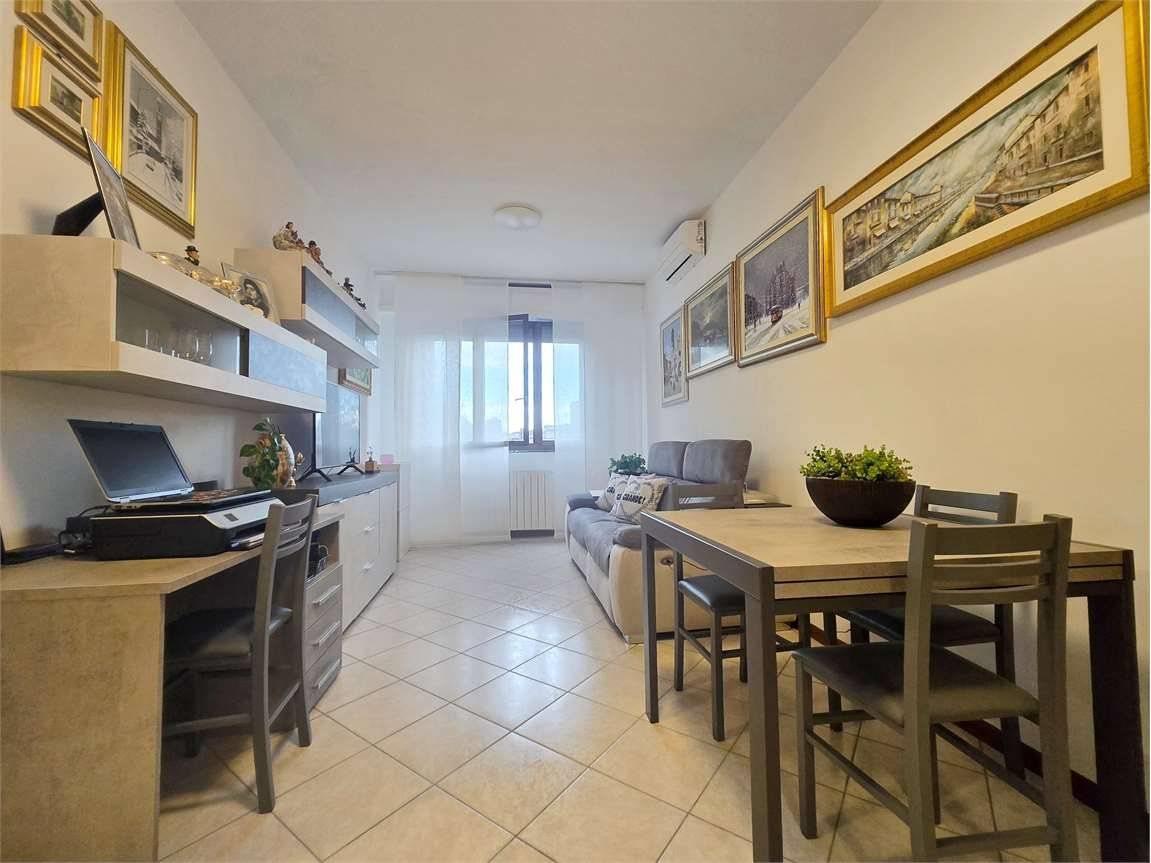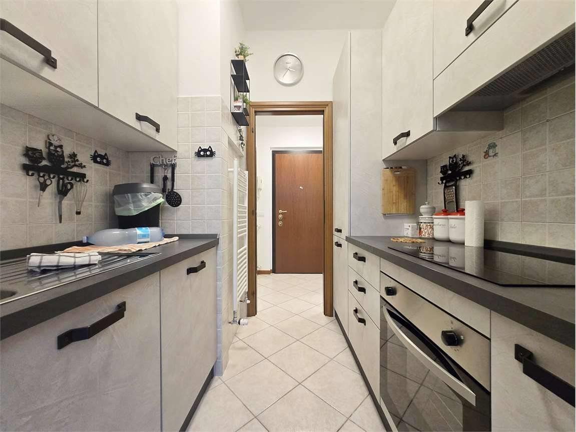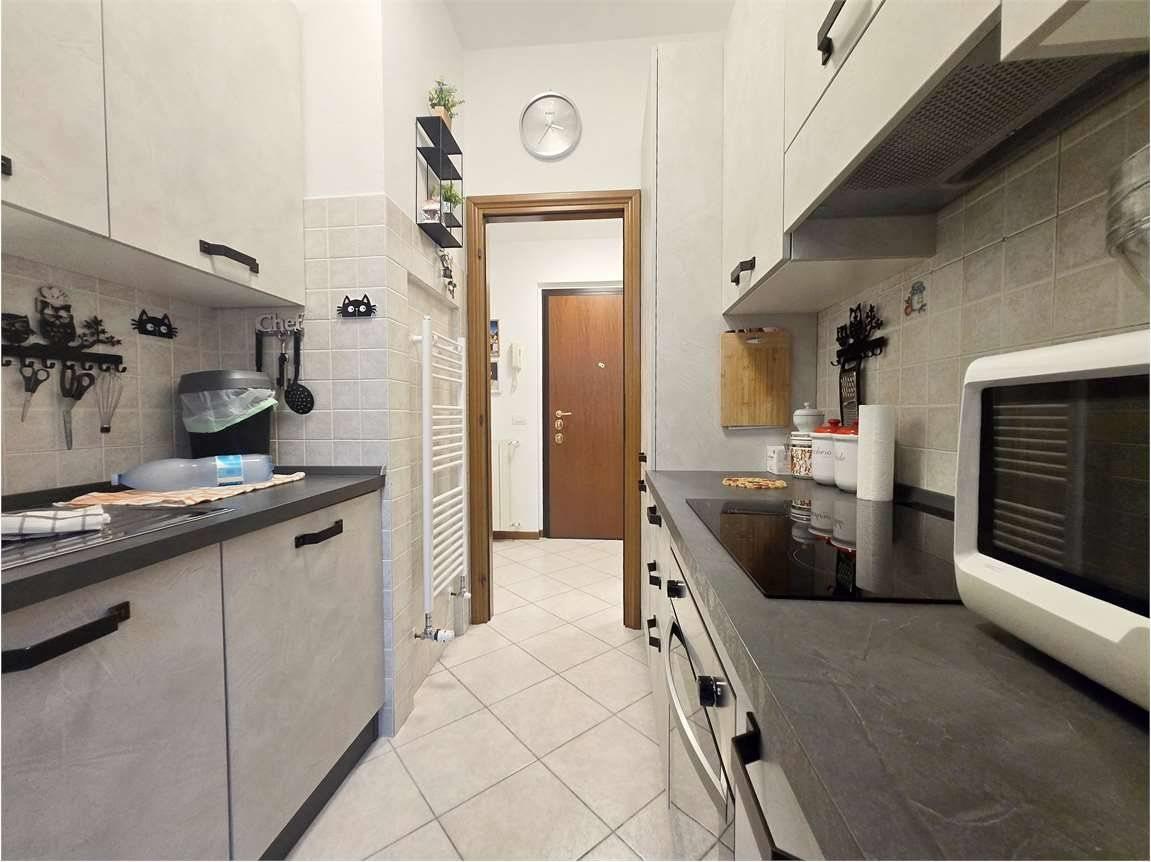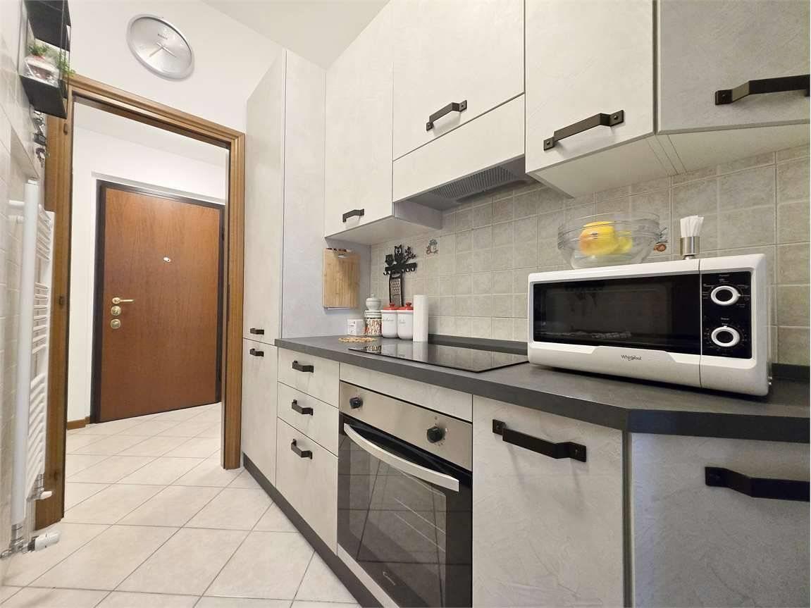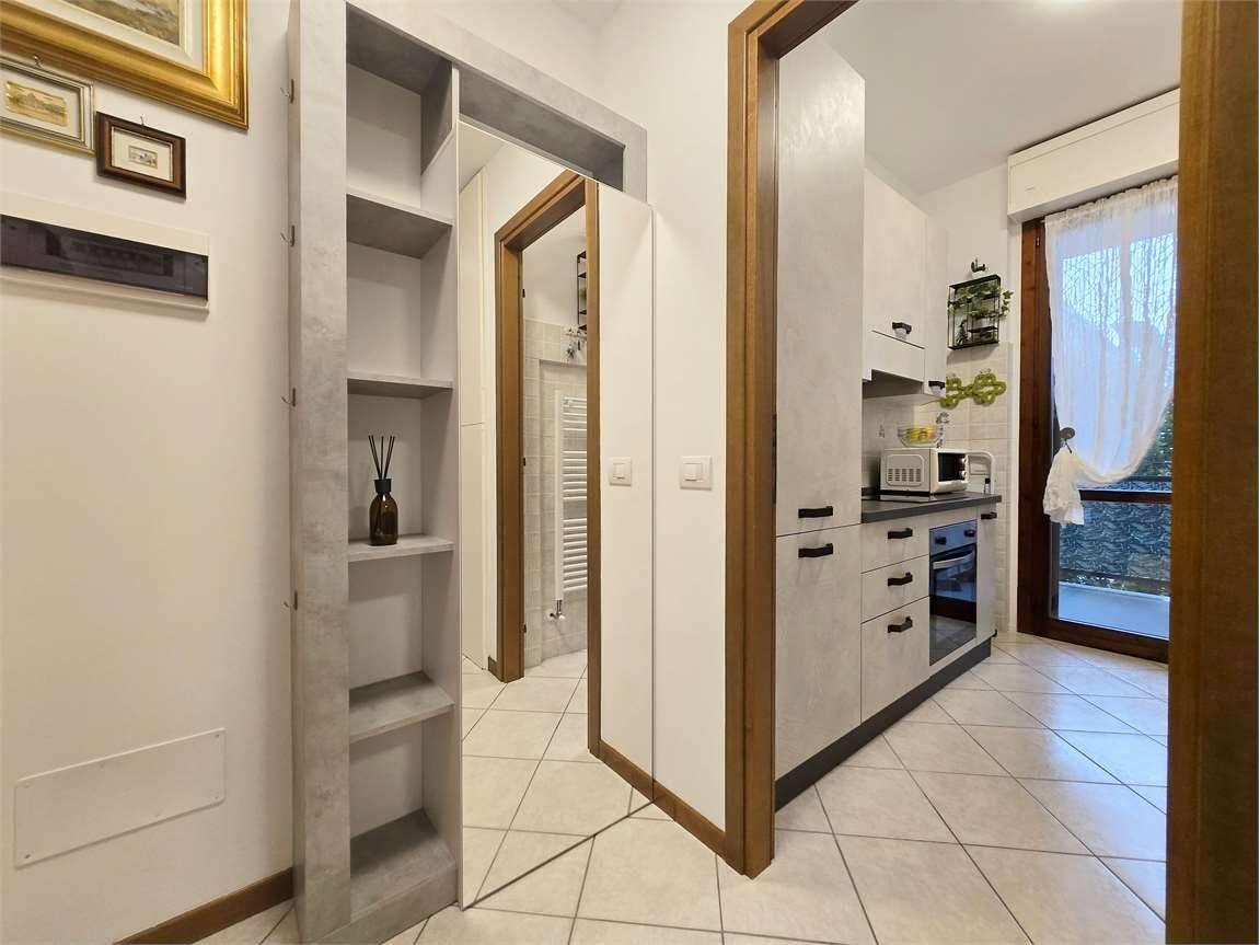 L’ingresso si apre su un comodo disimpegno che conduce al cucinotto, organizzato su due lati del locale, e all’ampio soggiorno, particolarmente luminoso grazie all’esposizione favorevole.