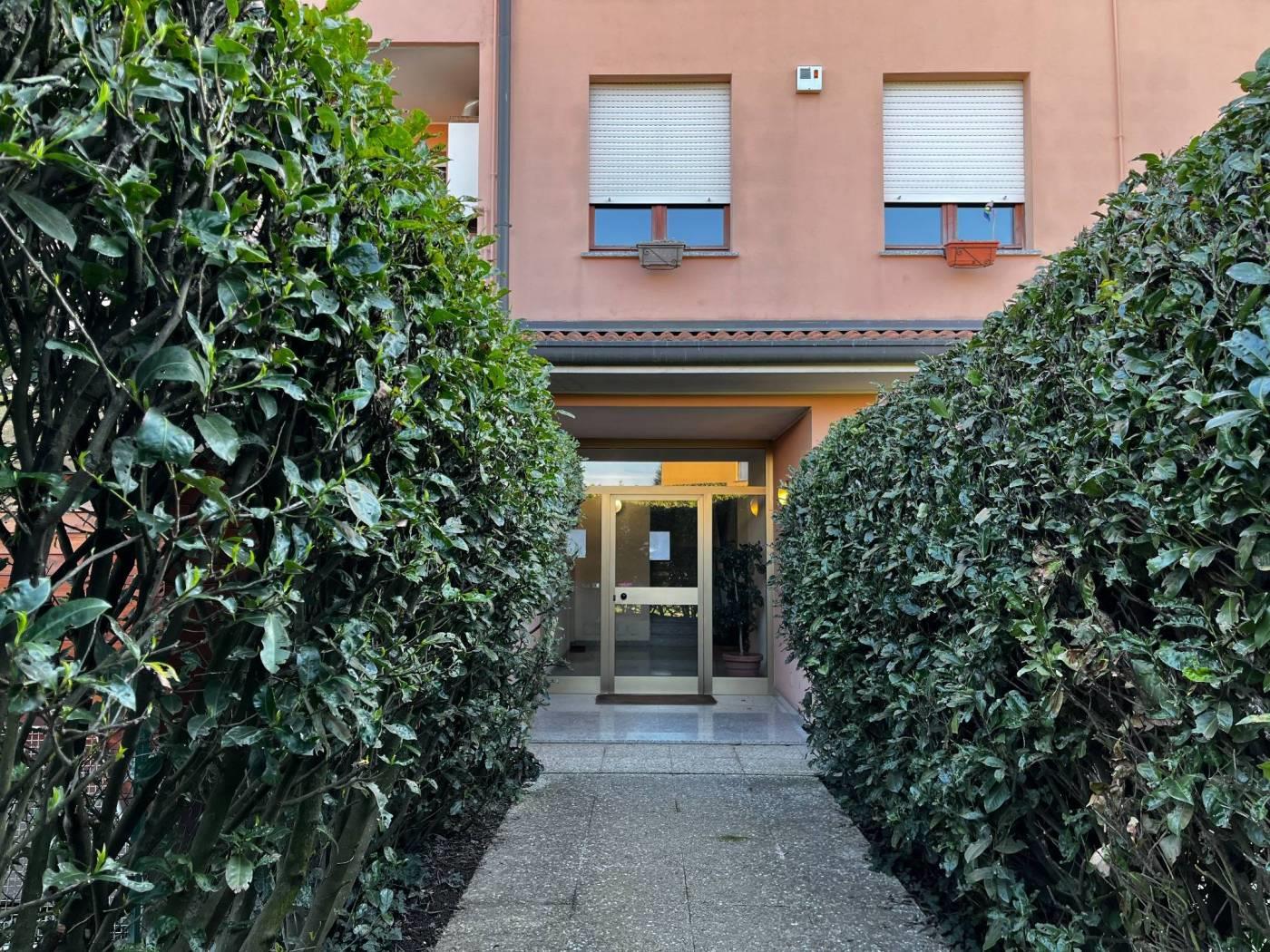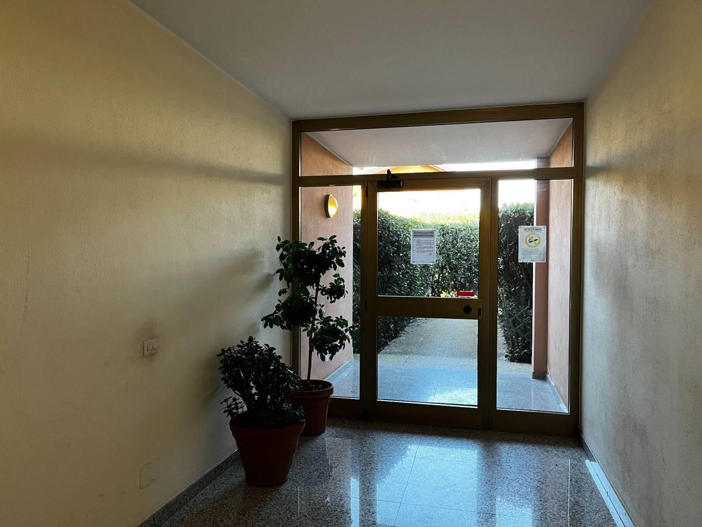 ingresso con cancello motorizzato, accessoriato da una cantina e da un box auto. Ulteriori parcheggi disponibili per il condominio