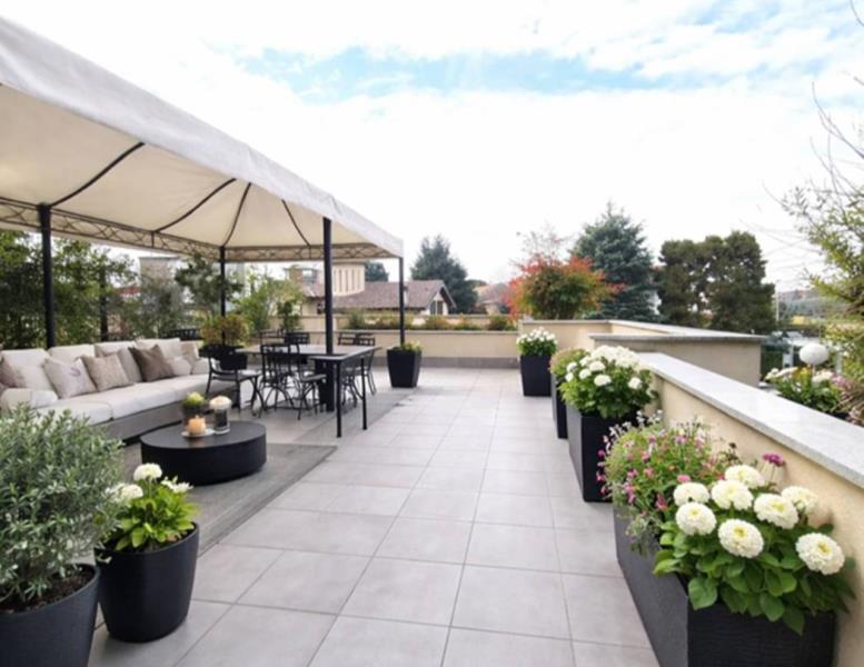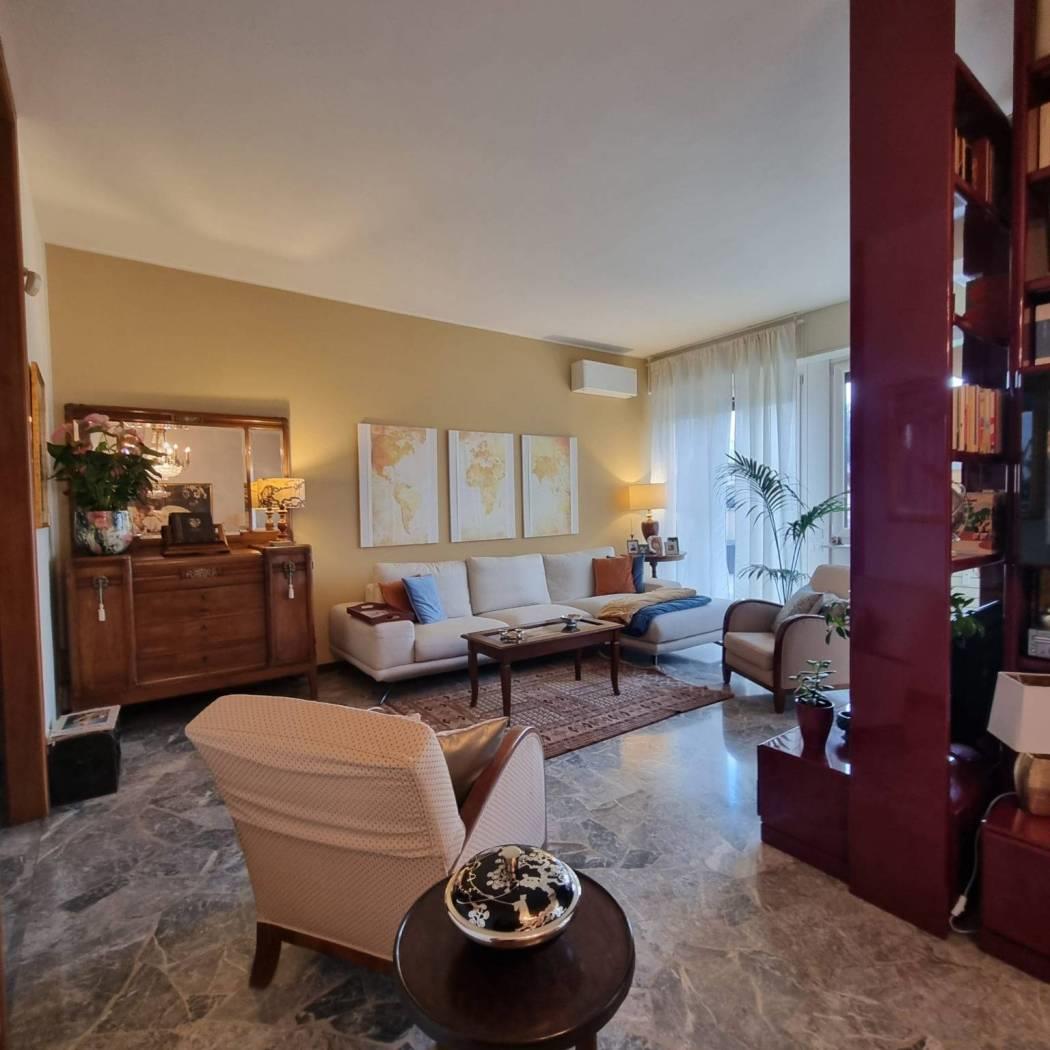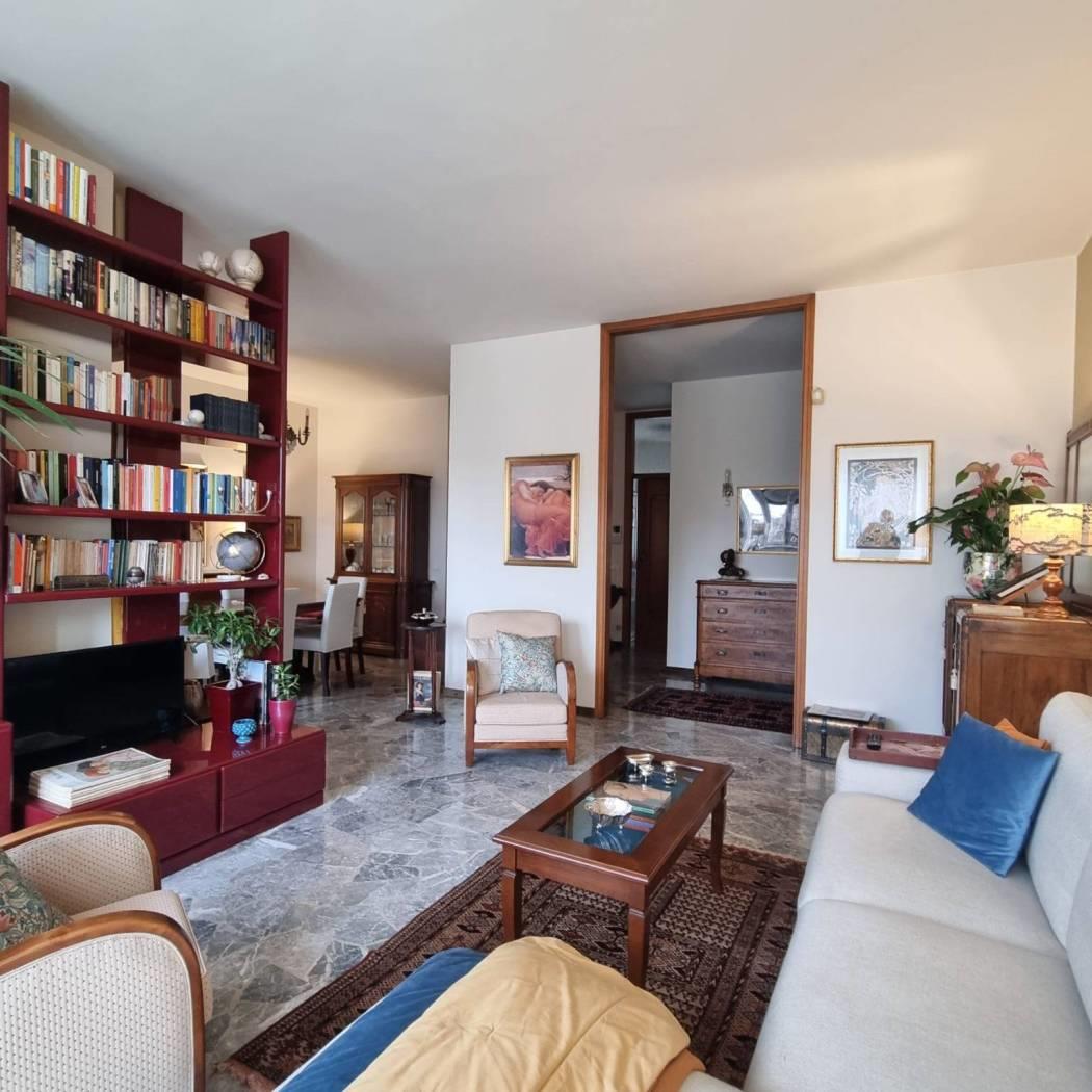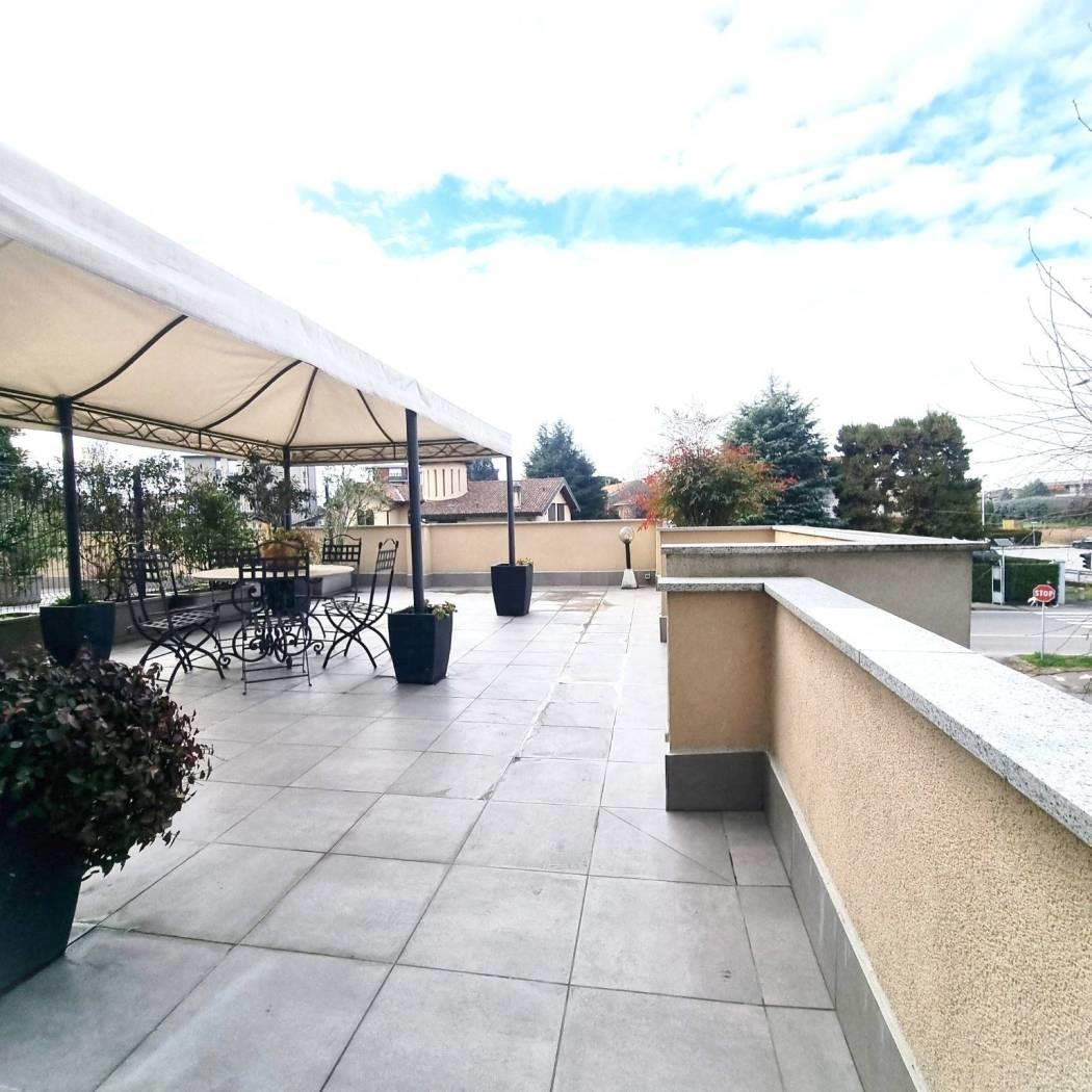 "Condominio Le Betulle", al primo piano, luminoso appartamento di mq. 140 ca. ingresso, ampio soggiorno, cucina abitabile, 2 camere, 2 bagni, ripostiglio, 2 balconi, terrazzo mq. 45 ca. Cantina mq. 12 ca. Ampio box doppio mq. 36 ca. Riscaldamento centralizzato con contabilizzatori di calore. Serramenti in Pvc con doppi vetri e oscuramento garantito da tapparelle in Pvc. Porta primo ingresso blindata. Porte interne in legno a battente. Pavimentazioni in marmo piombato nella zona giorno e parquet essenza Rovere nella zona notte. Gres porcellanato in cucina e nei bagni. Impianto aria condizionata. Videocitofono. Esposizione EST - OVEST. (Possibilità di creare la terza camera).