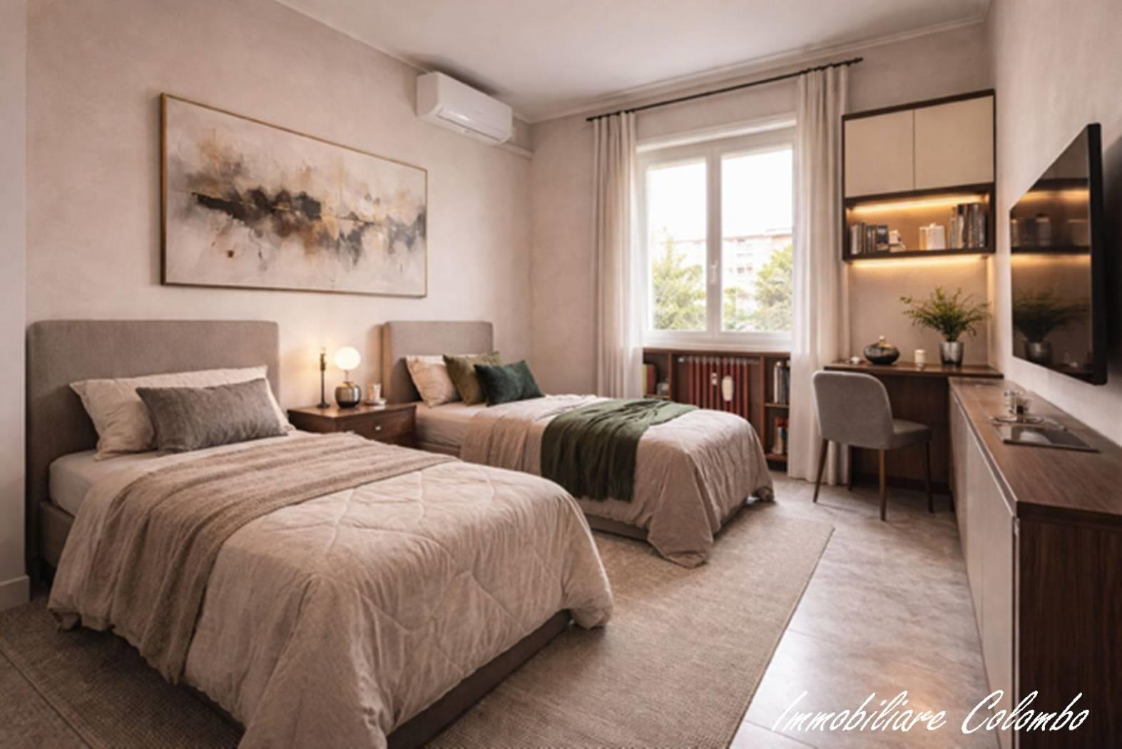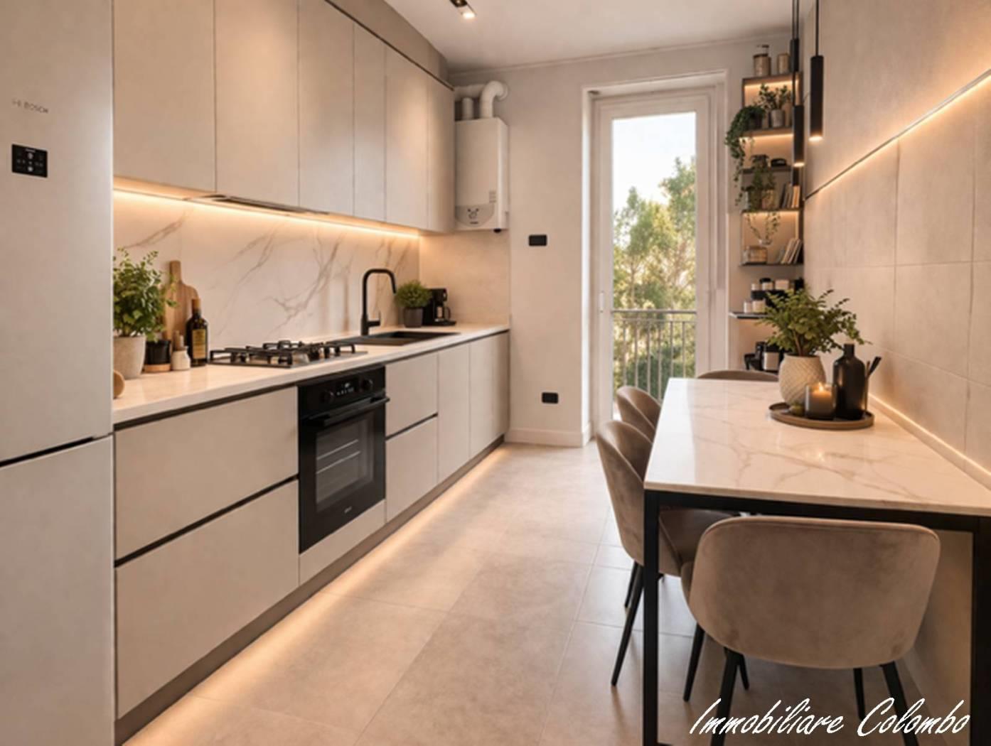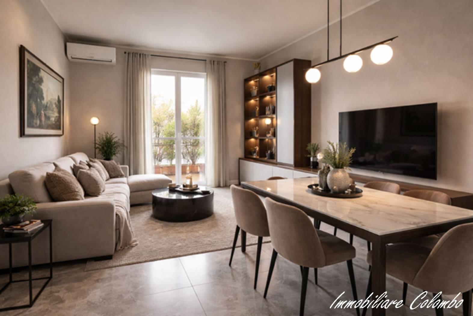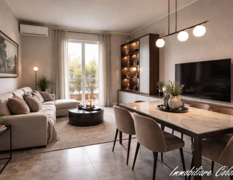 Zona San Rocco, luminoso 3 locali mq. 85 ca. ingresso, soggiorno, cucina abitabile, 2 camere, bagno, 2 balconi, cantina. Possibilità box singolo mq. 17 ca. € 20.000, 00. Riscaldamento centralizzato con contabilizzatori di calore. Serramenti in alluminio con doppi vetri e oscuramento garantito da tapparelle in Pvc. Porta primo ingresso blindata. Porte interne in legno a battente. Pavimentazione in ceramica nella zona giorno e nella zona notte. Impianto aria condizionata. Esposizione SUD - EST. (I render degli interni sono indicativi)