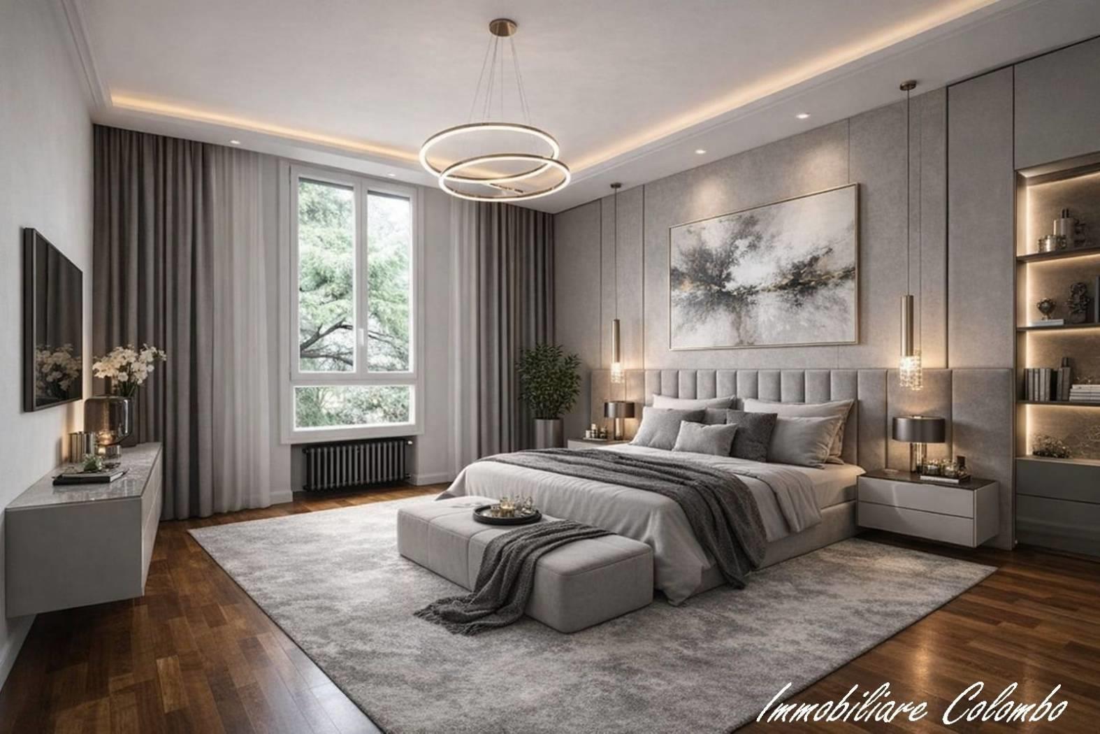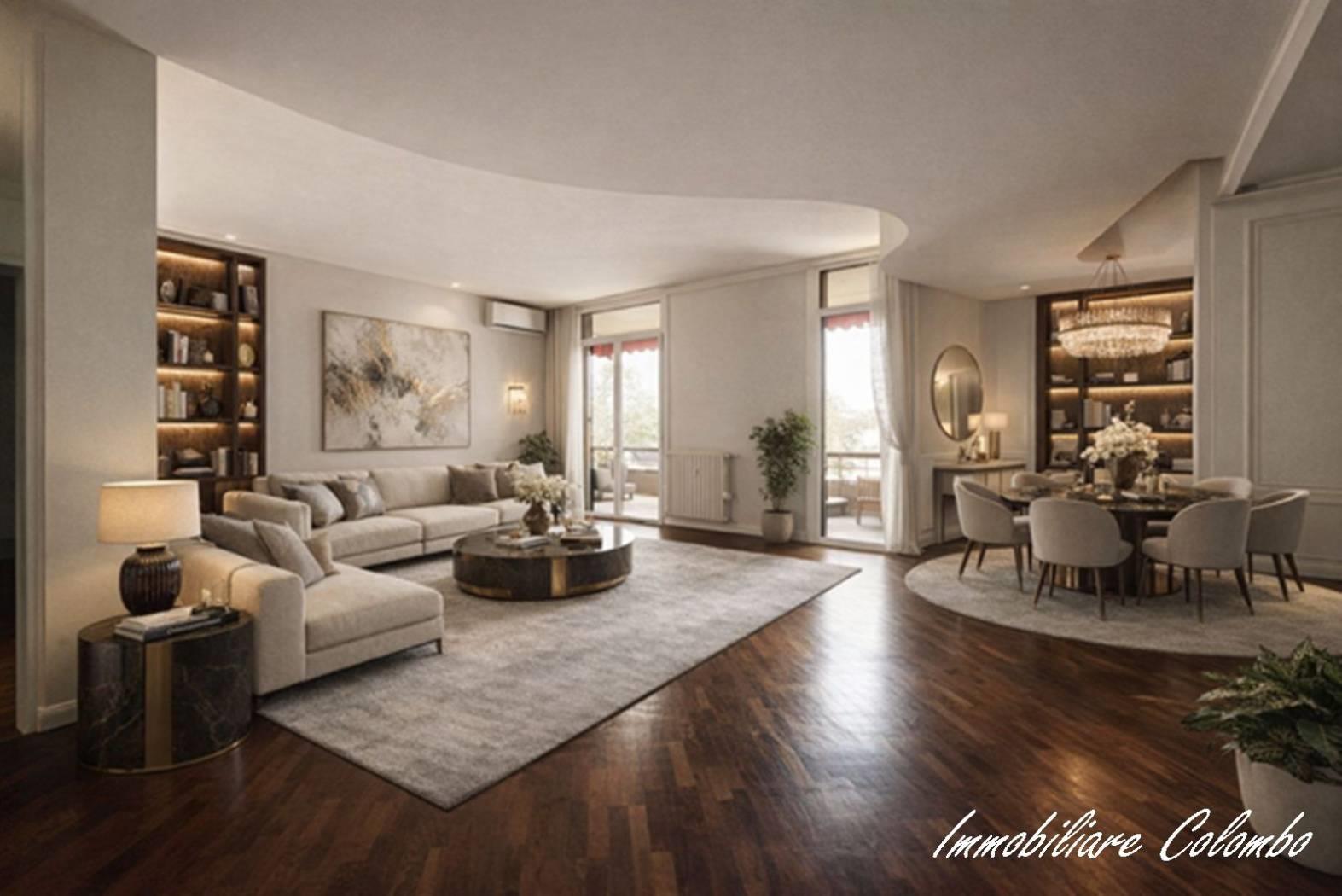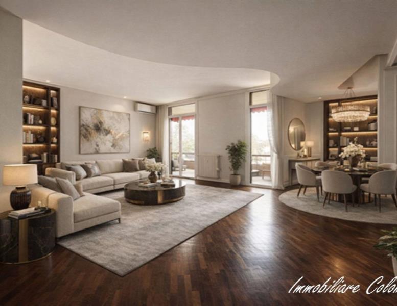 Centro. "Condominio Vip House". In signorile contesto anni '70 con portineria e giardino condominiale, al quarto piano, luminoso appartamento di mq. 140 ca. ingresso, ampio soggiorno, cucina abitabile, 3 camere, 2 bagni, terrazzino e cantina. Finiture di pregio. Riscaldamento centralizzato con contabilizzatori di calore. Serramenti in PVC con doppi vetri e oscuramento garantito da persiane. Porta primo ingresso blindata. Porte interne in legno a battente. Pavimentazione in parquet essenza Rovere in zona giorno e zona notte. Gres porcellanato in cucina e bagno. Impianto aria condizionata. Impianto allarme volumetrico e perimetrale. Videocitofono. Esposizione NORD - SUD - OVEST. Possibilità posto auto condominiale in affitto. (I render degli interni sono indicativi).