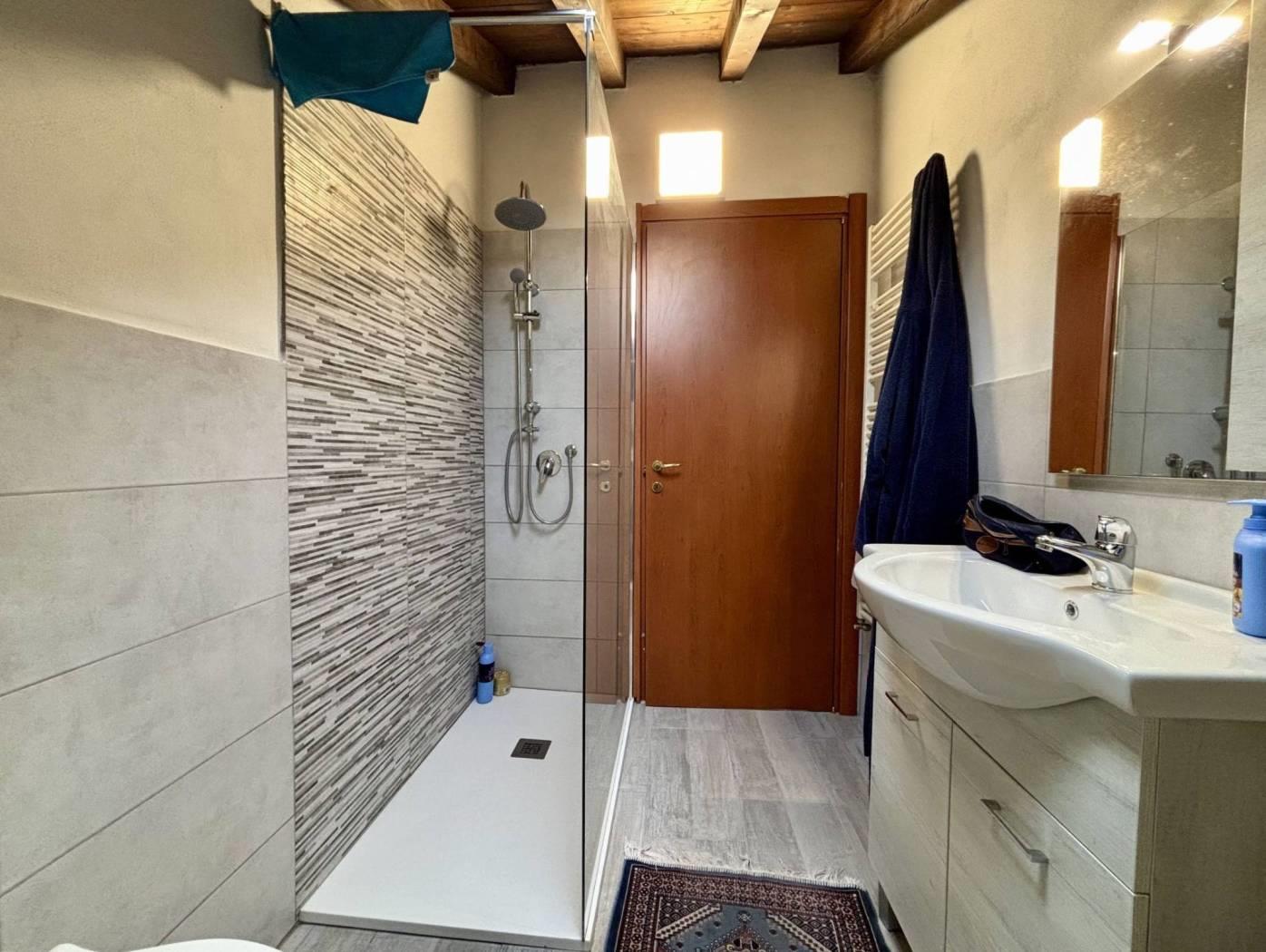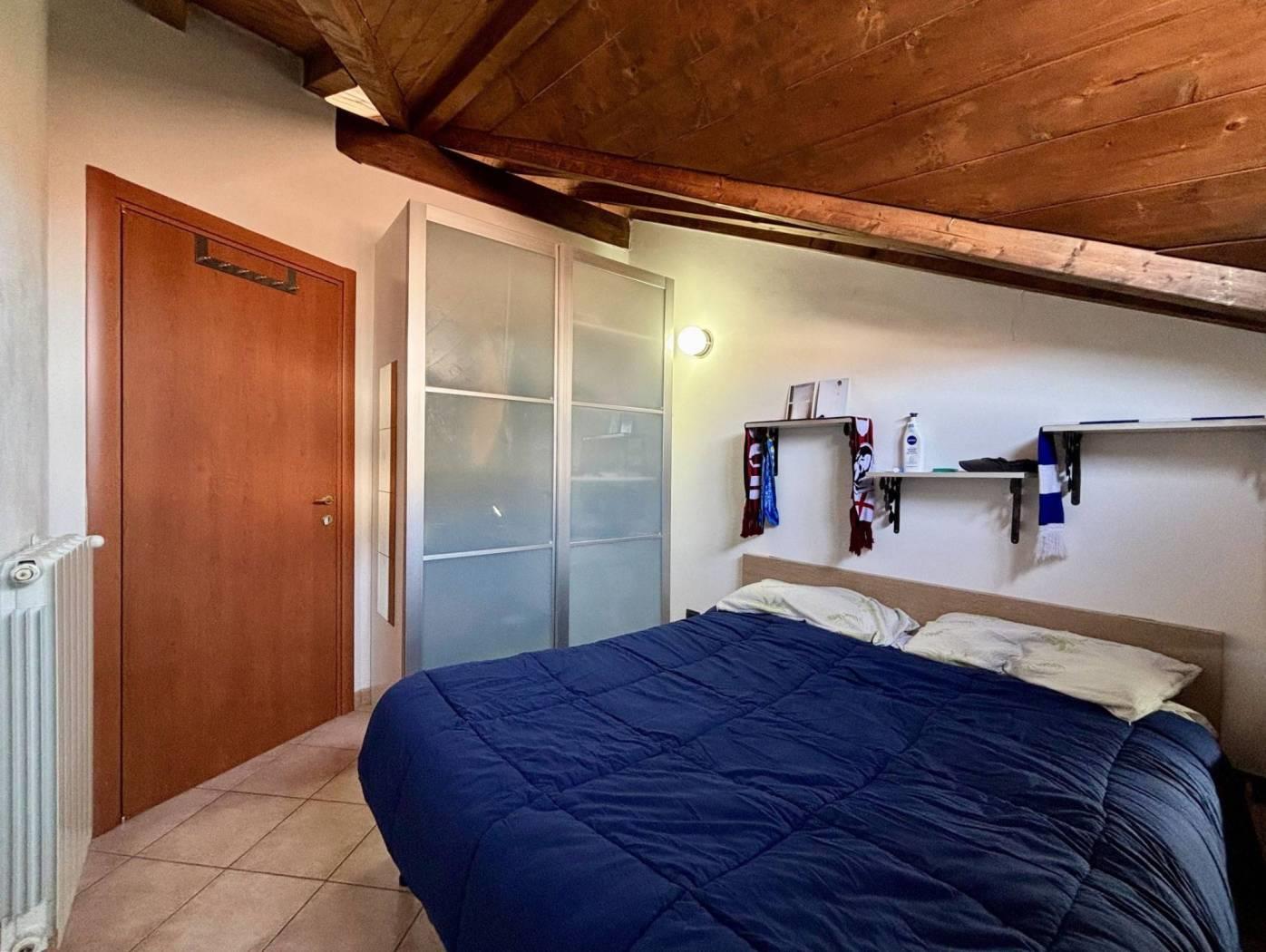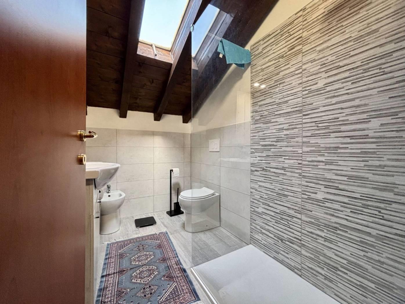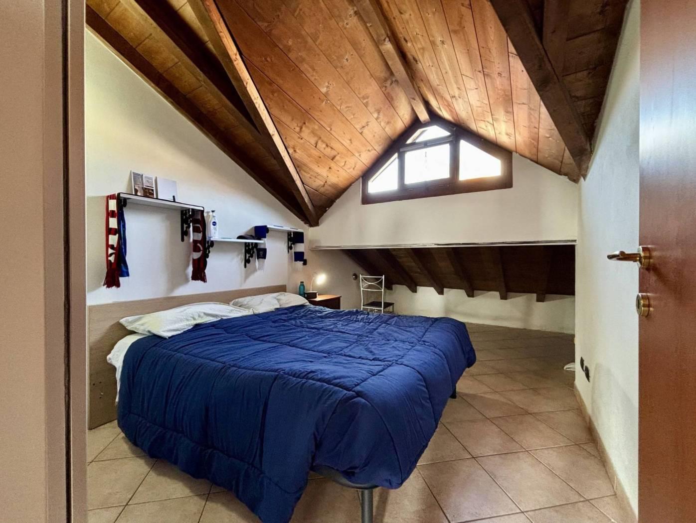 Dalla zona living si accede alla camera matrimoniale e al disimpegno che conduce al bagno finestrato, completo di doccia e appena ristrutturato, che verrebbe lasciato completo di arredi.