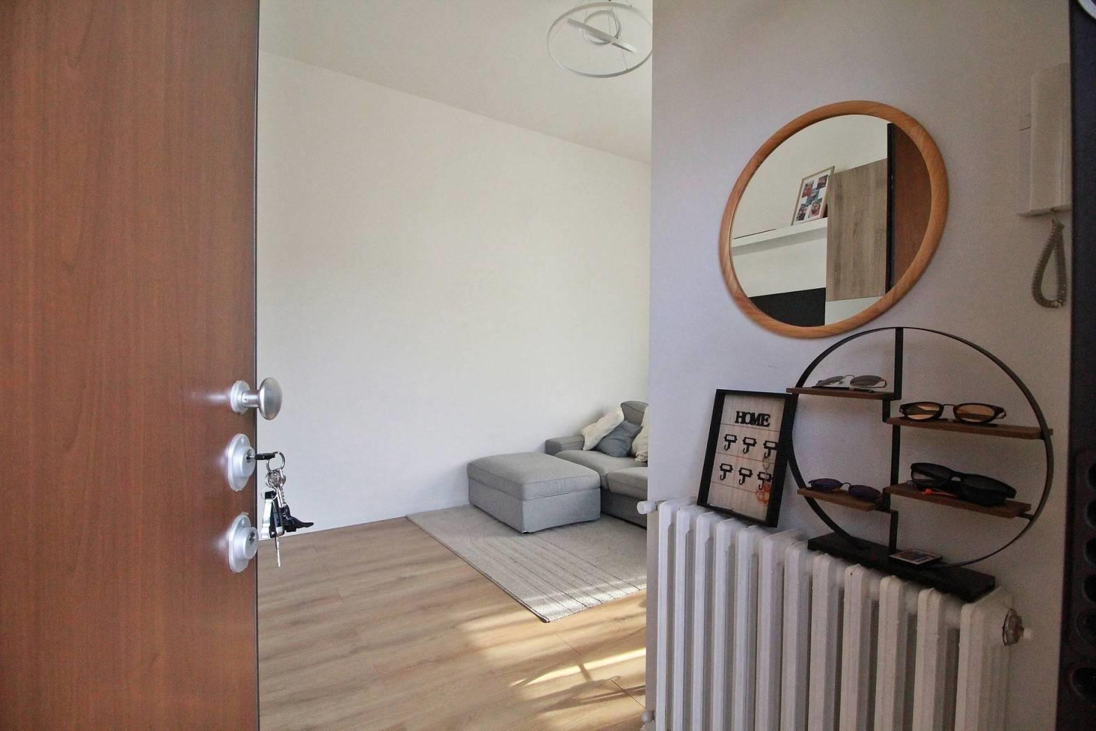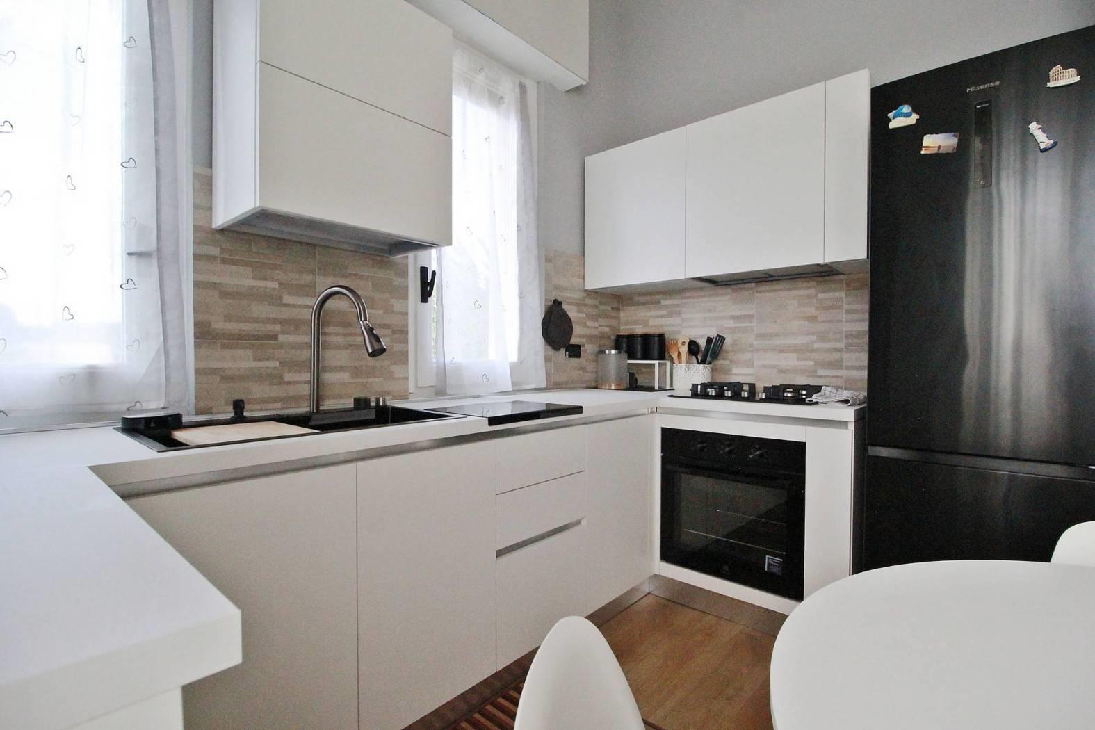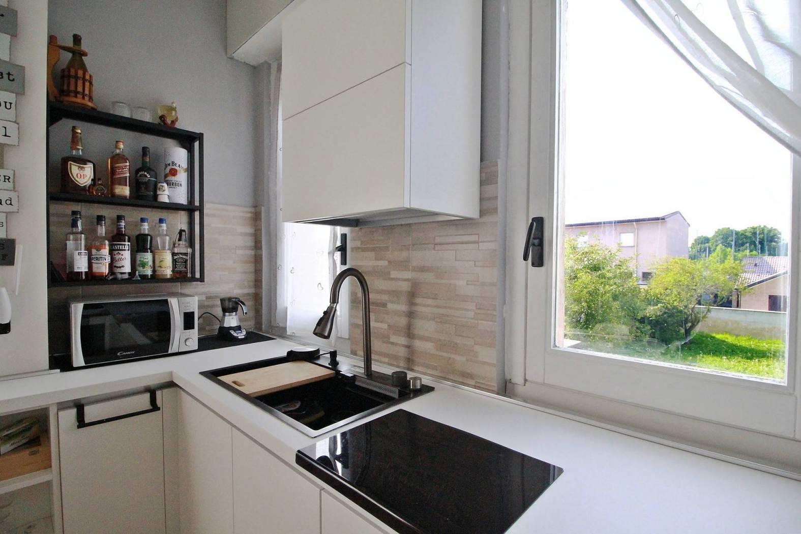 Nel centro del paese, in posizione molto tranquilla e al tempo stesso egregiamente collegato con tutti i servizi di prioritaria necessita', singolare tre locali semindipendente con terrazzo, posto al primo ed ultimo piano. La soluzione, termoautonoma, si presenta con un ampio e soleggiato terrazzo che porta nell'appartamento; questo e' contraddistinto da un soggiorno con piacevole angolo cottura, da un funzionale disimpegno che immette nelle due camere, da un grande bagno con box doccia e da uno spazioso ripostiglio. Presente la cantina e un posto auto in uso esclusivo, nonche' i condizionatori nella zona giorno e nella zona notte. L'immobile, vista la tripla esposizione, e' molto luminoso e ha spazi ben organizzati; si avvale, inoltre, di una recente ristrutturazione. Di particolare rilievo e' il terrazzo, vivibile e panoramico, che ben si presta a momenti di convivialita'. Molto contenute le spese condominiali. Il prezzo e' comprensivo dell' arredamento