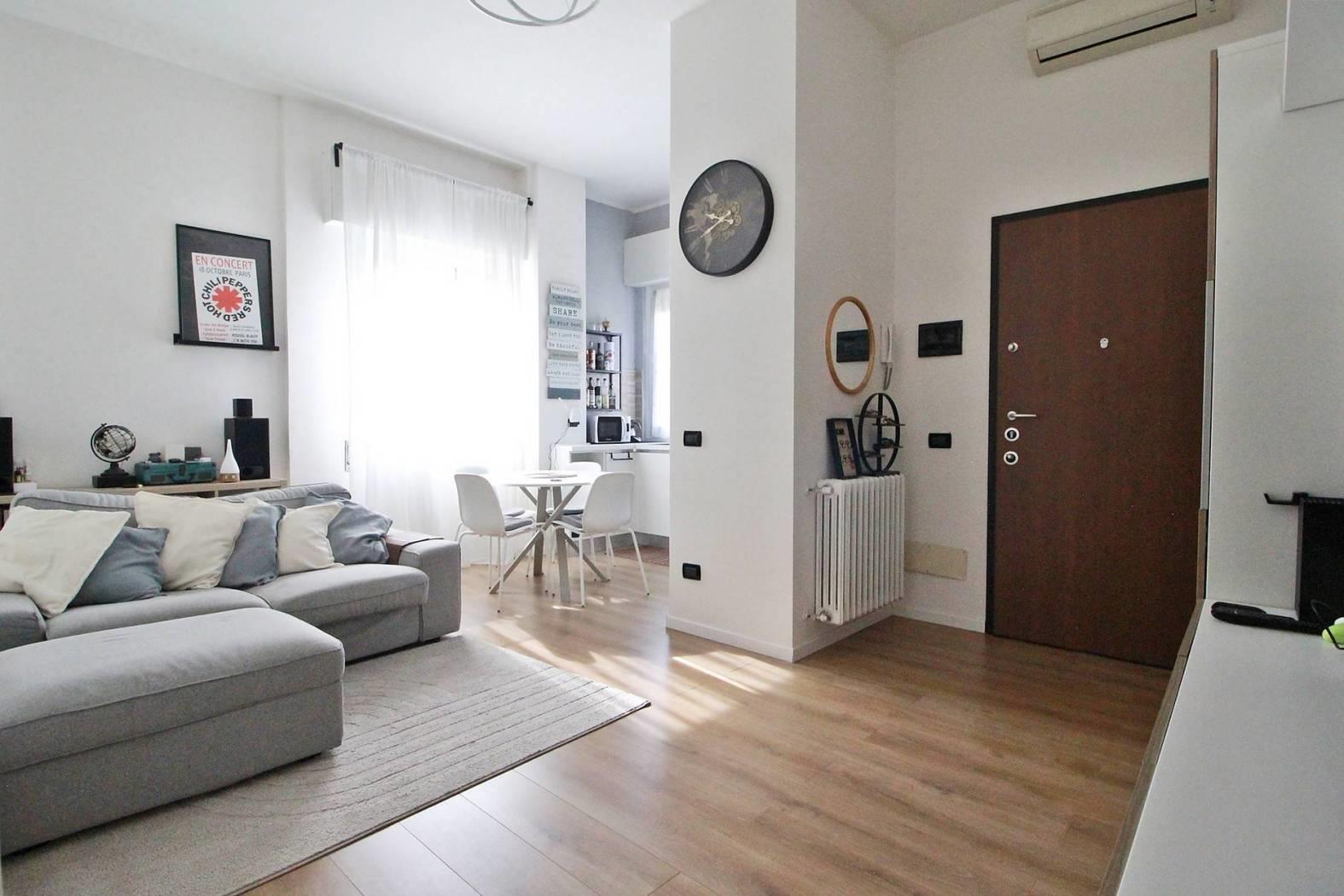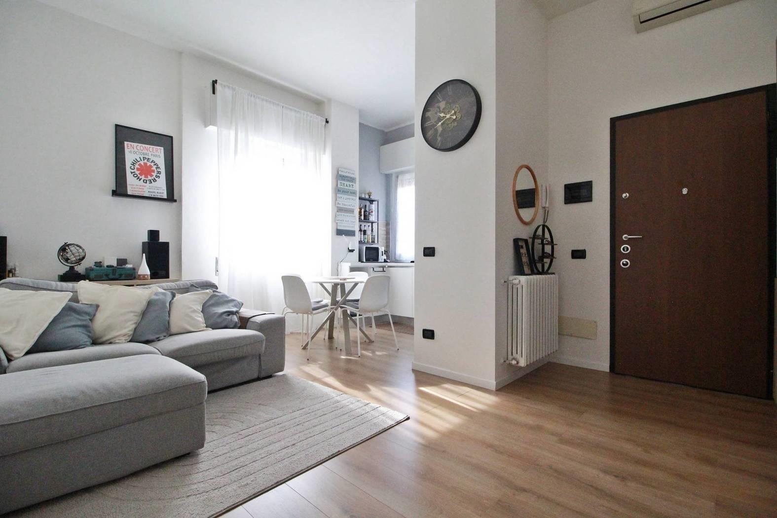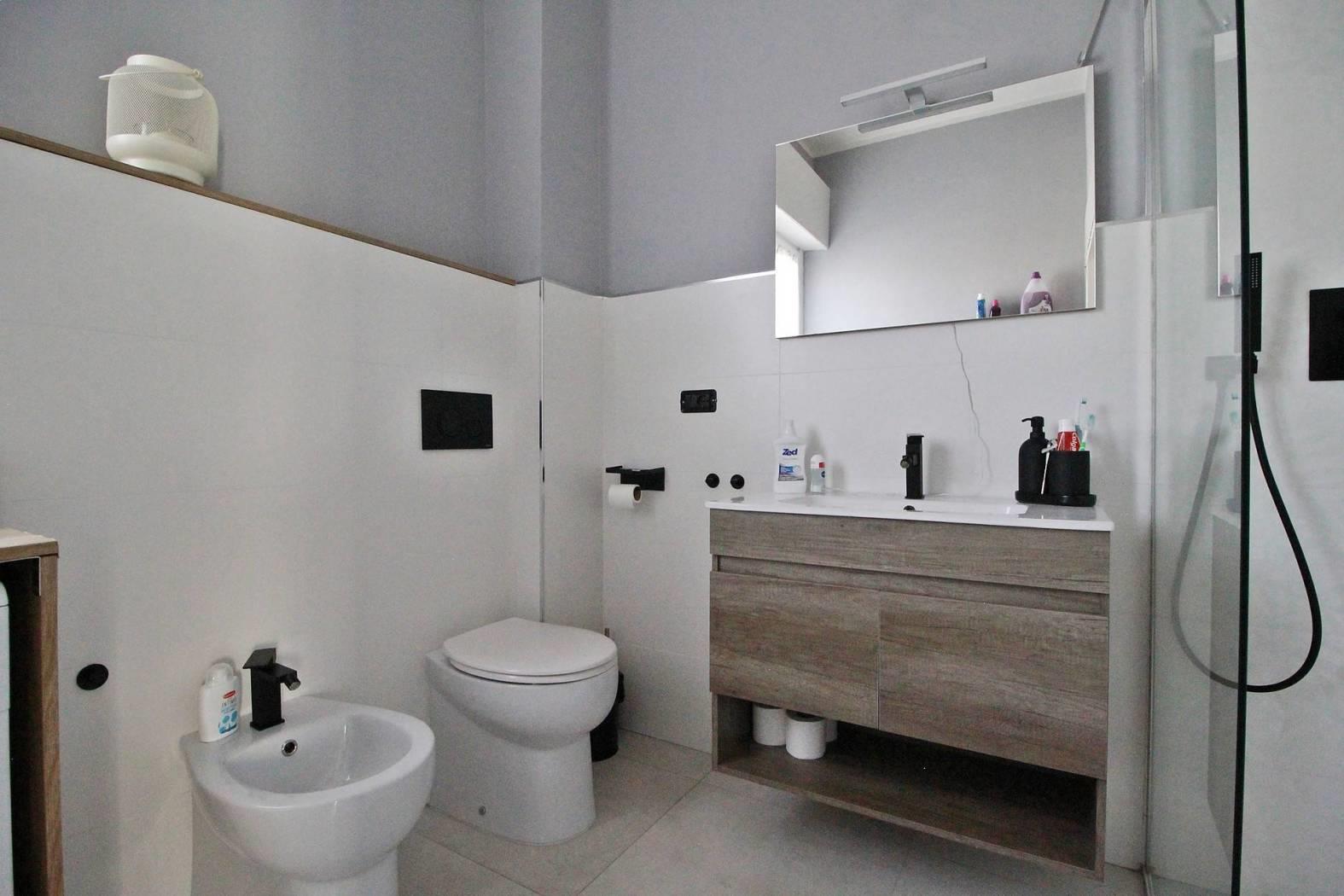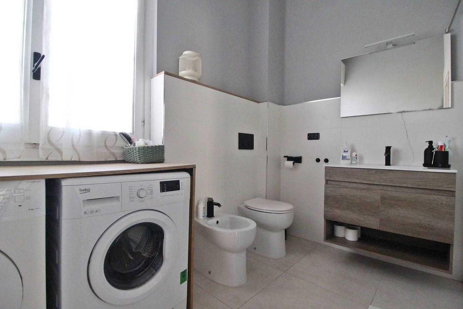 Nel centro del paese, in posizione molto tranquilla e al tempo stesso egregiamente collegato con tutti i servizi di prioritaria necessita', singolare tre locali semindipendente con terrazzo, posto al primo ed ultimo piano. La soluzione, termoautonoma, si presenta con un ampio e soleggiato terrazzo che porta nell'appartamento; questo e' contraddistinto da un soggiorno con piacevole angolo cottura, da un funzionale disimpegno che immette nelle due camere, da un grande bagno con box doccia e da uno spazioso ripostiglio. Presente la cantina e un posto auto in uso esclusivo, nonche' i condizionatori nella zona giorno e nella zona notte. L'immobile, vista la tripla esposizione, e' molto luminoso e ha spazi ben organizzati; si avvale, inoltre, di una recente ristrutturazione. Di particolare rilievo e' il terrazzo, vivibile e panoramico, che ben si presta a momenti di convivialita'. Molto contenute le spese condominiali. Il prezzo e' comprensivo dell' arredamento
