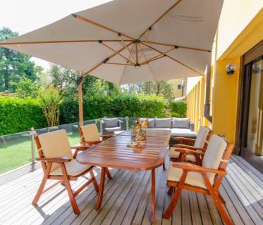 L'ingresso conduce direttamente alla cucina abitabile e al soggiorno, entrambi con sfogo esterno su un primo balcone. La zona notte è separata grazie ad un comodo disimpegno sul quale affacciano due ampie camere da letto, ognuna con un proprio balcone esclusivo, ed un bagno con vasca e doccia.
