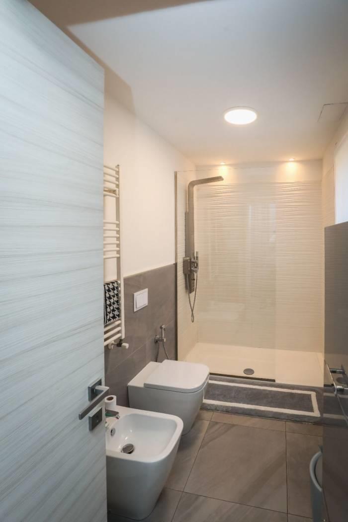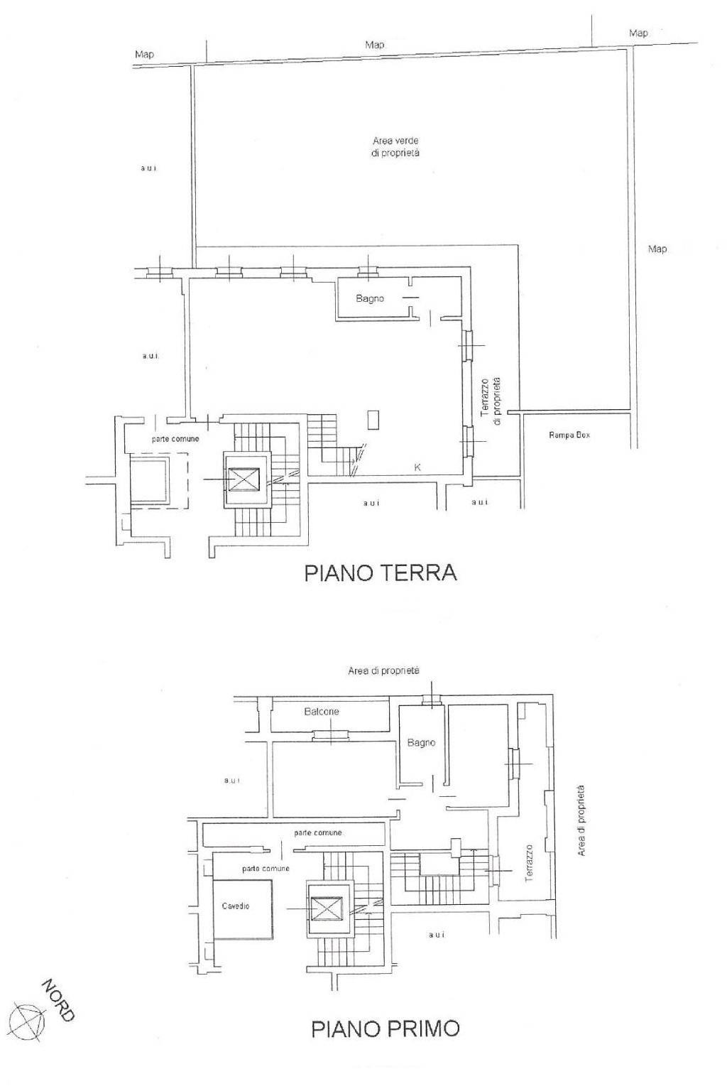 - Piano primo: Zona notte composta da due camere da letto, entrambe con accesso a terrazzi privati affacciati sul giardino, e secondo bagno finestrato.