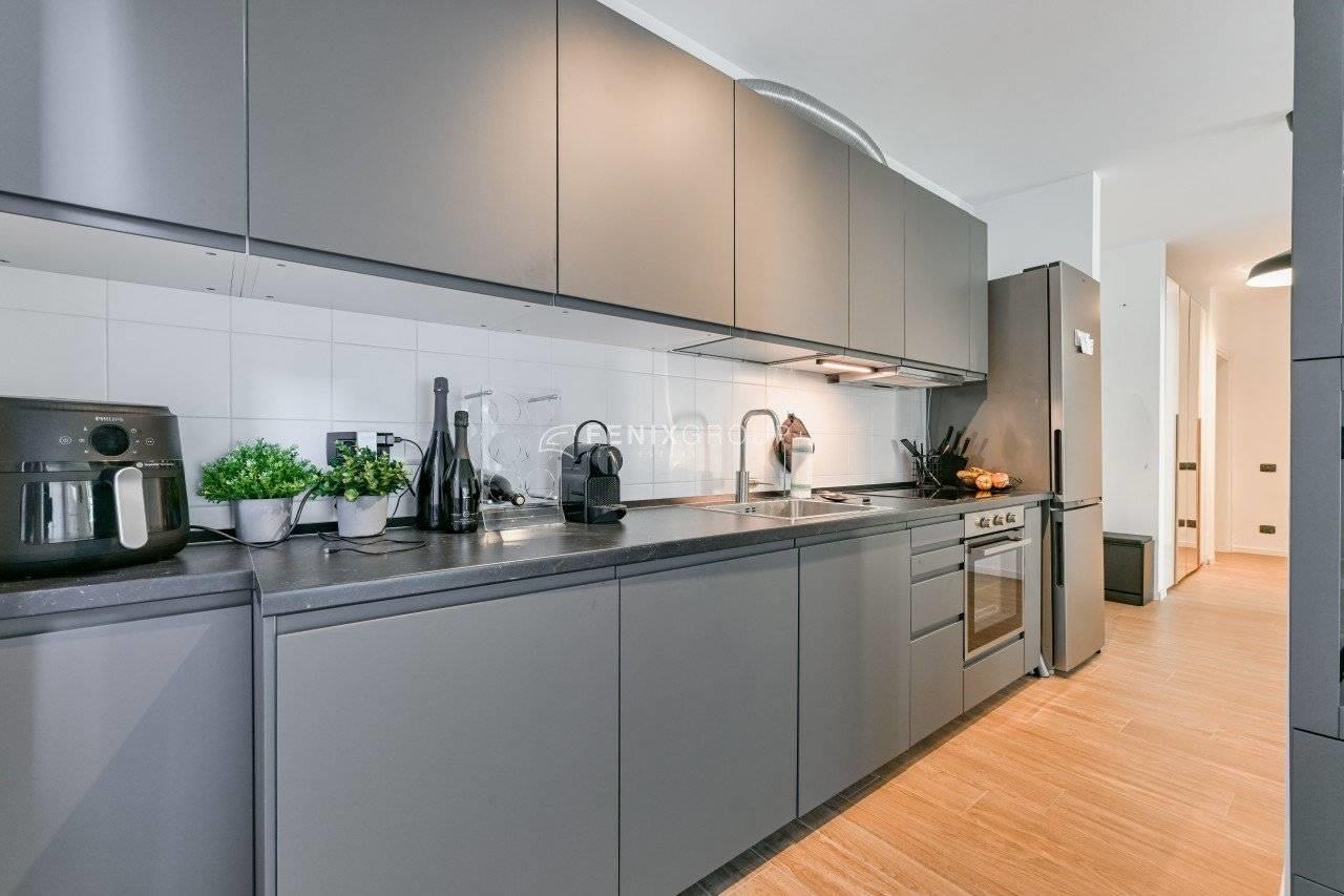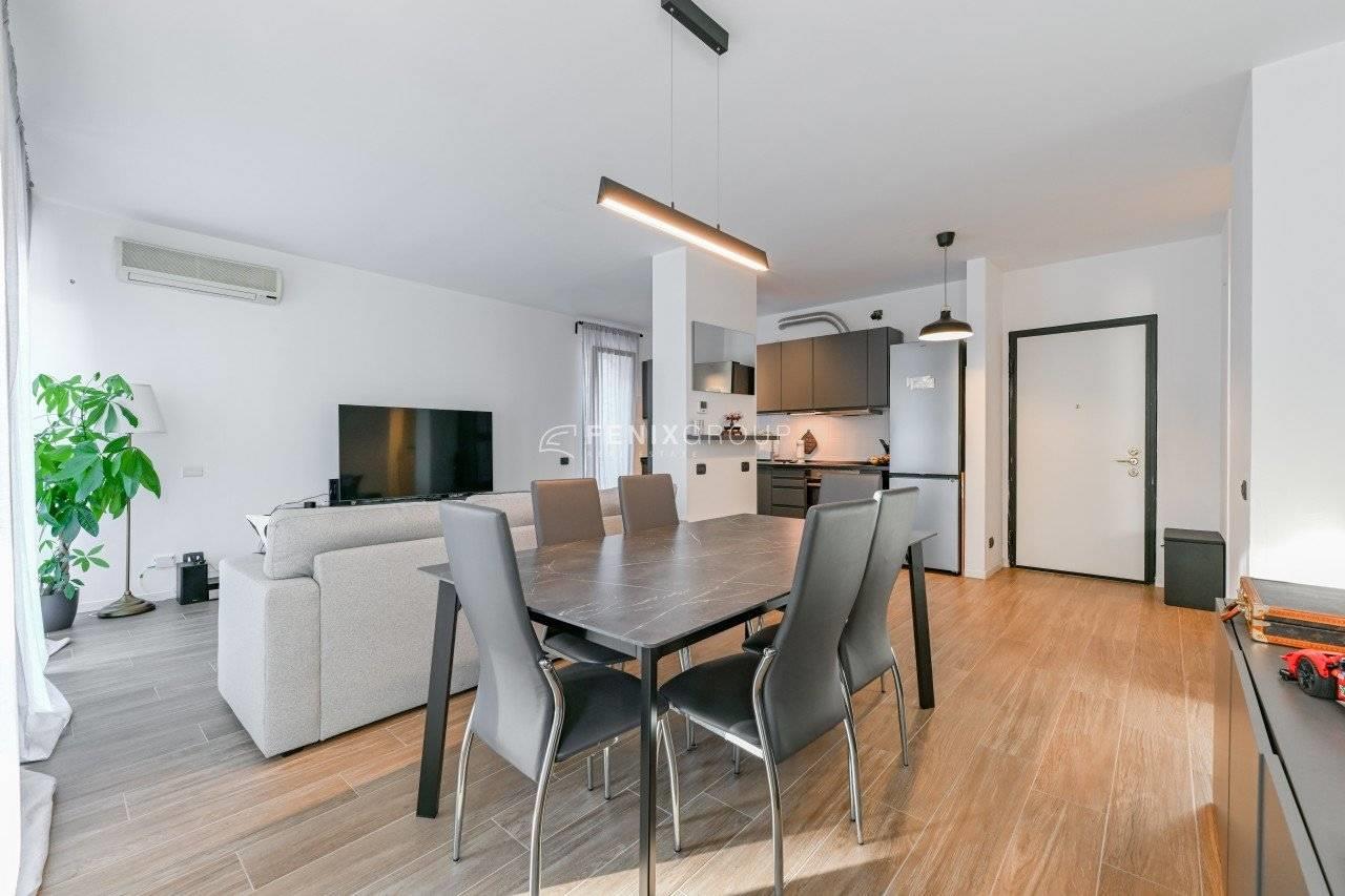 Fenixgroup propone in vendita un bilocale di 85 mq circa in un palazzo di nuovissima costruzione, del 2016, in via Carducci 35 a Cologno Monzese. L’ingresso introduce direttamente in un’ampia e luminosa zona living, pensata per offrire il massimo comfort abitativo, dove la cucina a vista si integra armoniosamente con il salotto di generose dimensioni, creando un ambiente versatile e funzionale, ideale sia per la quotidianità sia per momenti di convivialità.