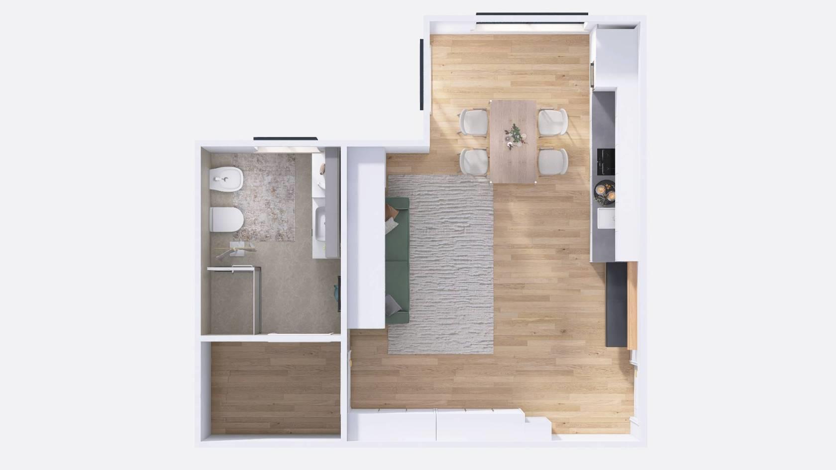 I Render presenti nelle foto dell'arredo sono a titolo esemplificativo per mostrare un ipotetica idea di arredamento !