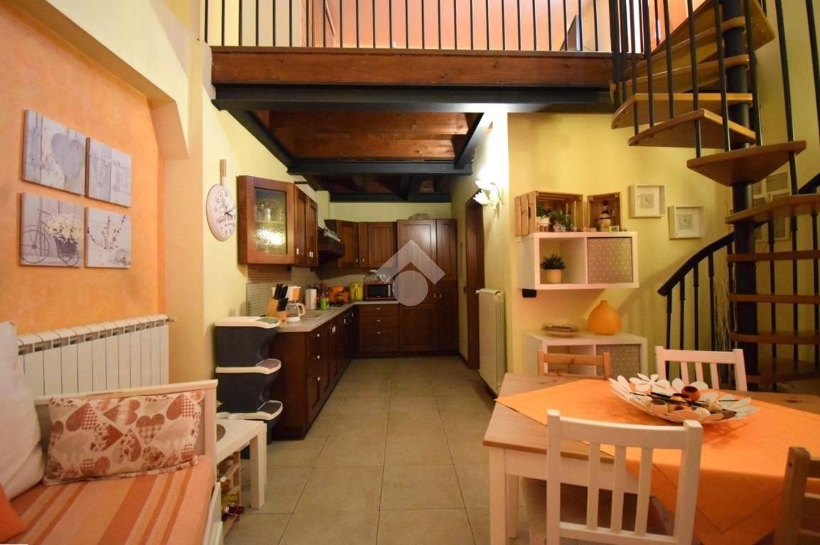 Zona giorno con cucina lasciata a vista, bagno con vasca e ampio soppalco con zona notte confortevole.