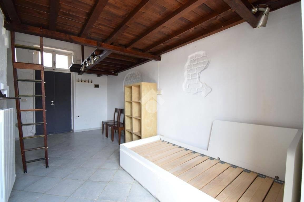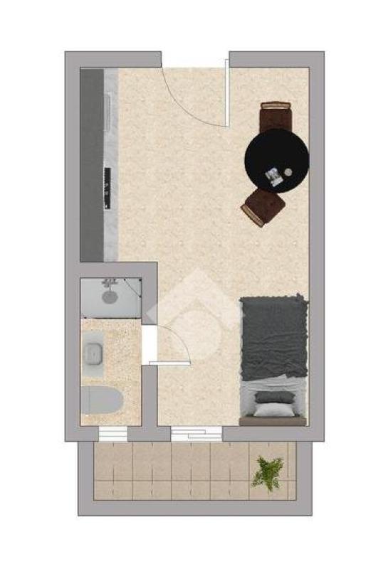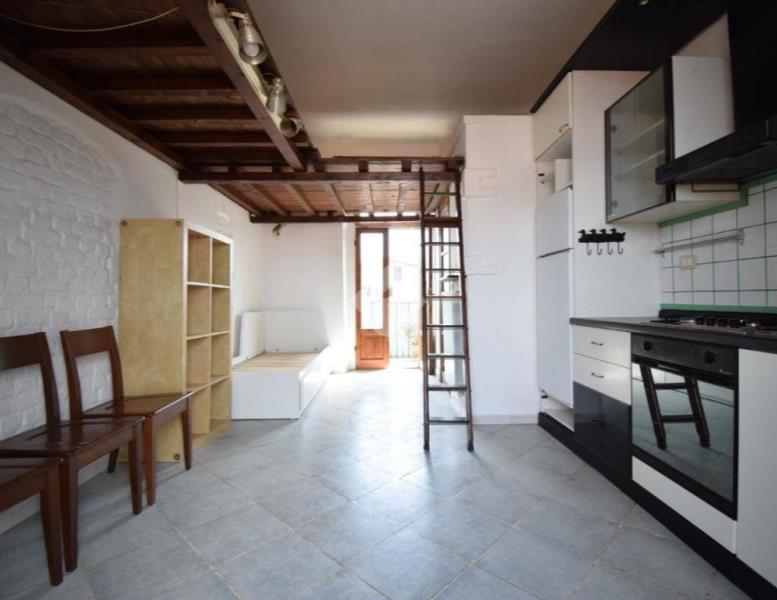 Entrando troviamo un unico ambiente che funge da zona giorno/notte con cucina lasciata a vista e comodo balcone.