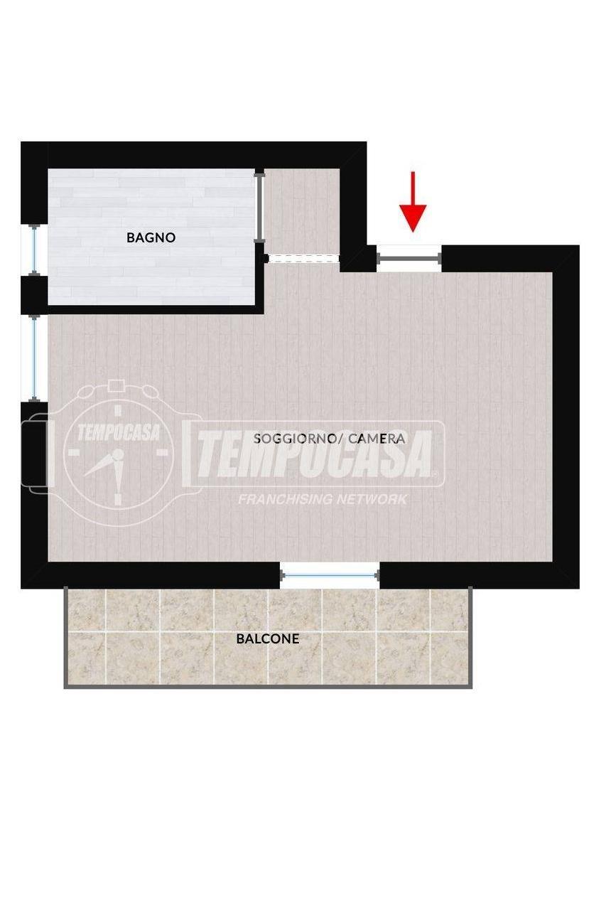 Monolocale al primo piano con ampio balcone, completamente ristrutturato, luminoso e ben distribuito.
