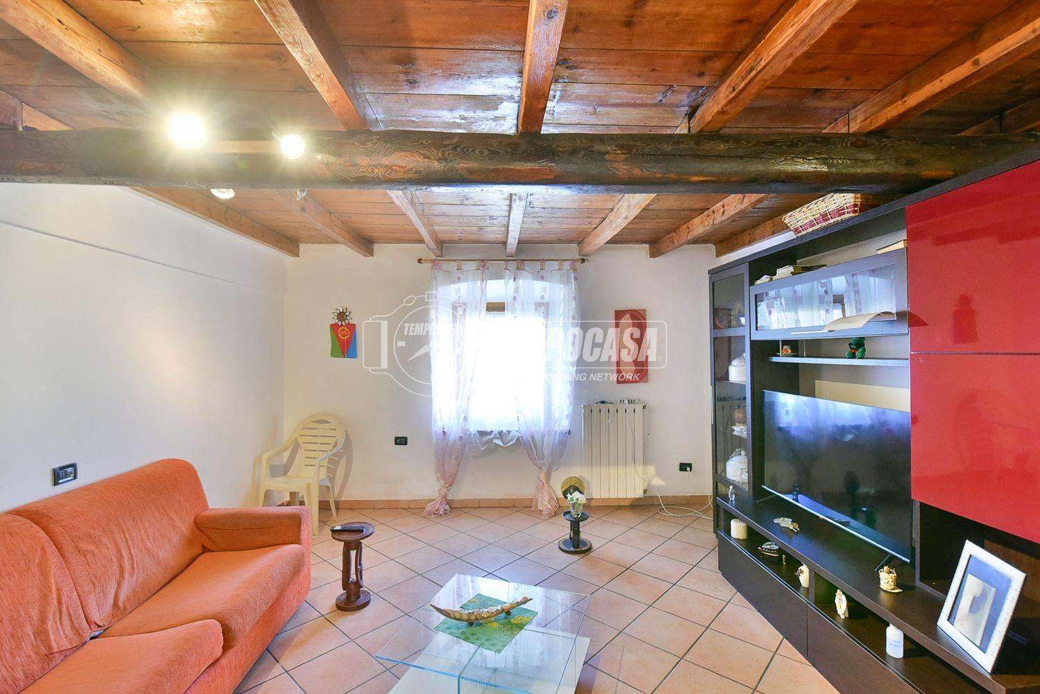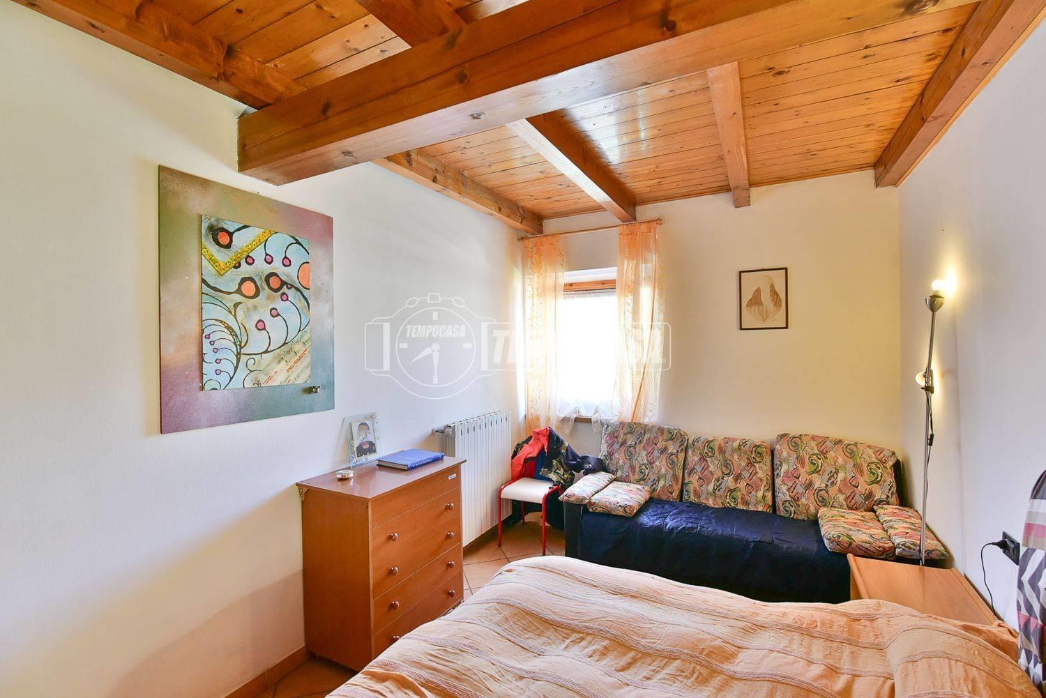 Completa la proprietà il terrazzo con travi a vista in legno, un portico coperto e la cantina.