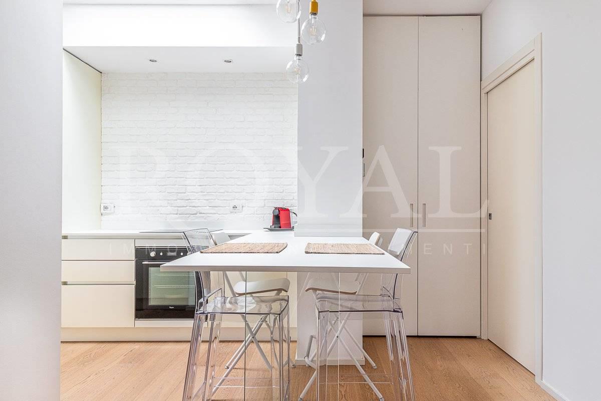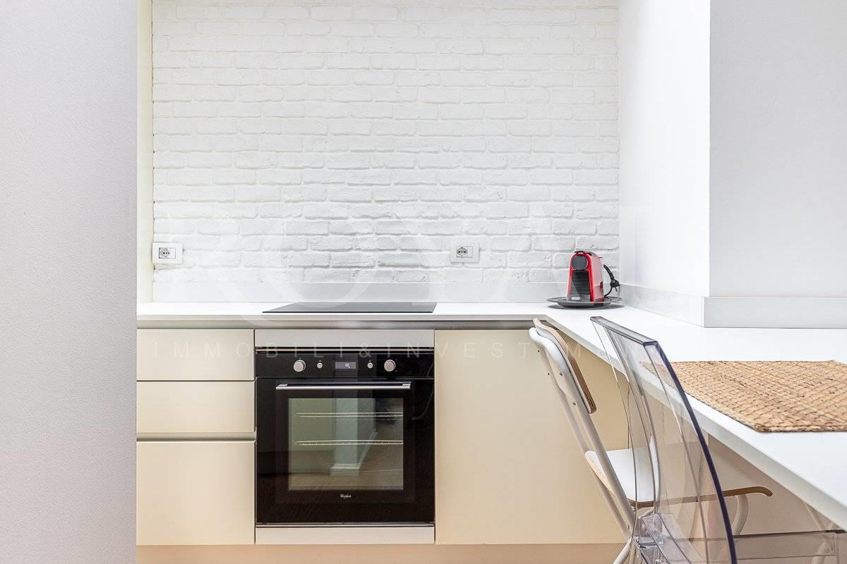 La cucina è dotata di lavastoviglie, forno elettrico, piano cottura ad induzione e frigorifero. Presente inoltre lavatrice ed aria condizionata.