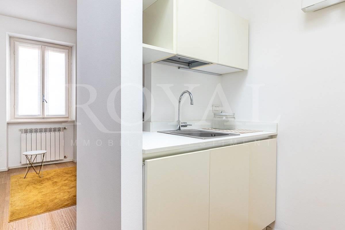 ROYAL IMMOBILI & INVESTIMENTI propone in locazione un elegante BILOCALE nel centro storico (isola pedonale – 50 mt Arengario) di Monza composto da soggiorno con angolo cottura, camera matrimoniale e bagno finestrato.