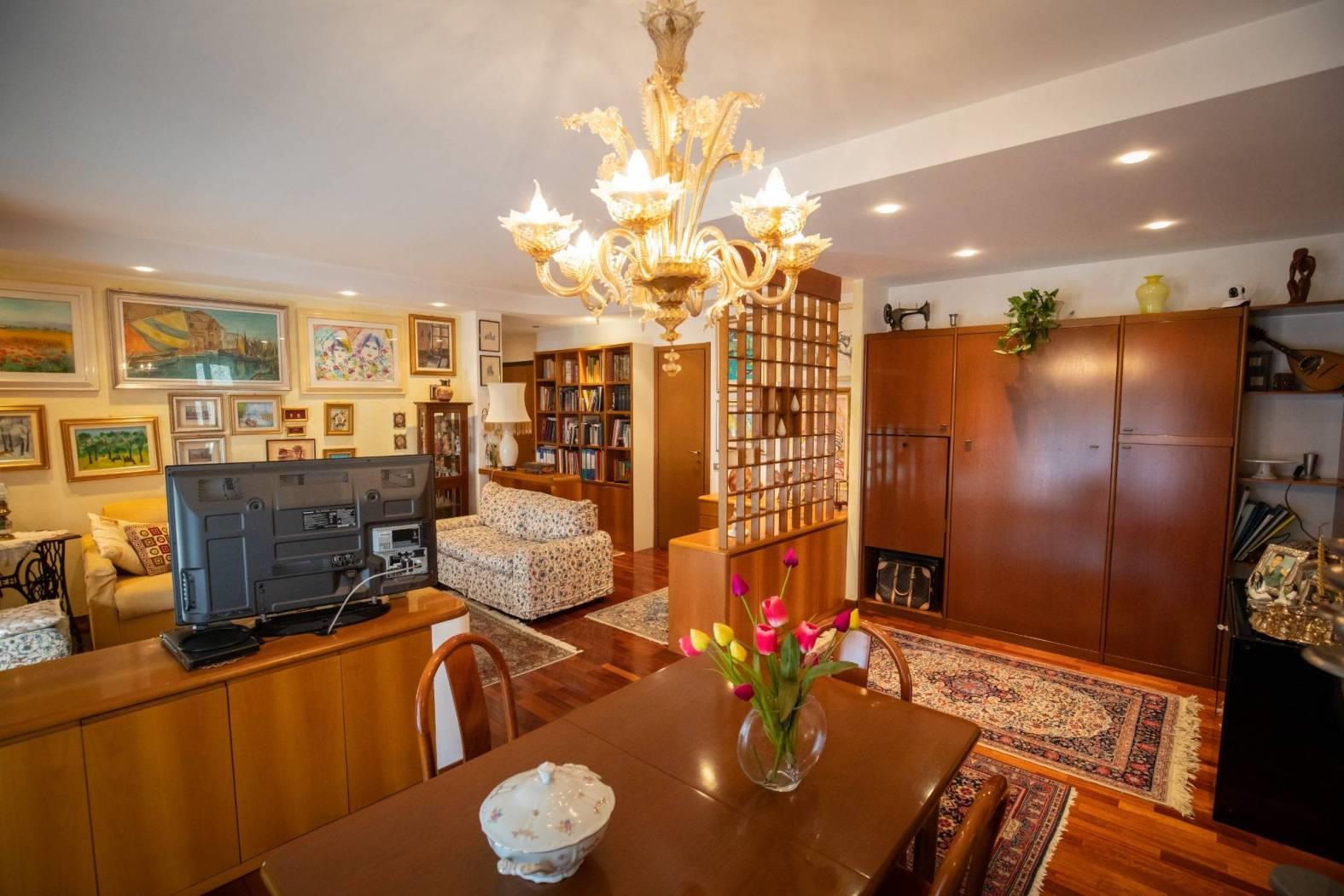 Hai bisogno di più spazio? Nessun problema! C'è la possibilità di ricavare una terza camera o uno studio, riportando la cucina a vista nel soggiorno. La pavimentazione in parquet dona un tocco caldo e accogliente a ogni ambiente, mentre i serramenti in legno con doppi vetri assicurano un eccellente comfort acustico e termico.