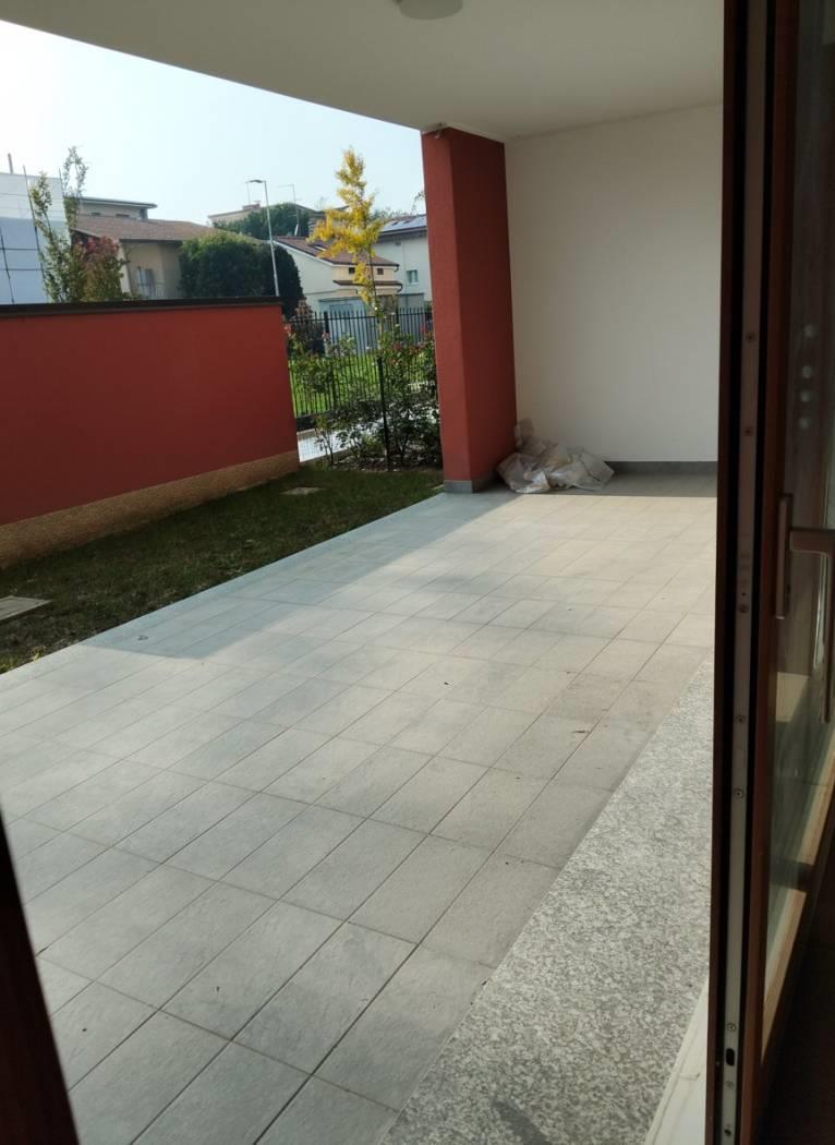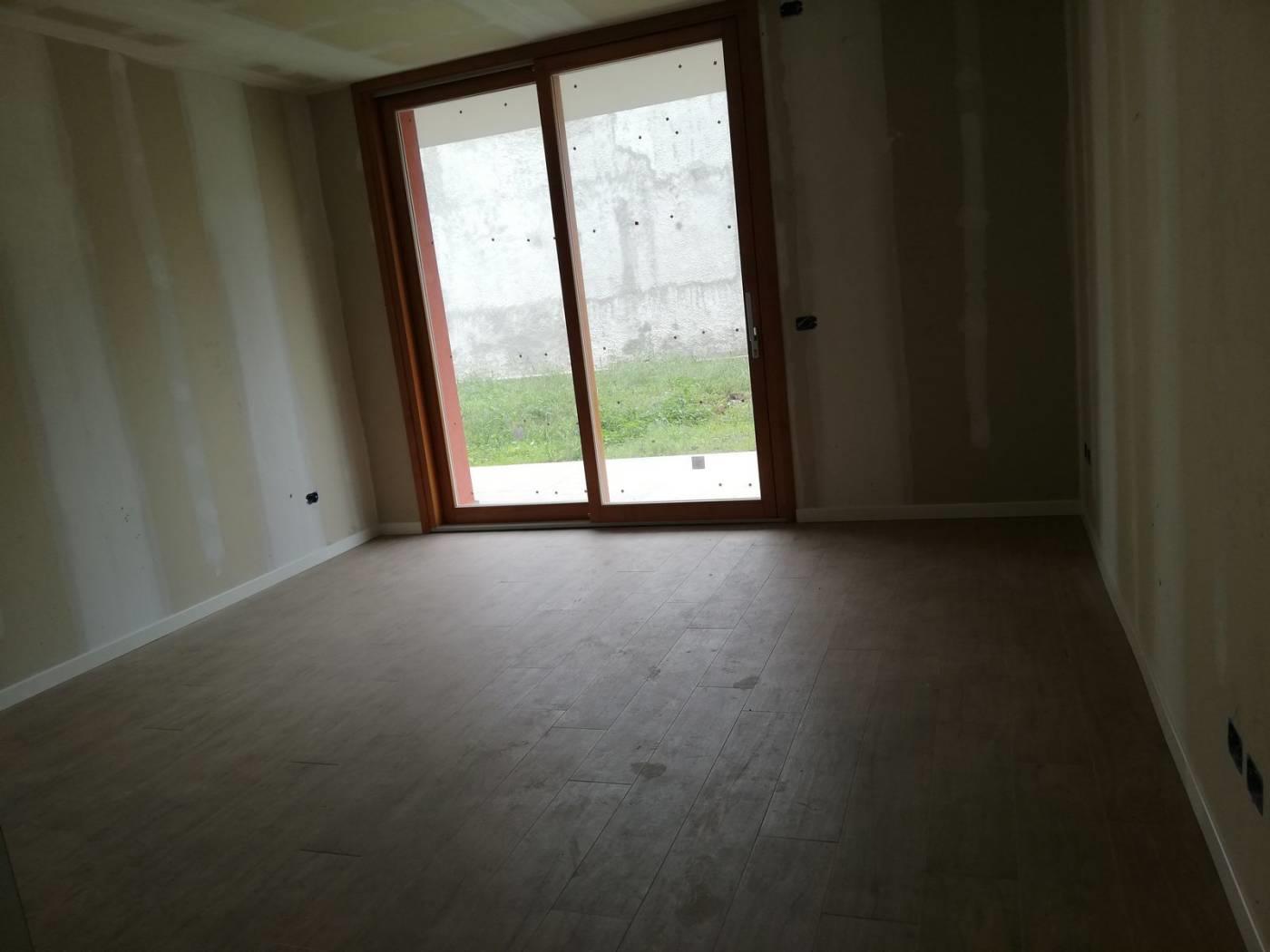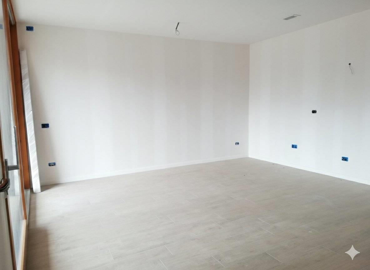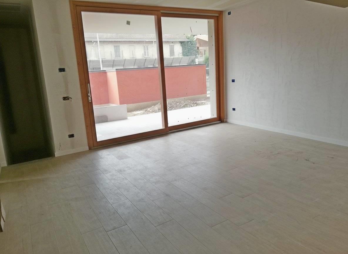 L'ingresso conduce direttamente all'area living, composta da un soggiorno e ottimamente esposto con affaccio su patio con cucina a vista