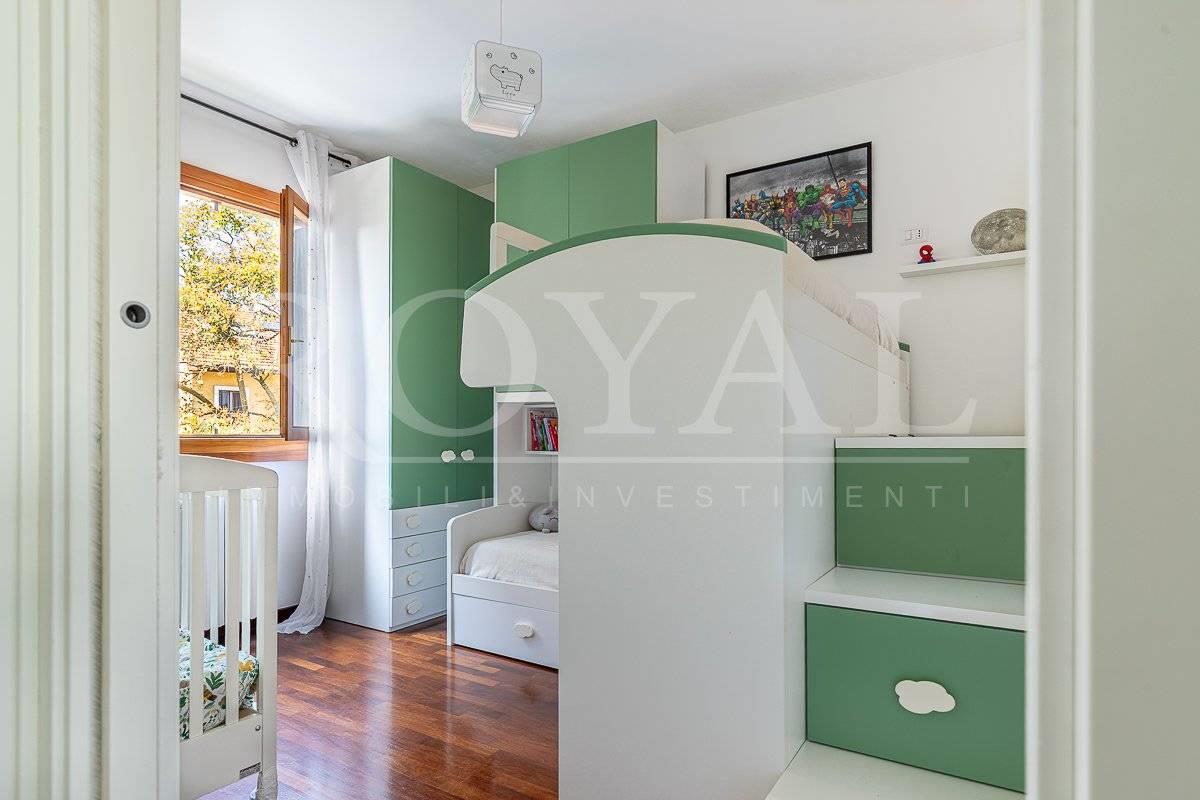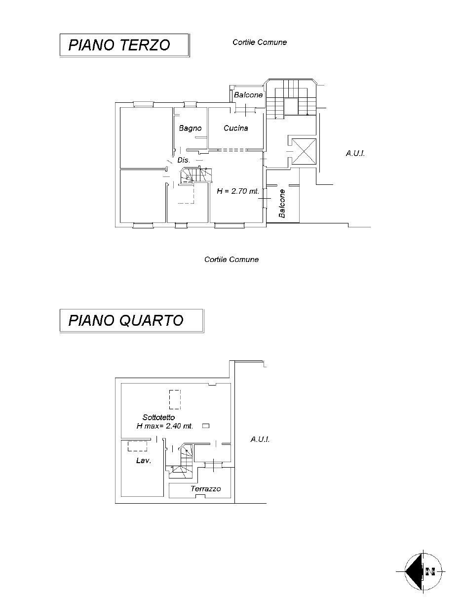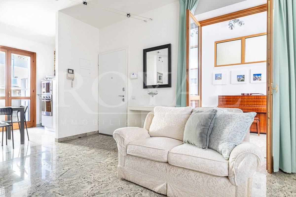 L'immobile è inserito in un contesto condominiale del 1994 dotato di ascensore e giardino condominiale. Al piano terzo, troviamo un ingresso, ampia zona giorno con cucina abitabile a vista con balcone loggiato, disimpegno notte con due camere da letto, bagno finestrato ed un locale studio. Tramite una scala in muratura si accede al piano quarto, locale sottotetto agibile ma non abitabile con ampio vano open space con zona living con affaccio sul terrazzo e locale lavanderia. Internamente si presenta in ottimo stato di manutenzione interna con bagno e locale lavanderia rifatti nel 2024 e finiture eleganti e di qualità. Come pavimentazione abbiamo marmo nella zona giorno, parquet nella zona notte e ceramica nei servizi. Sono presenti dotazioni interessanti come impianto di aria condizionata, impianto di allarme, ventilazione meccanica, infissi legno doppiovetro con oscuranti a protezione, portone blindato. Dotato delle certificazioni degli impianti elettrico e idrico.