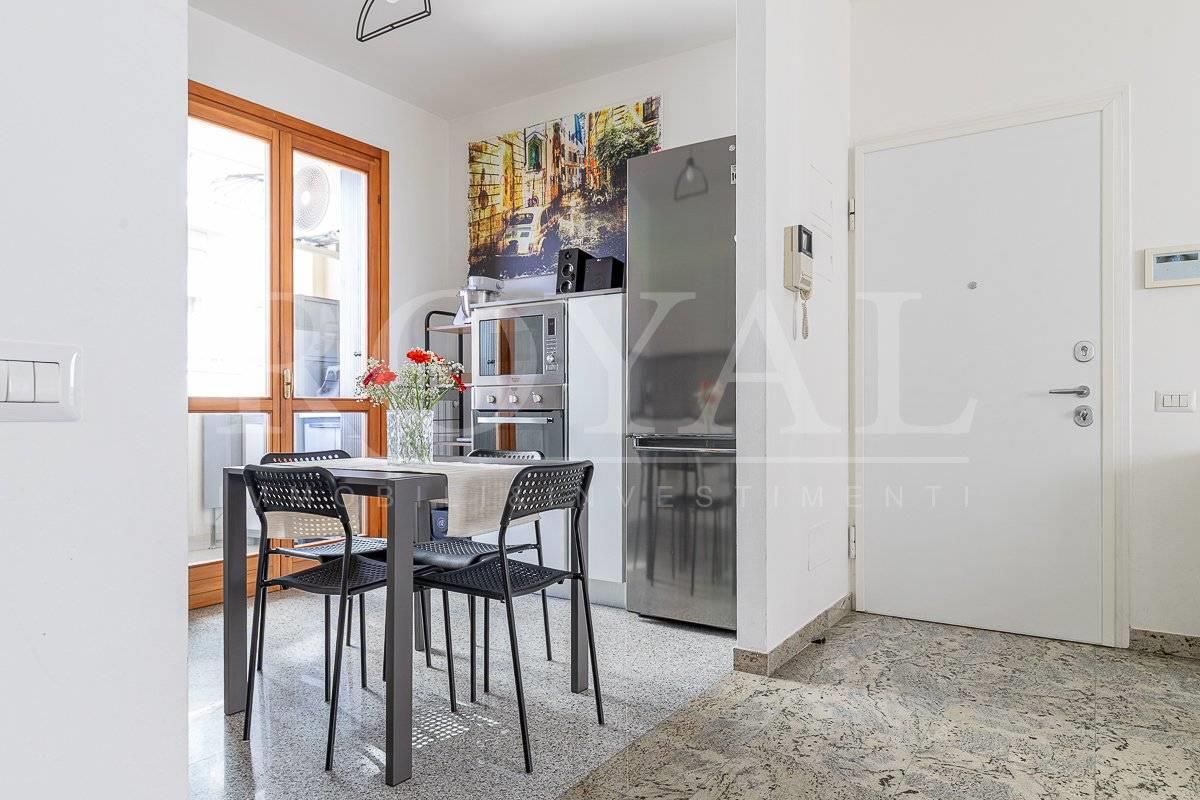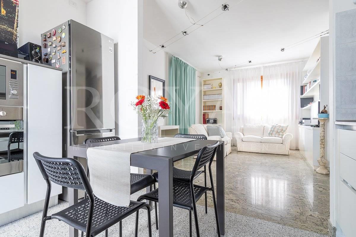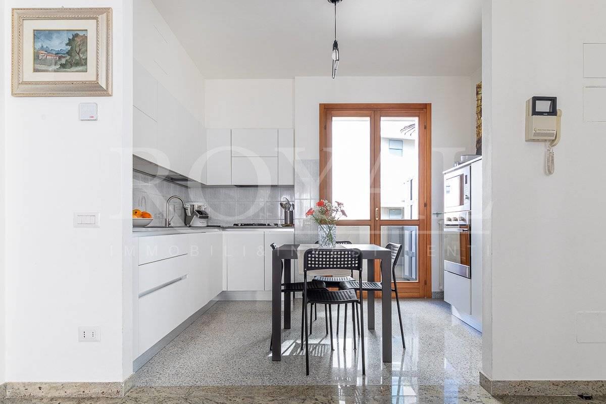 Questa soluzione, luminosa e soleggiata, rappresenta la scelta ideale per coppie o famiglie che intendono vivere in una zona servita, comodi per raggiungere la stazione FS a piedi e il centro storico.