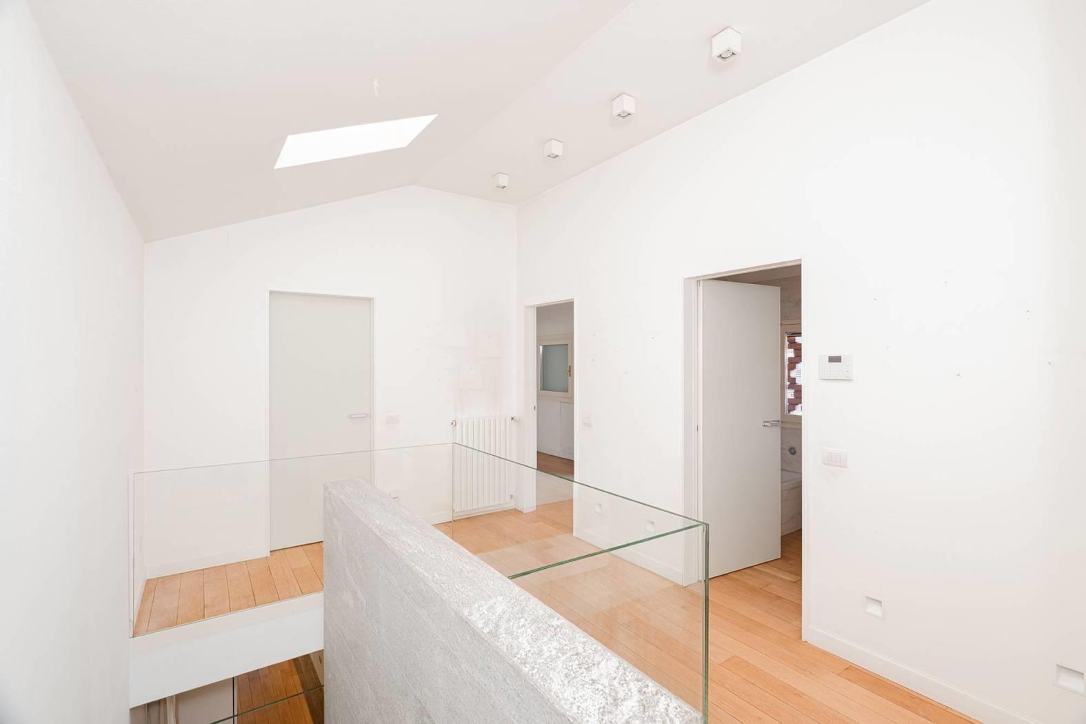 Monza Parco / Musicisti - in elegante e riservato contesto condominiale di sole cinque unità, proponiamo in vendita villa singola con area esterna ad uso esclusivo. Disposta su due livelli oltre piano interrato, è composta da ampio open space al piano terra, zona notte al piano primo e taverna con locali accessori al piano interrato; il tutto collegato da comoda scala interna a vista. La zona living al piano terra è un unico grande spazio composto dal soggiorno e dalla grande cucina a vista dotata di arredi e di isola centrale; le numerose finestre, su tre lati del perimetro, creano una calda atmosfera grazie alla luce naturale. Una spaziosa veranda, in continuità con la cucina, conduce alla porzione del giardino sul retro. L’area esterna è accessibile da tutte le zone del piano terra. Al piano primo troviamo la camera matrimoniale con cabina armadio a vista e un bagno en-suite dotato di doppia doccia. Due grandi portefinestre garantiscono una splendida luce sin dalle prime ore del mattino. Presenti altre due camere ed un ulteriore bagno con vasca. Al piano interrato, ampia taverna con locali accessori e lavanderia, ideale per locale hobby, zona studio, area cinema etc. Finiture di pregio, pavimentazione in parquet, porte Rimadesio e dettagli esterni come i mattoncini a vista che richiamano agli antichi fienili; gli spazi verdi del complesso e la posizione interna consentono un completo isolamento dal contesto urbano. L'abitazione è stata completamente ristrutturata nel 2009; è termoautonoma e dotata di aria condizionata. Parzialmente arredata, se gradito. Completa la proprietà un'autorimessa tripla al piano interrato (valore addizionale pari a € 85.000). Mandato in co-esclusiva con What&If