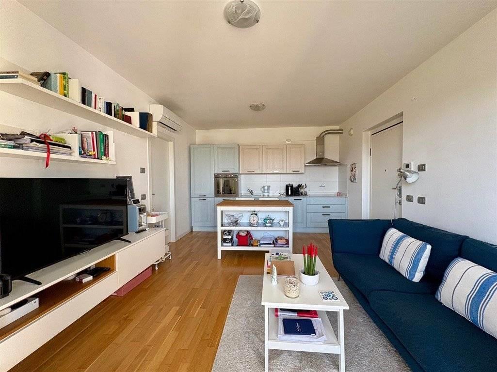 Uno dei punti di forza dell’appartamento è la presenza di arredi su misura, realizzati dall’attuale proprietario al momento dell’acquisto. Sono stati progettati con un’estetica contemporanea, perfettamente coerenti con le tendenze moderne del living: colori neutri, linee pulite e massima ottimizzazione degli spazi.