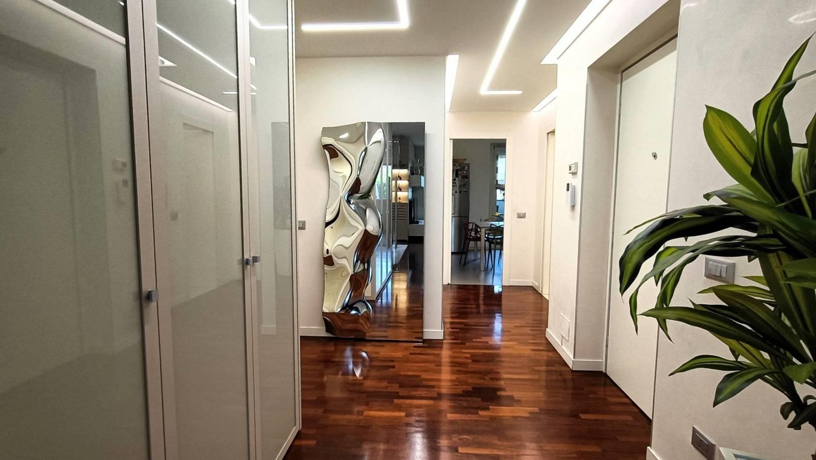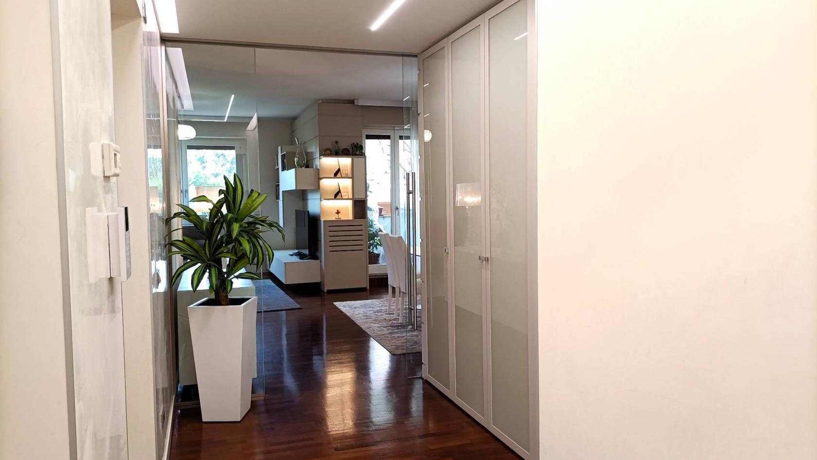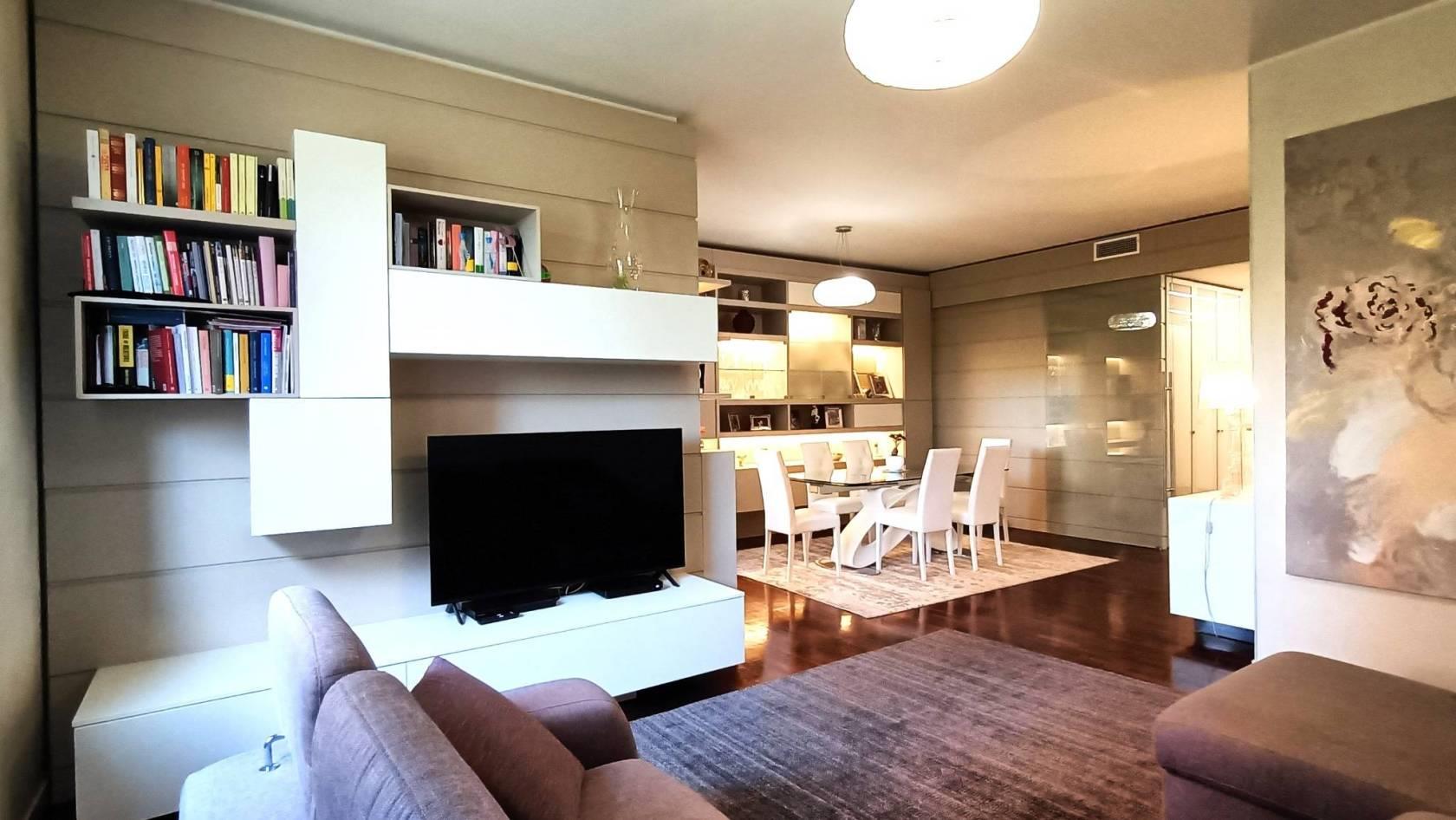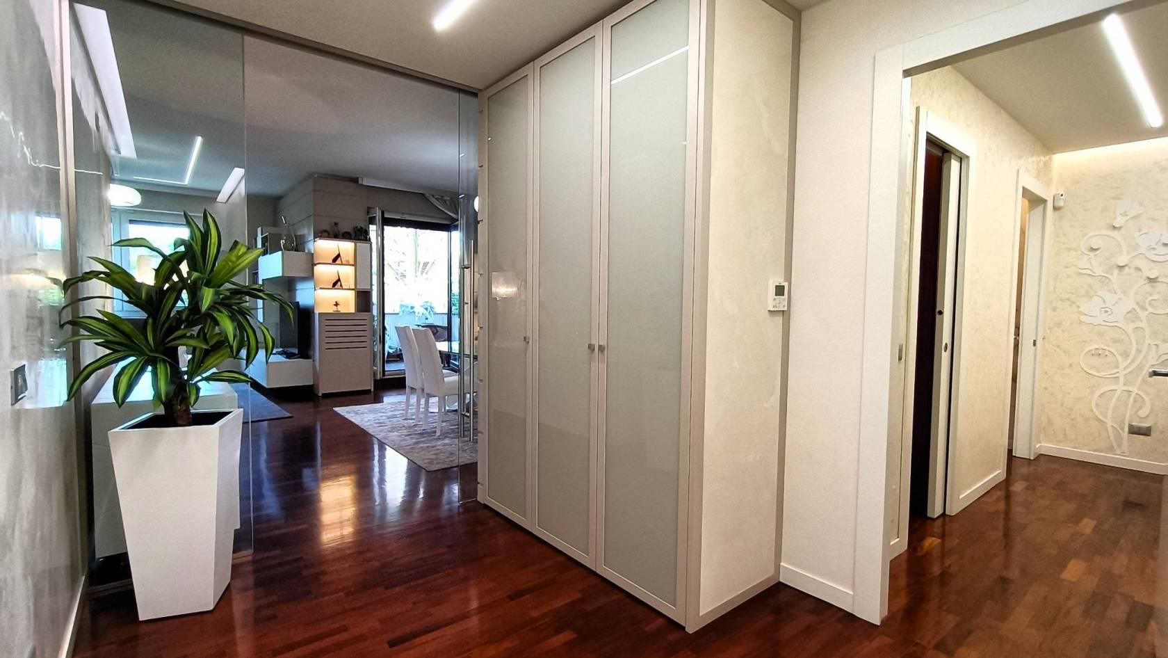Monza (MB): Nell' esclusivo contesto Residenziale "PARCO 80", progettato da Urbano Pierini, una tra le Residenze più prestigiose e ricercate di Monza ideale per chi ricerca la tranquillità della bellezza naturale del Parco di Monza e della Villa Reale che distano circa 200 mt dalla Residenza stessa adiacente anche l'ospedale San Gerardo di Monza, negli edifici contraddistinti dall'intonaco bianco e dalla pietra grigio chiara con una piazzetta impreziosita da una fontana/scultura Sole-Luna-Albero ideata da Giò Pomodoro, in condominio con servizio di portineria proponiamo splendido appartamento di 161 mq cosi composto: varcato l'ingresso il visitatore viene subito avvolto da un senso di raffinatezza e luminosità dettato dalle finiture di alta qualità e dei dettagli di design che creano immediatamente un' atmosfera di lusso ed eleganza conducendoci ai grandi spazi della zona Living suddivisa in zona pranzo e zona relax/conversazione da cui si accede al terrazzino. Dal disimpegno accediamo alla cucina abitabile, un ambiente moderno e progettato per essere funzionale e allo stesso tempo comodo, con porta finestra che si apre sul balcone. Il Disimpegno notte ci conduce alle camere da letto, di cui la matrimoniale dispone di un proprio servizio interno con piatto doccia ultra flat a pioggia, sanitari sospesi e scalda-salviette in alluminio. Le due camere per ragazzi sono ambienti comodi ed accoglienti e sono servite da un secondo servizio rifinito come quello padronale ed accessibile anche agli ospiti. Una zona lavanderia con proprio servizio igienico e lavabo completa questa zona abitativa. L' appartamento totalmente rimodernizato nel 2014, è impreziosito da abbassamenti con faretti e tagli di luce, rivestimenti in boiserie, porte laccate bianche, elegante porta scorrevole in vetro temperato trasparente che dalla zona giorno ci conduce al disimpegno, pavimentazione in parquet iroko, serramenti esterni bianchi in PVC, tapparelle elettriche in PVC con apertura individuale o totale all'ingresso, impianto d'antifurto volumetrico a sensori con telecamera inglobata sul balcone e da un impianto di condizionamento canalizzato e pompa di calore. La richiesta per questa meravigliosa soluzione è di € 550.000,00 comprensivo di cantina, oltre ad un box doppio di 27 mq ca. ad € 40.000,00, per un Totale di € 590.000,00. Classe Energetica "C" Ipe "65,48" KWh/mq. NOTE: le metrature sono del tutto indicative non potranno essere utilizzate come parte integrante in un eventuale contratto di vendita o locazione della proprietà. Per ulteriori informazioni e per fissare un appuntamento, contattare i nostri uffici Dinamica 039/6888025, www.dinamicalesmo.it, info@dinamicalesmo.it oppure il Sig. Lorenzo Zorzetto 331/6769010.