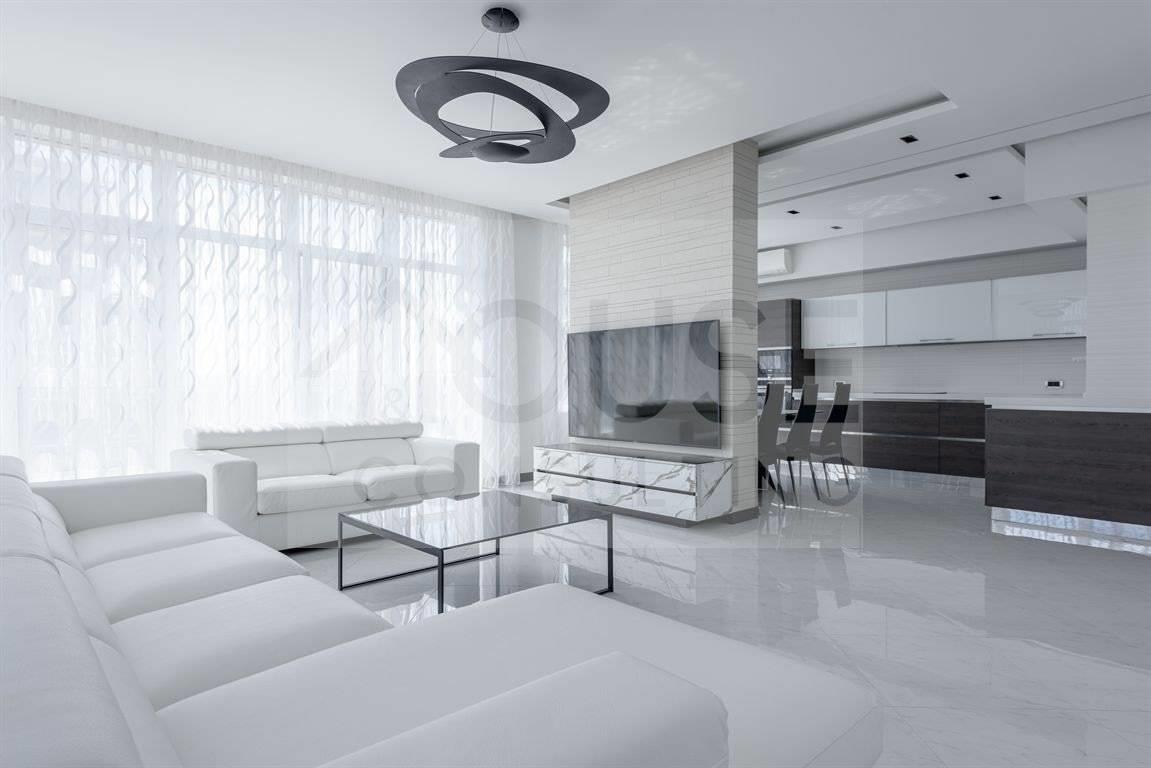 Appartamento al primo piano di tre locali con doppi servizi 130 mq, terrazzo coperto di 44 mq e balcone da 12 mq.
