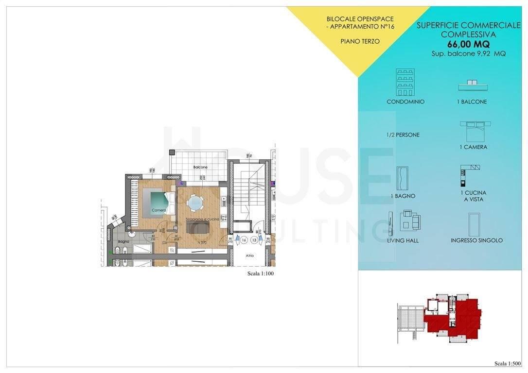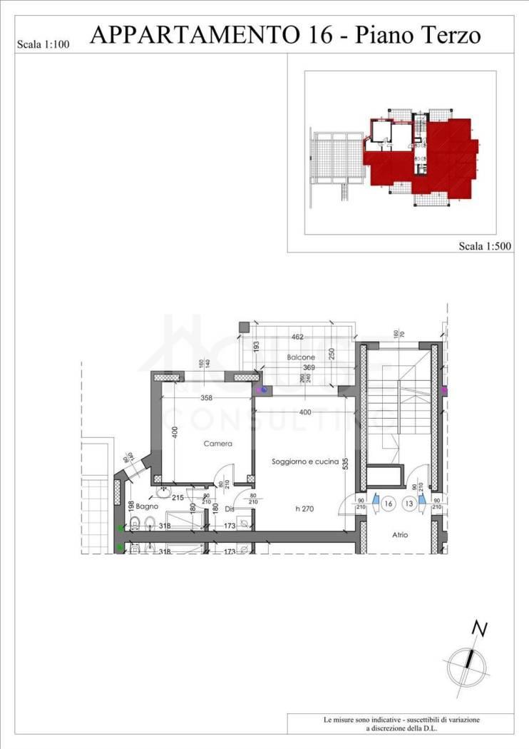 L’appartamento n. 16, situato al terzo piano, è composto da: